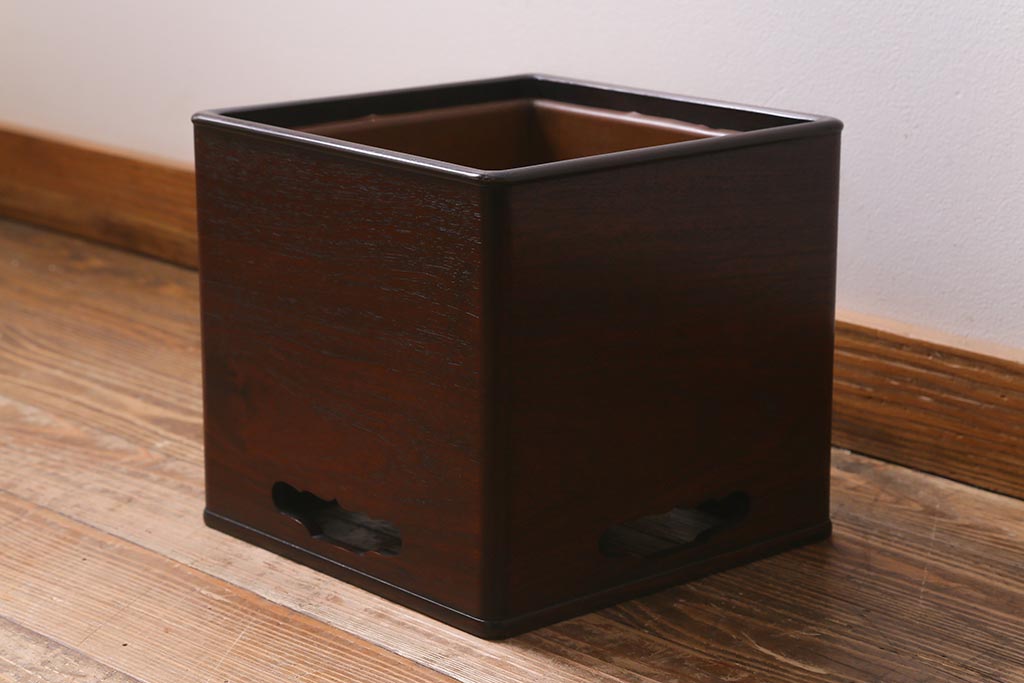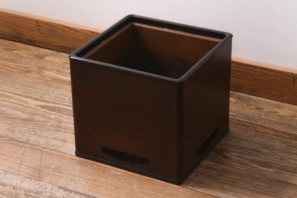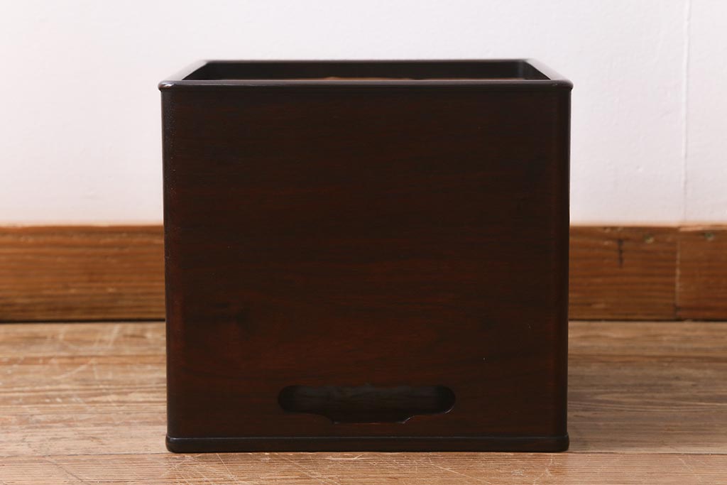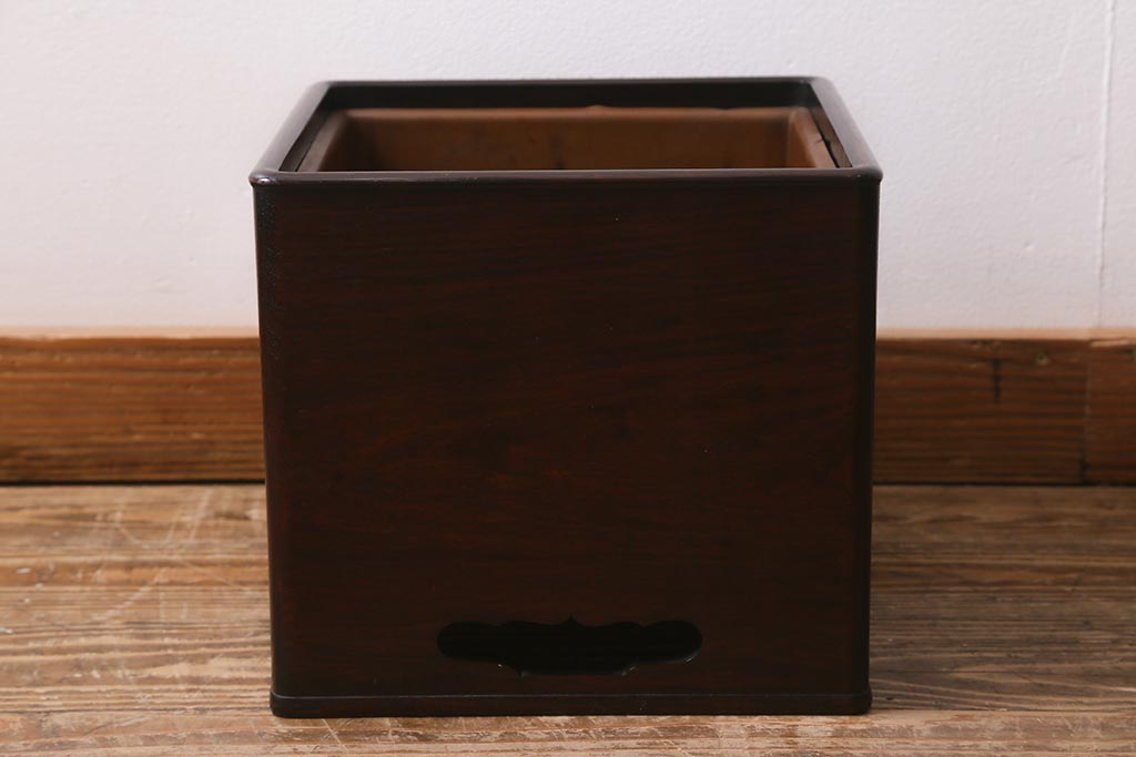 火鉢> 木製火鉢 > アンティーク雑貨 大正昭和初期 紫檀(シタン)材 シンプルで品のある角火鉢(木製火鉢、箱火鉢)(R-040890)