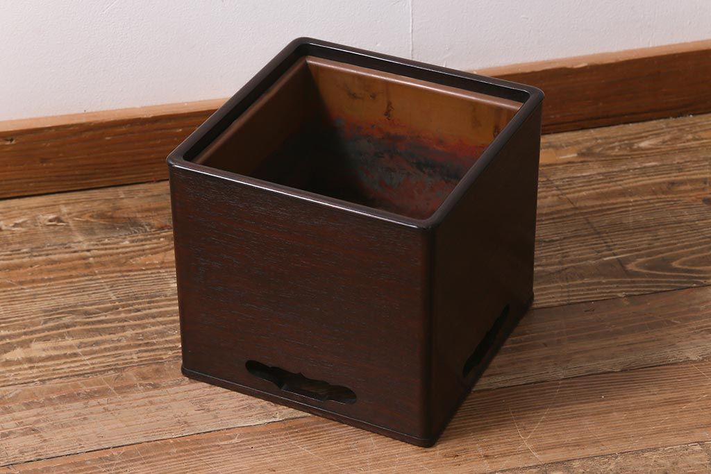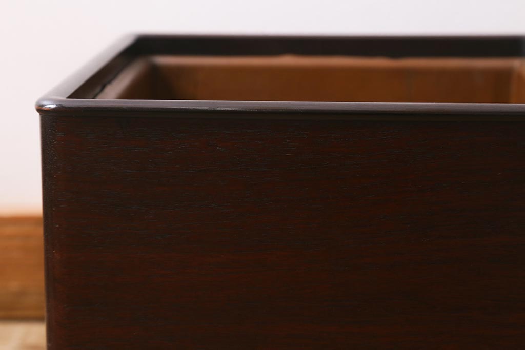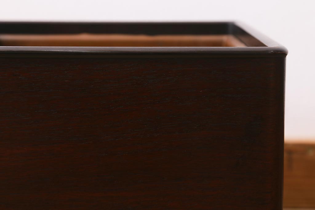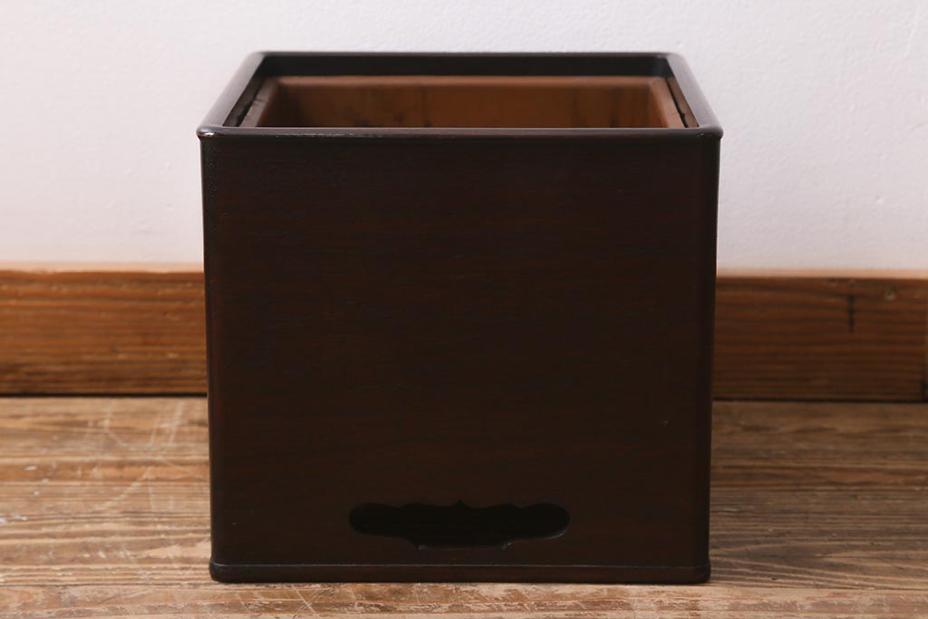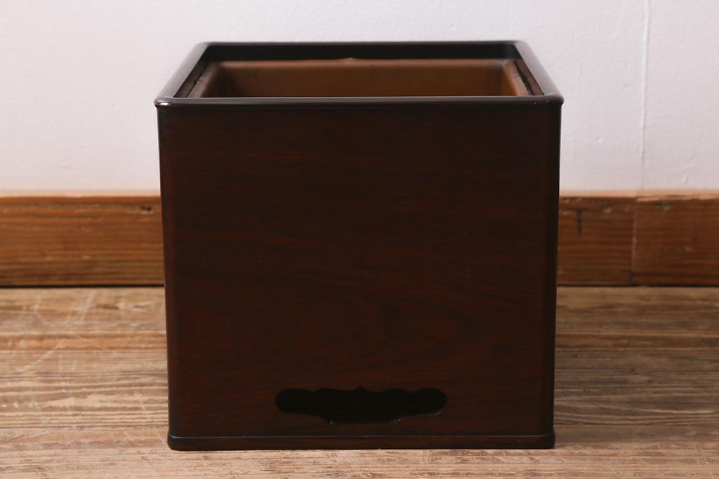 火鉢> 木製火鉢 > アンティーク雑貨 大正昭和初期 紫檀(シタン)材 シンプルで品のある角火鉢(木製火鉢、箱火鉢)(R-040890)