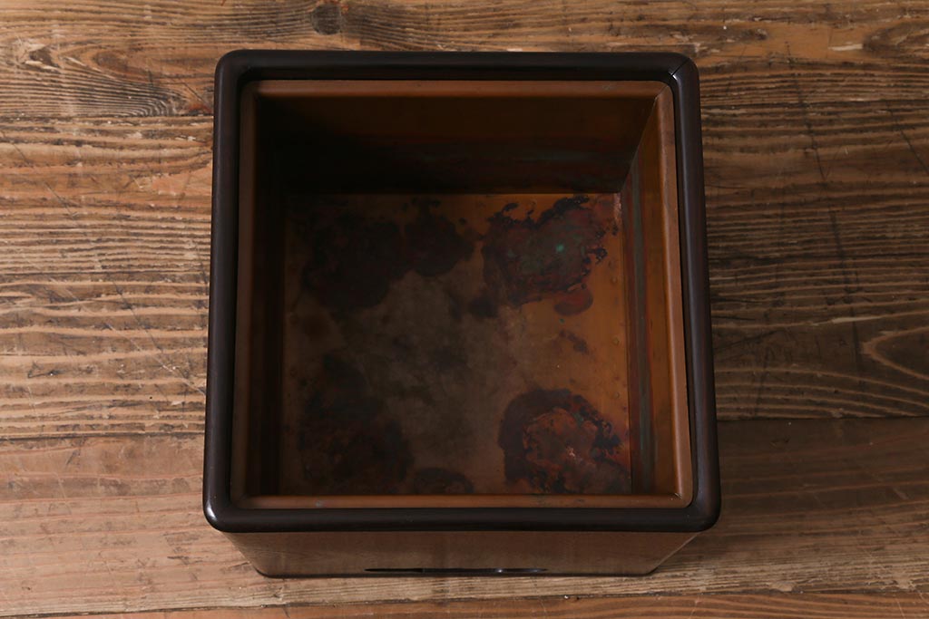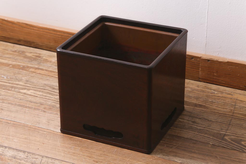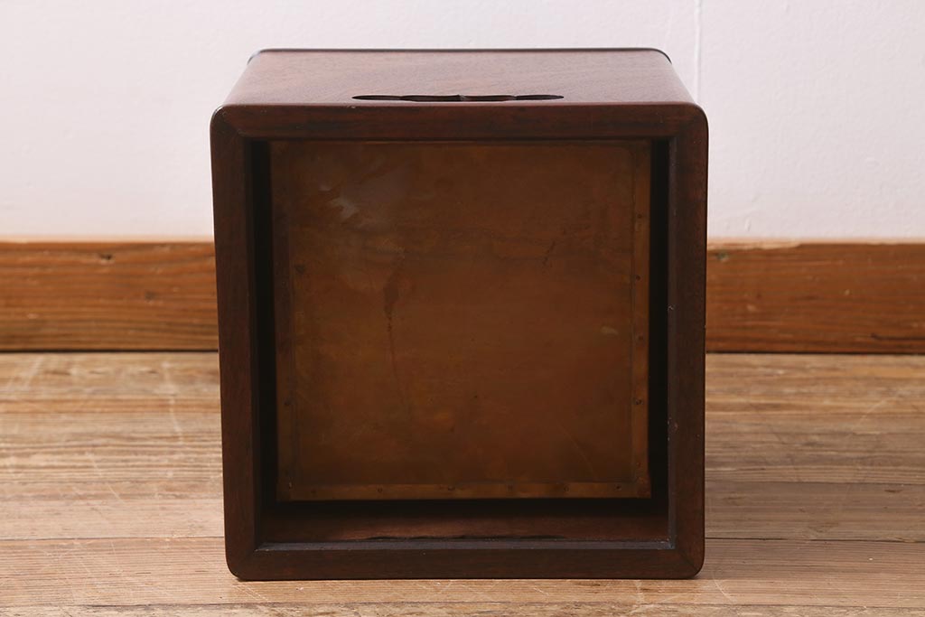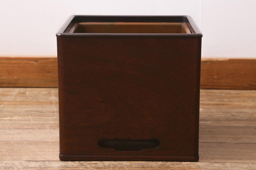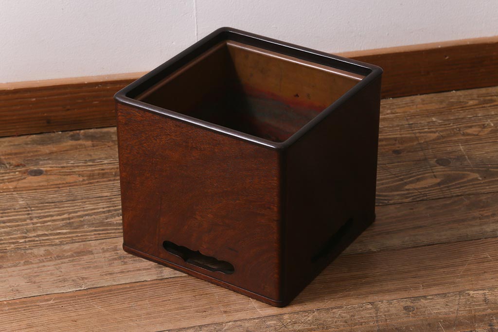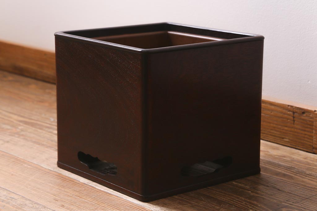 火鉢> 木製火鉢 > アンティーク雑貨 大正昭和初期 紫檀(シタン)材 シンプルで品のある角火鉢(木製火鉢、箱火鉢)(R-040891)