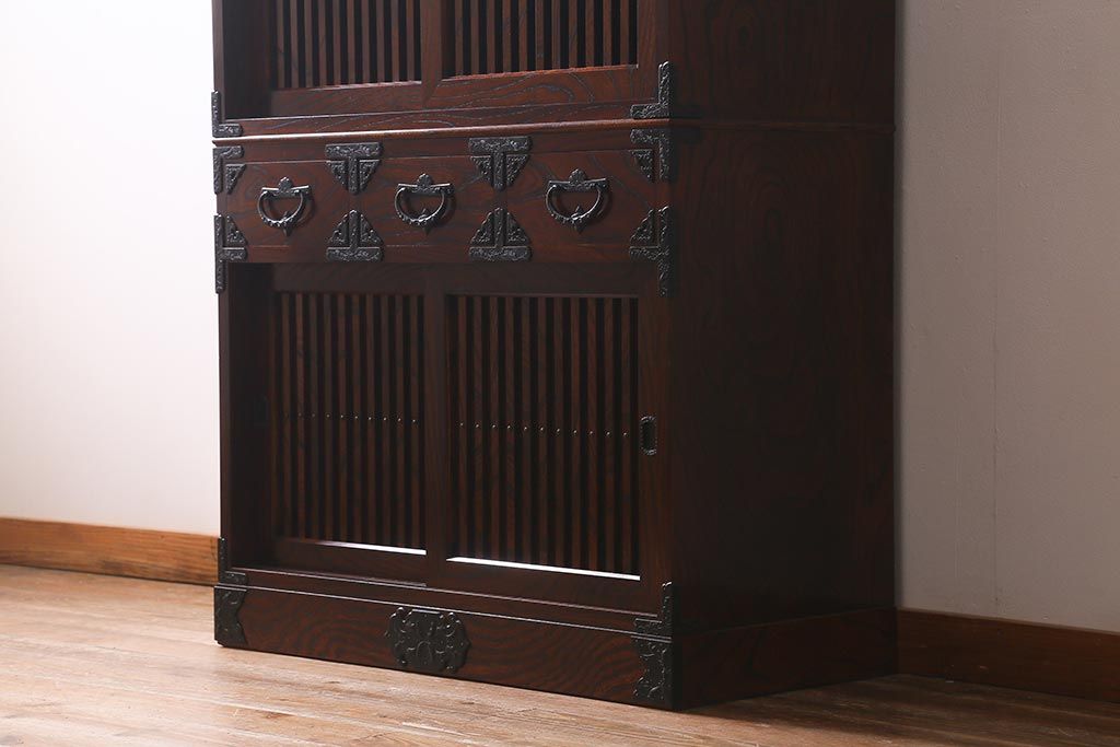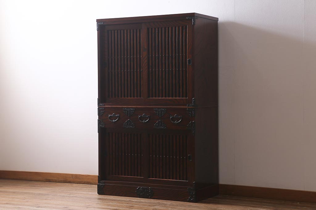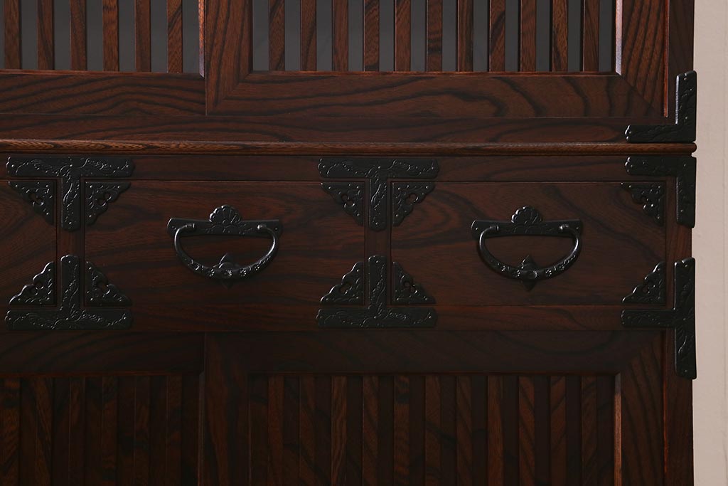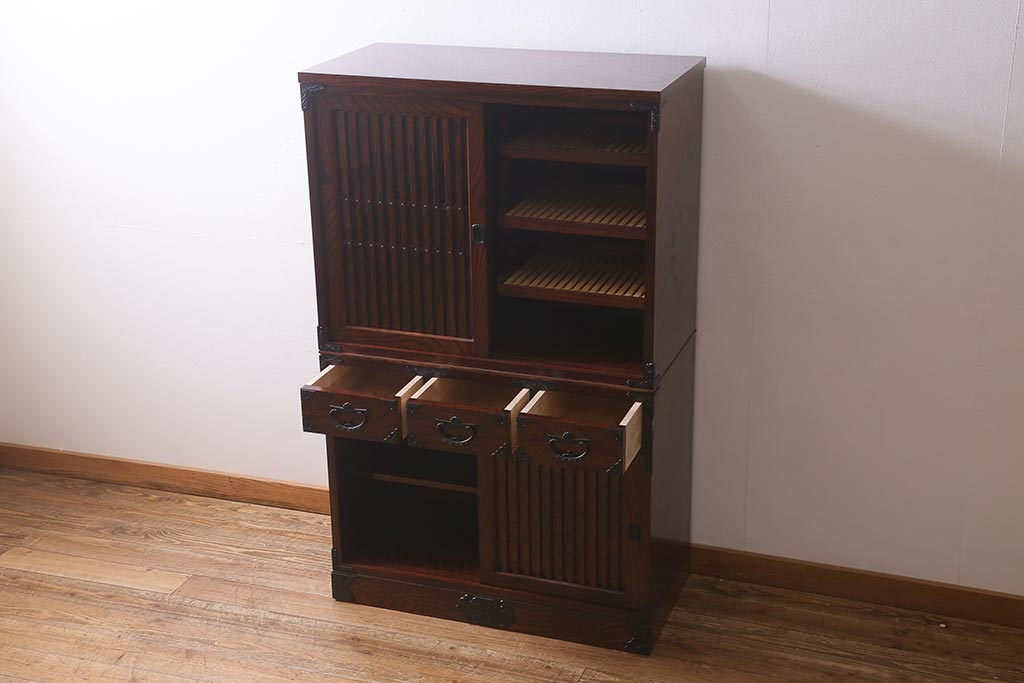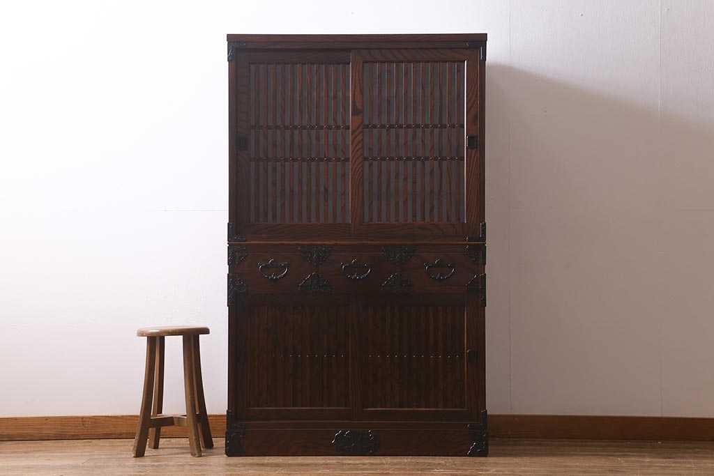 和箪笥 > 中古 美品 岩谷堂箪笥 No.96 雪国 格子戸が魅力的な茶箪笥(食器棚、茶棚)(定価約62万円)(R-040876)