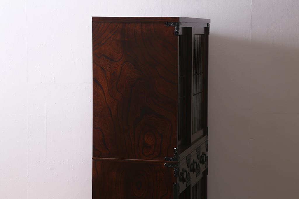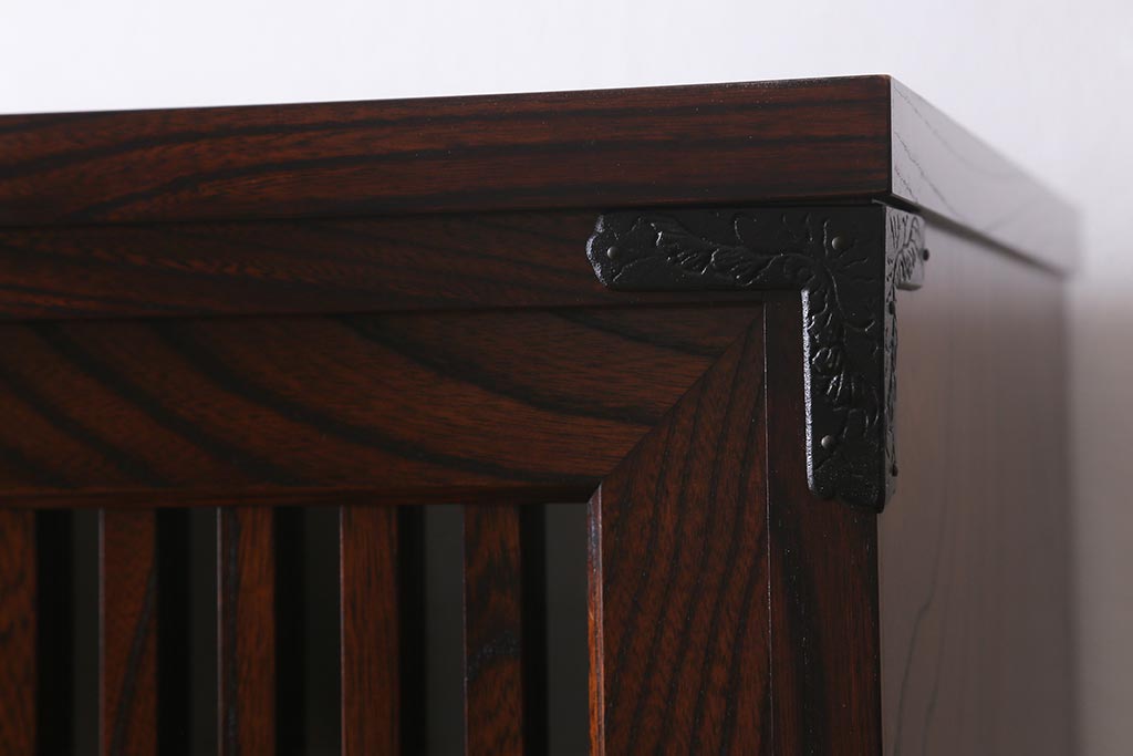 和箪笥> 茶箪笥・茶棚 > 中古 美品 岩谷堂箪笥 No.96 雪国 格子戸が魅力的な茶箪笥(食器棚、茶棚)(定価約62万円)(R-040876)