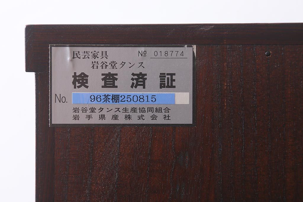 民芸家具 > 中古 美品 岩谷堂箪笥 No.96 雪国 格子戸が魅力的な茶箪笥(食器棚、茶棚)(定価約62万円)(R-040876)