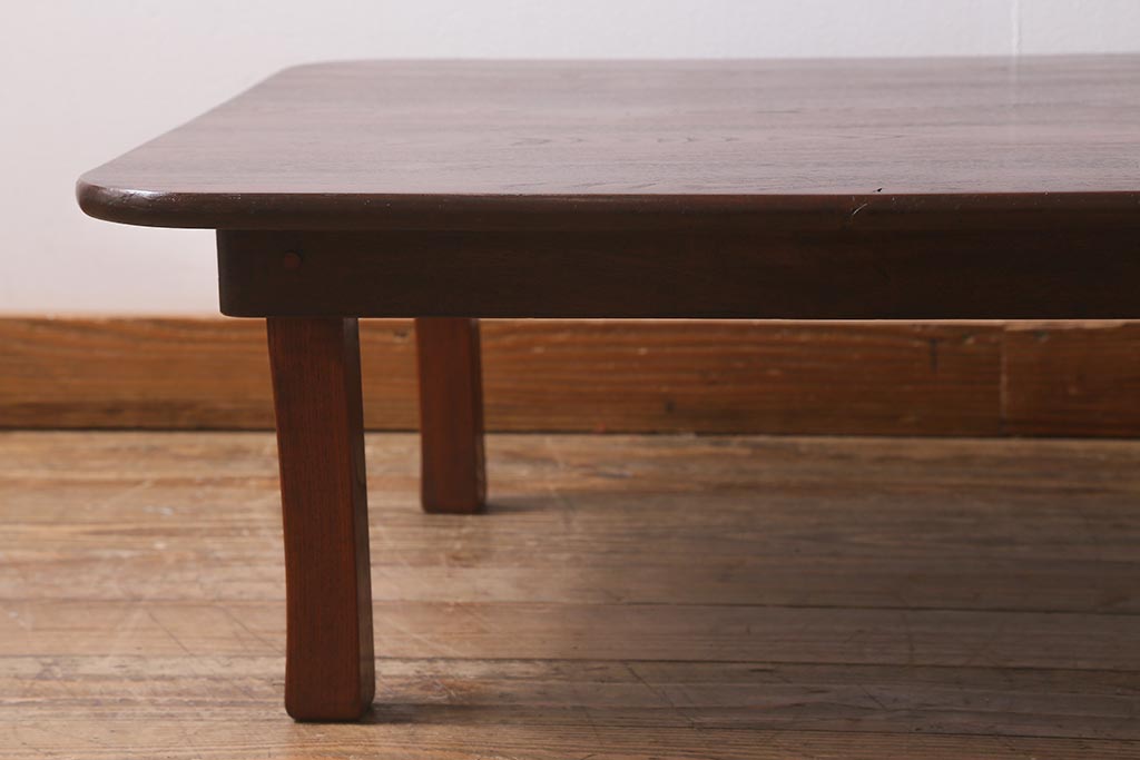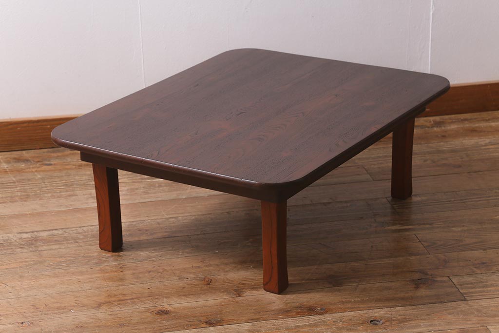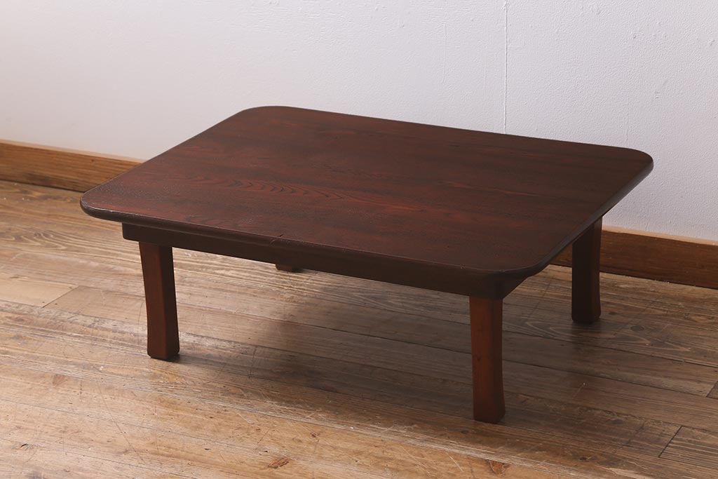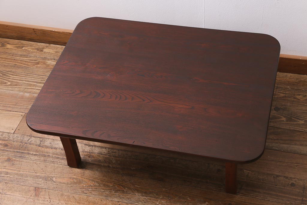 テーブル> センターテーブル・ローテーブル > アンティーク家具 和製アンティーク 昭和中期 栓材 味わい深い木目が目を引く角ちゃぶ台(折りたたみテーブル、座卓、ローテーブル)(R-040903)
