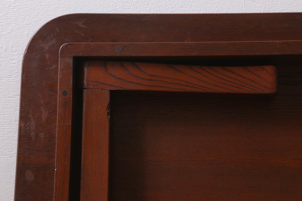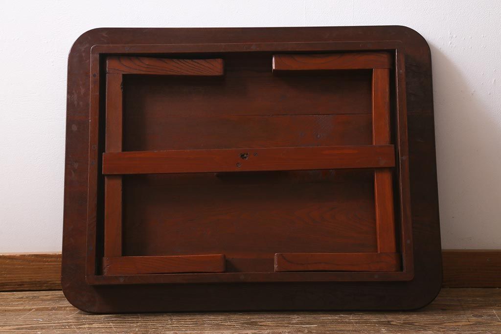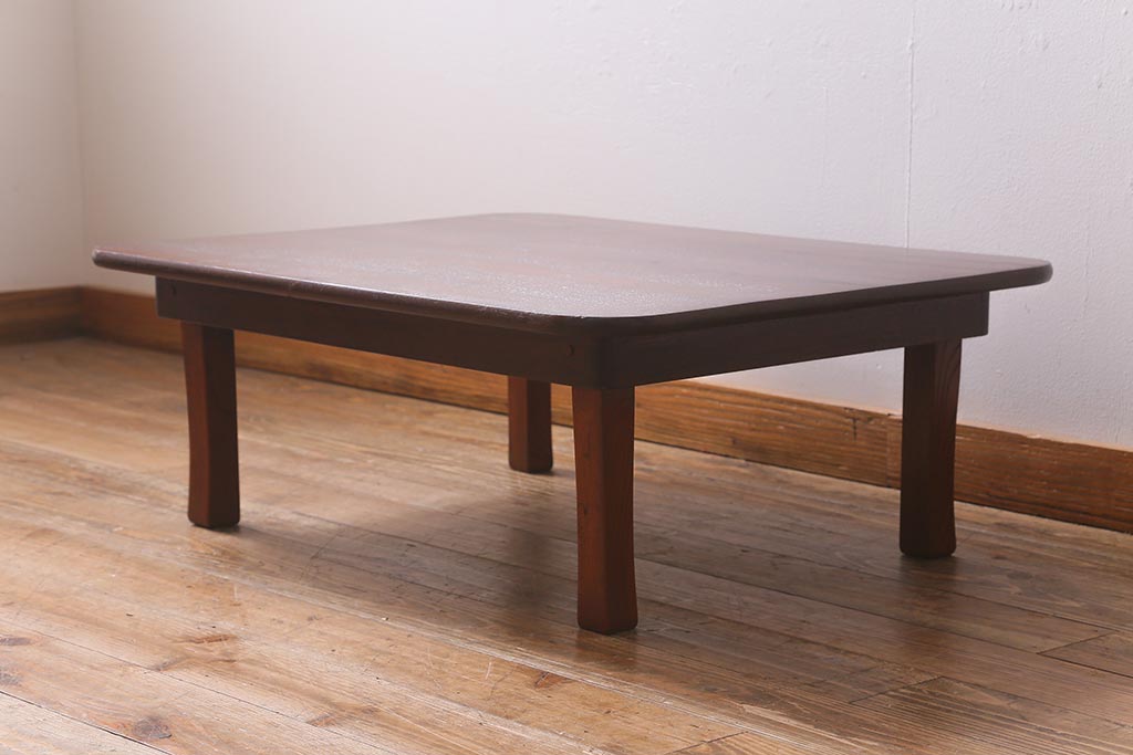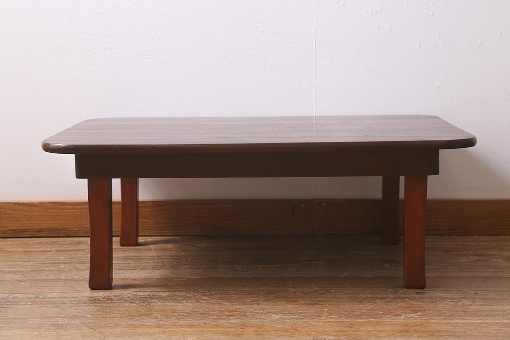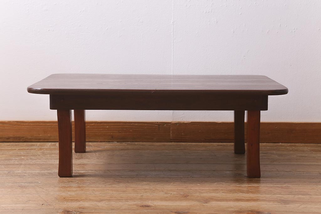 テーブル> センターテーブル・ローテーブル > アンティーク家具 和製アンティーク 昭和中期 栓材 味わい深い木目が目を引く角ちゃぶ台(折りたたみテーブル、座卓、ローテーブル)(R-040903)