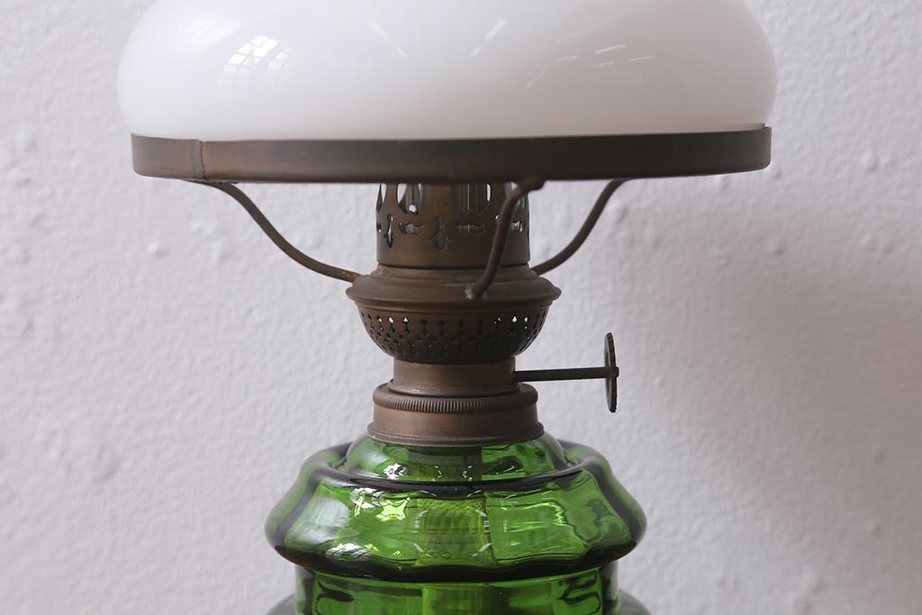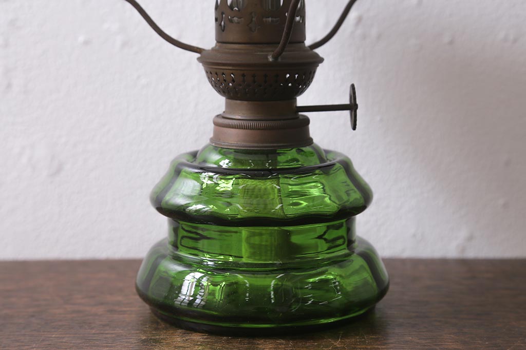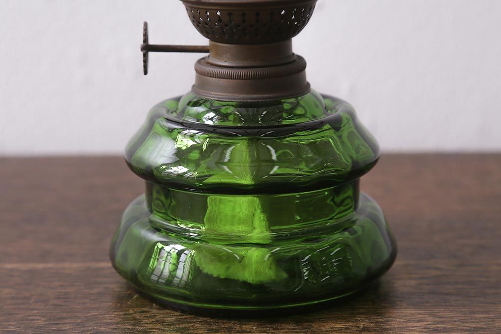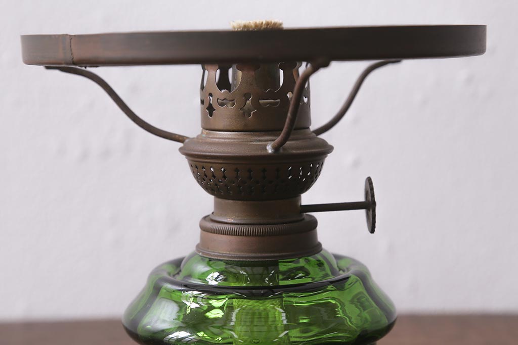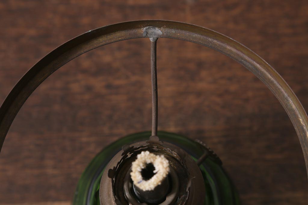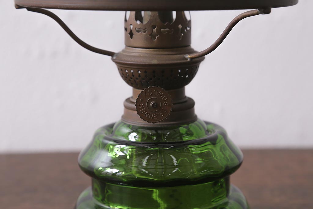 ヴィンテージ雑貨 ドイツ製 巻芯14分芯 KOSMOS BRENNER グリーンの色付きタンクが素敵なオイルランプ(卓上ランプ、豆ランプ、ビンテージ)(R-040820)