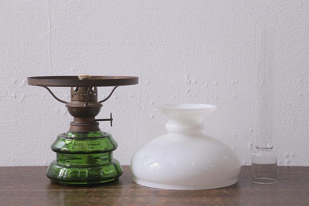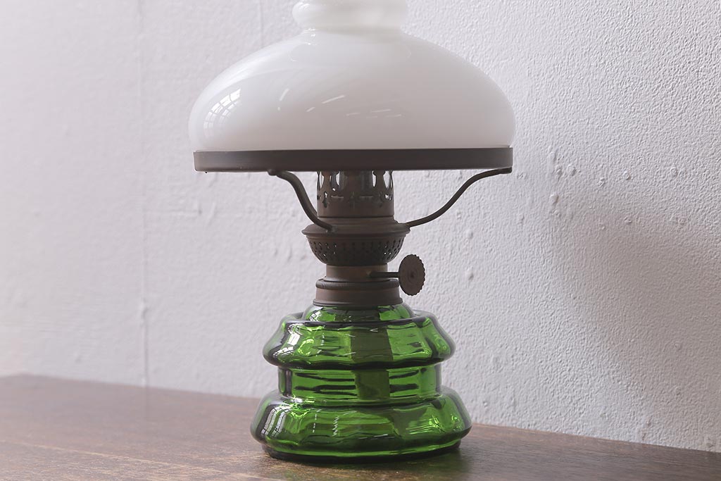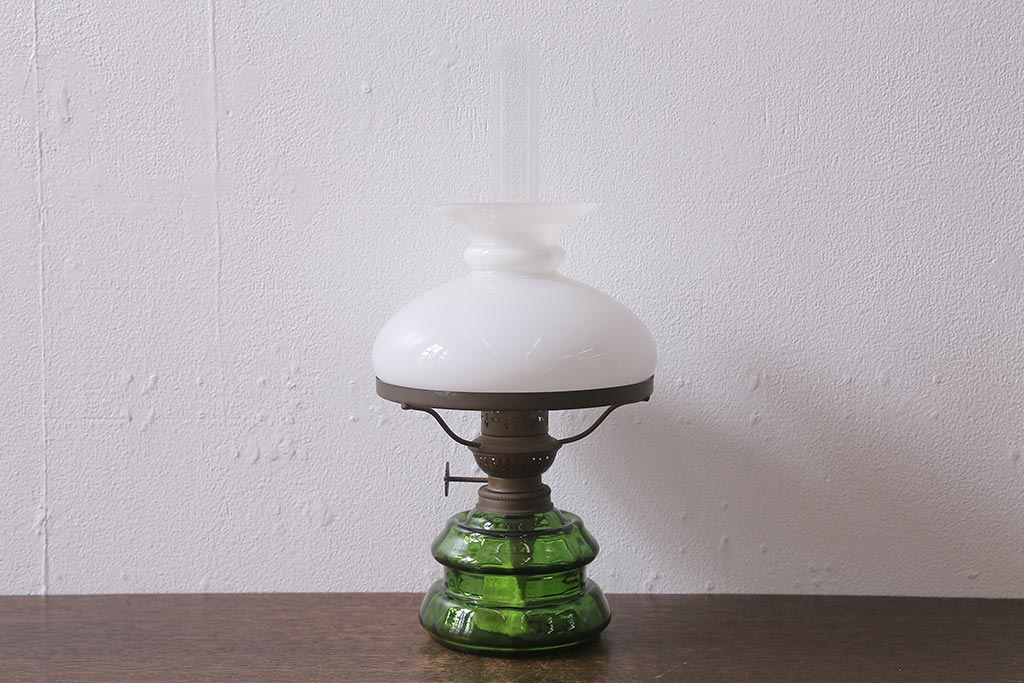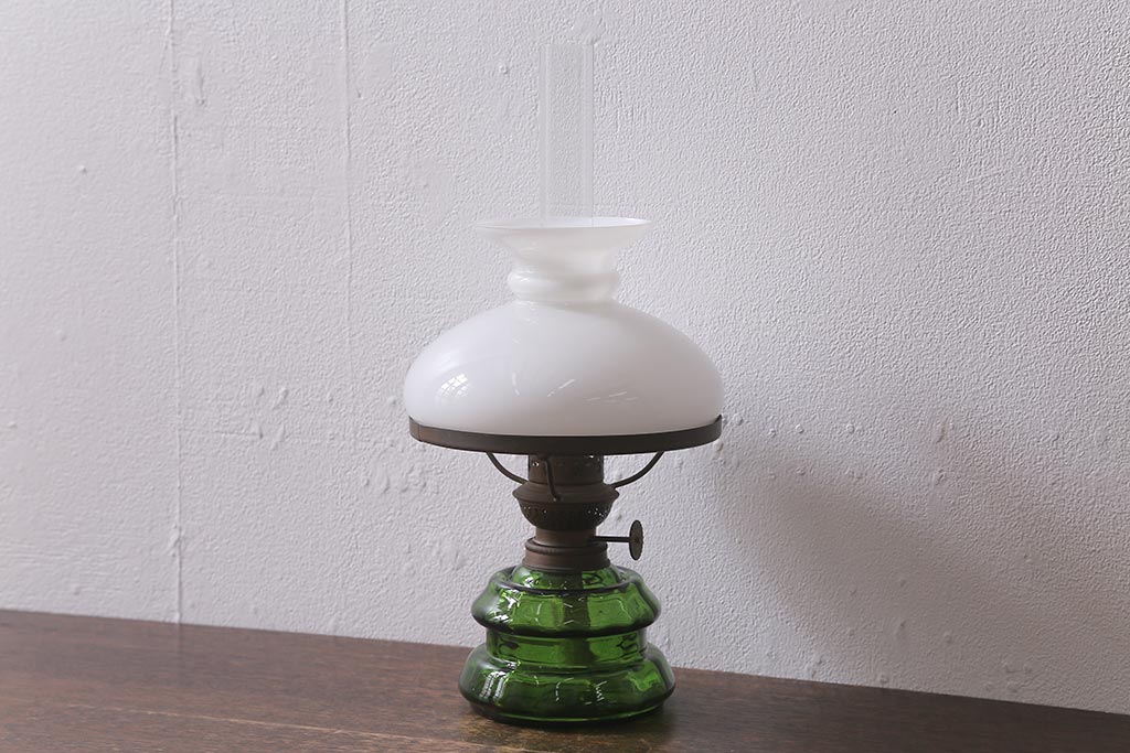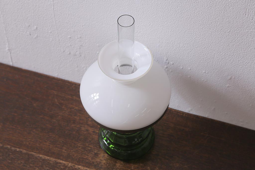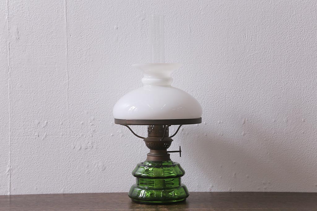 ヴィンテージ雑貨 ドイツ製 巻芯14分芯 KOSMOS BRENNER グリーンの色付きタンクが素敵なオイルランプ(卓上ランプ、豆ランプ、ビンテージ)(R-040820)