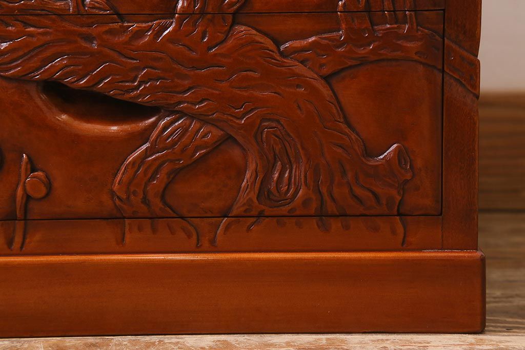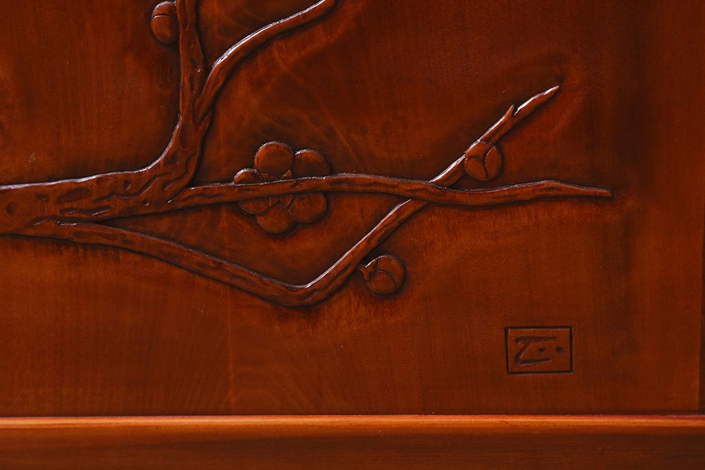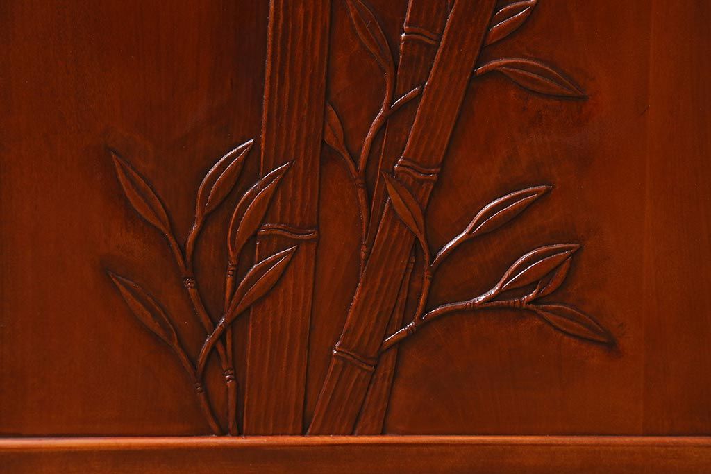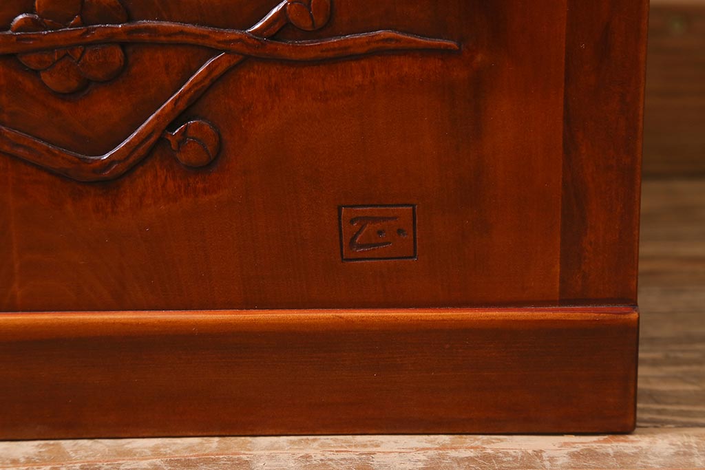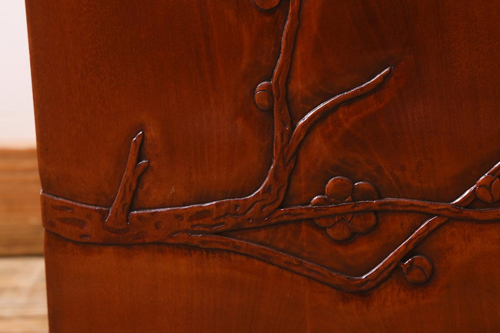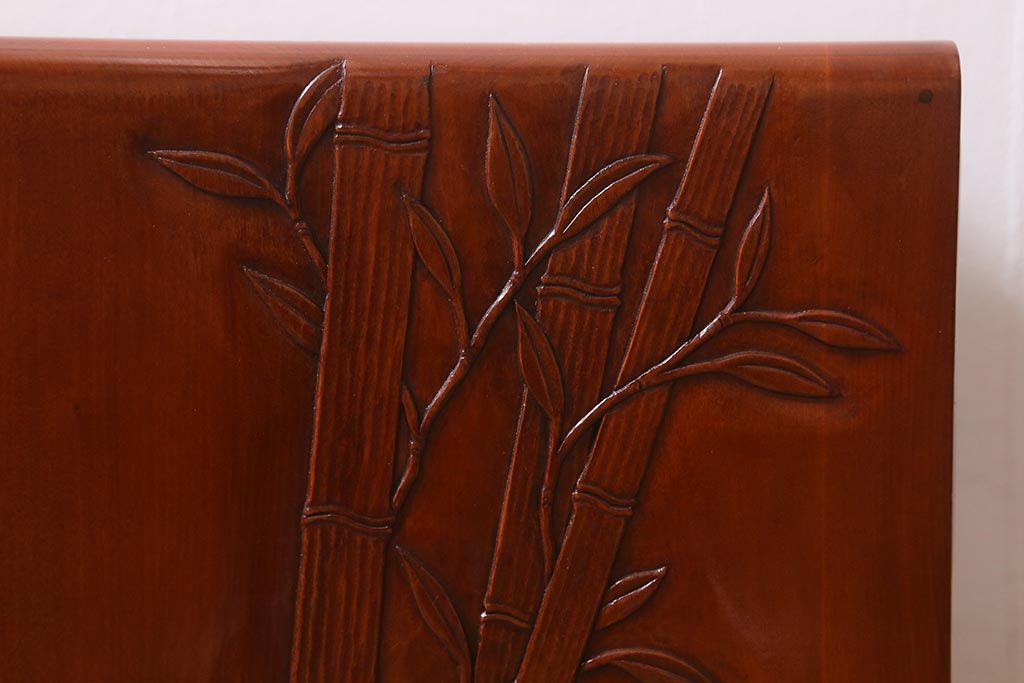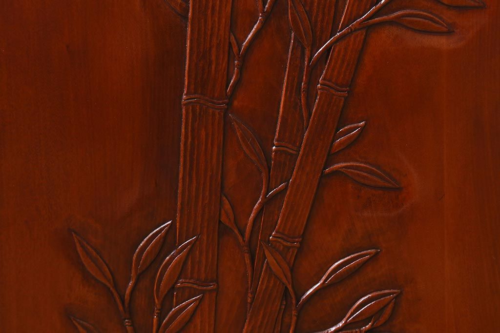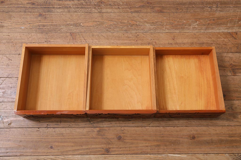 中古 伝統工芸 日光彫り 竹・梅の木 彫刻が魅力の小引き出し(卓上収納、小物収納)(R-040883)