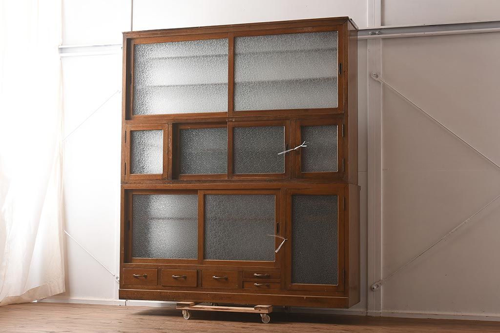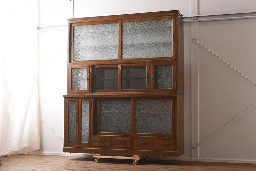 レトロ家具 激レア! 両面使いのガラス戸棚(キャビネット、収納棚、食器棚)(R-040276)です。