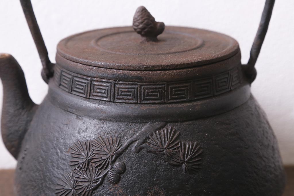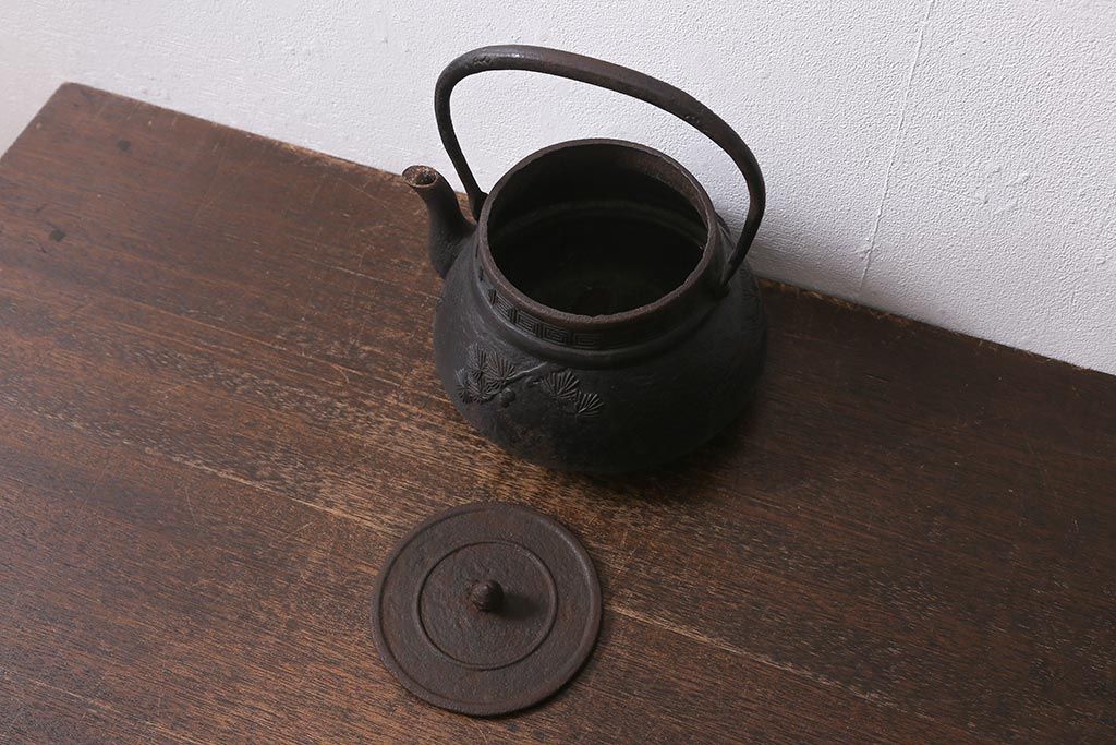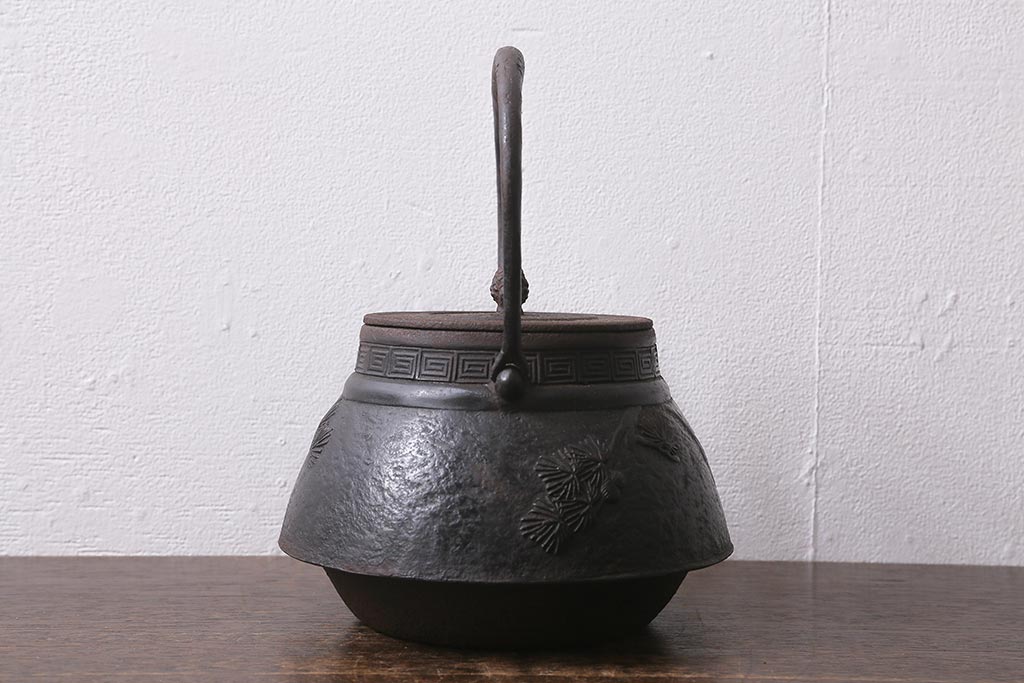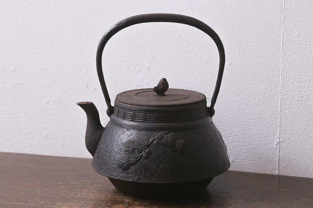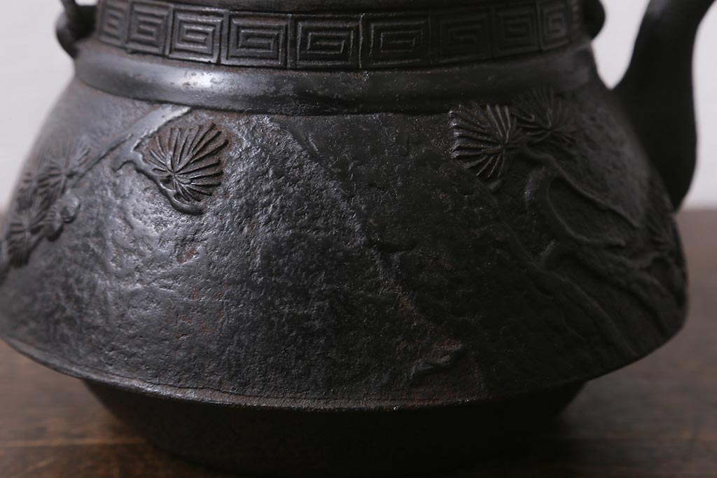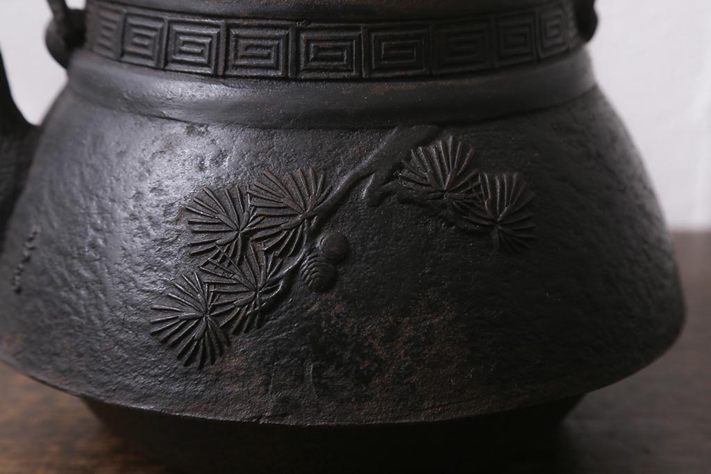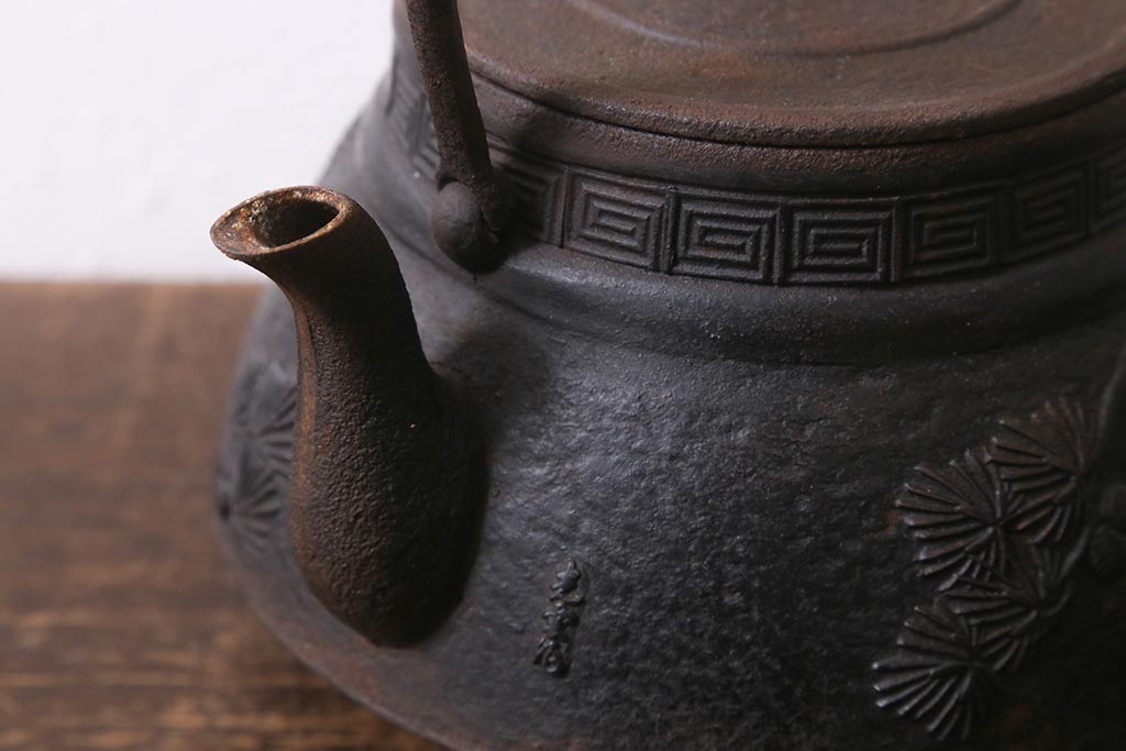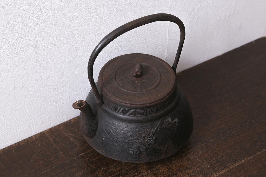 アンティーク雑貨 古民具・骨董 光雲作 松文 昭和初期の古い鉄瓶(茶道具)(R-040740)