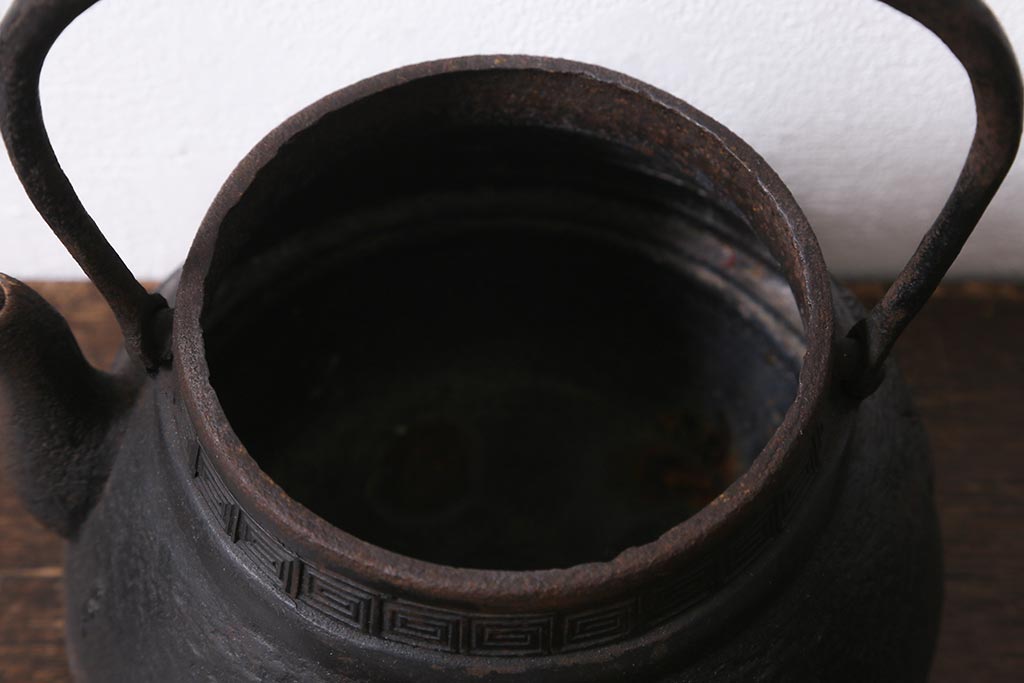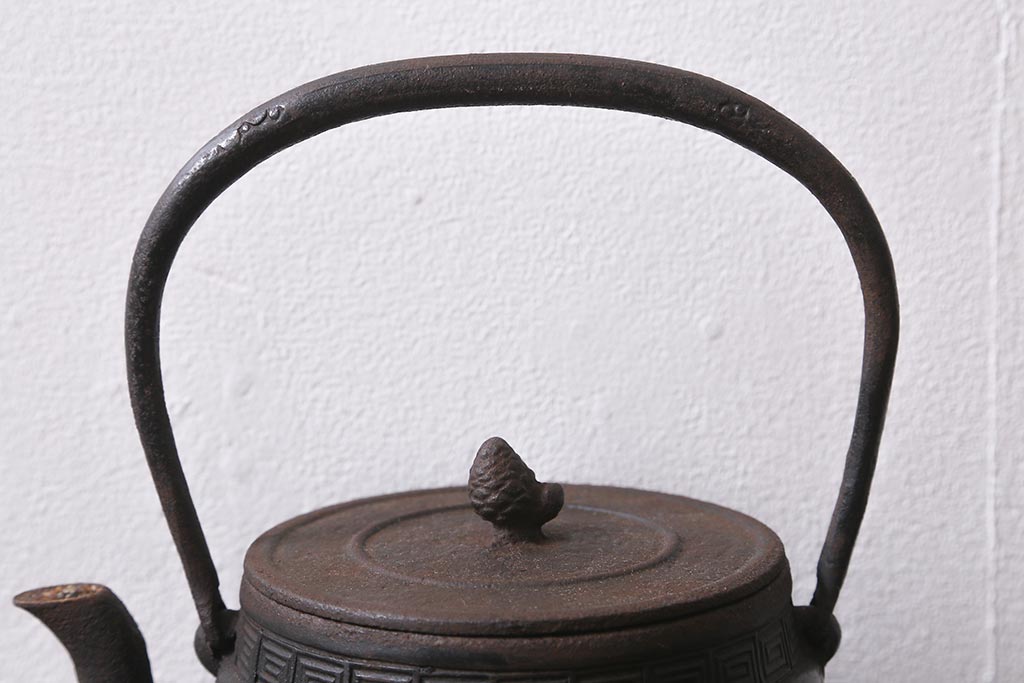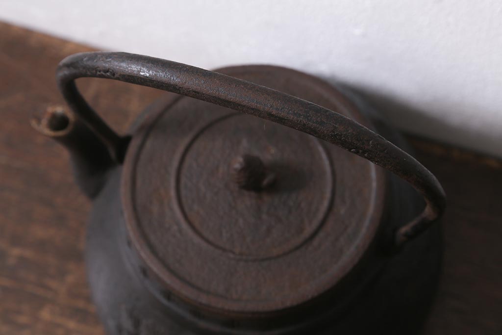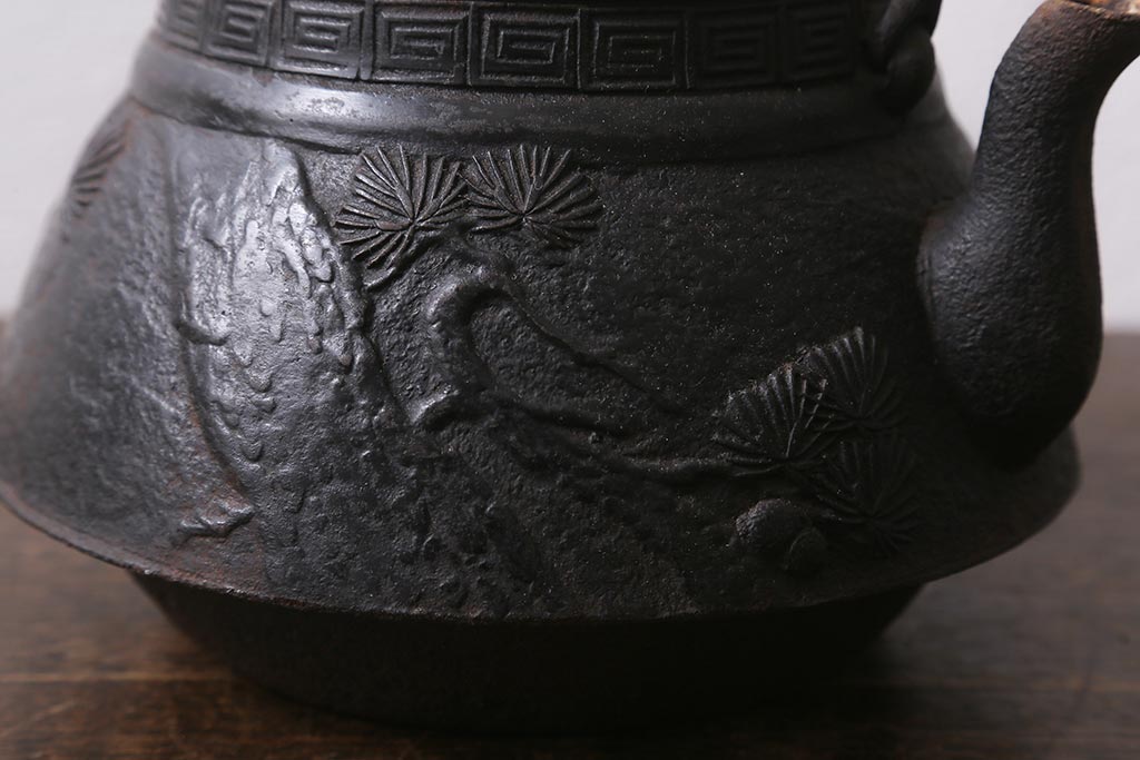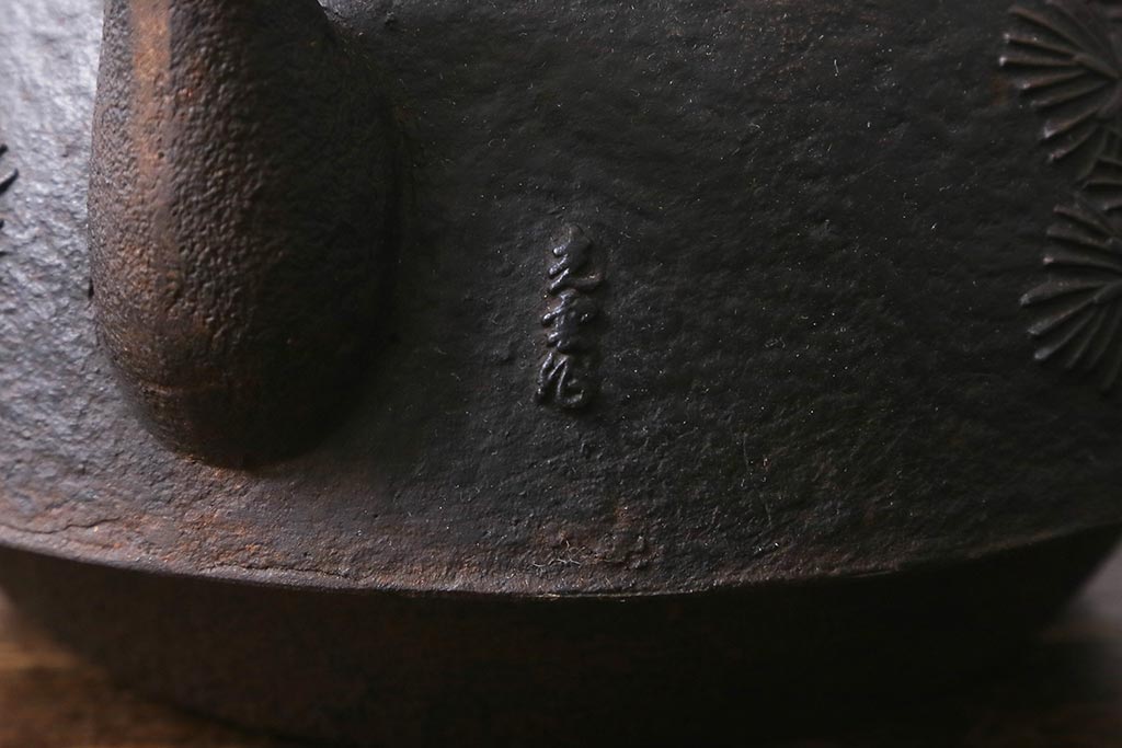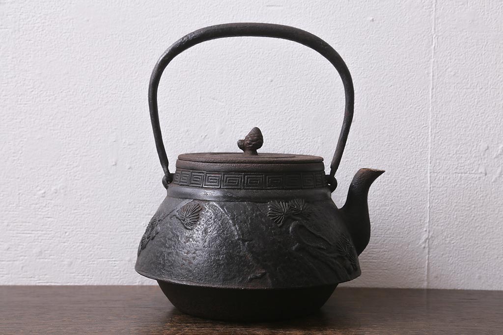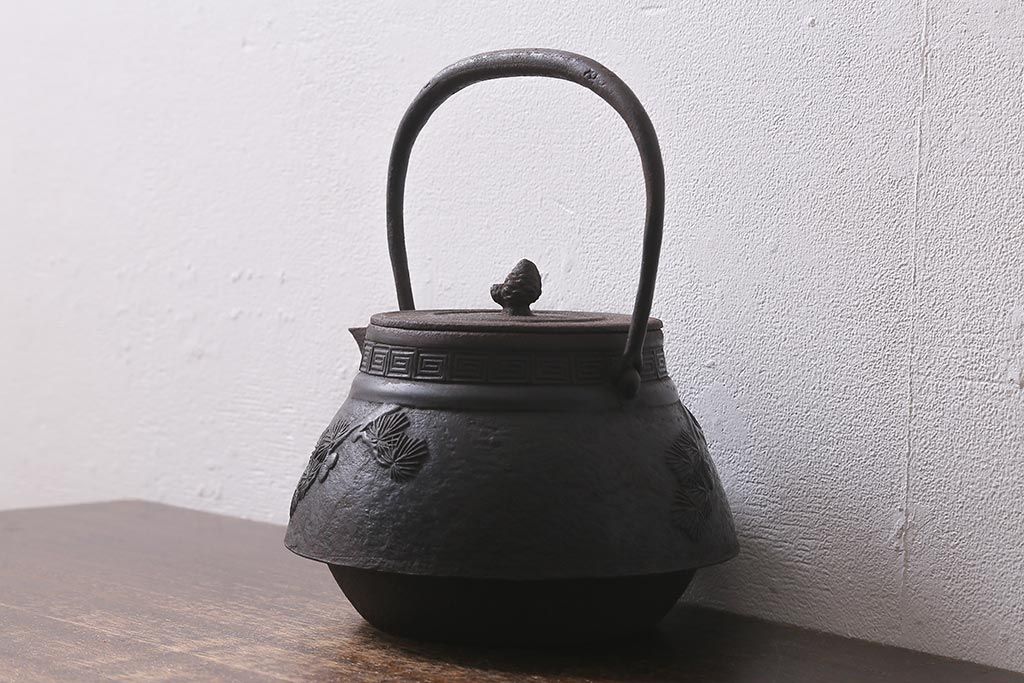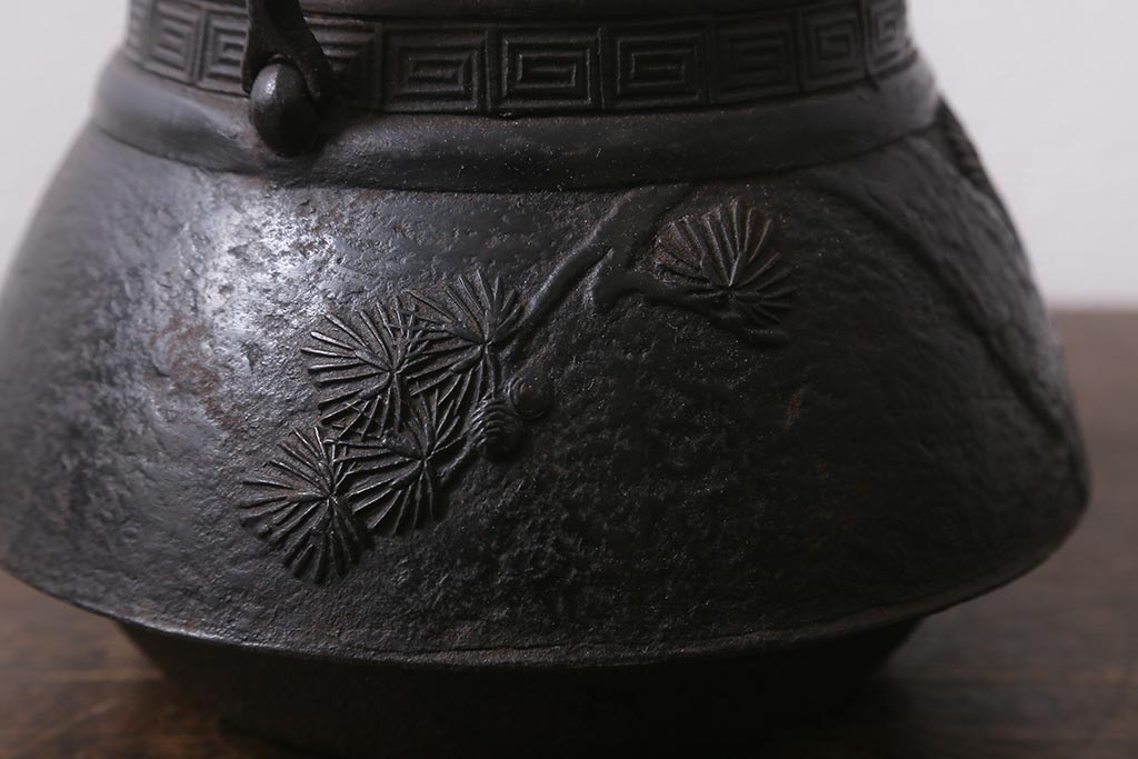 アンティーク雑貨 古民具・骨董 光雲作 松文 昭和初期の古い鉄瓶(茶道具)(R-040740)
