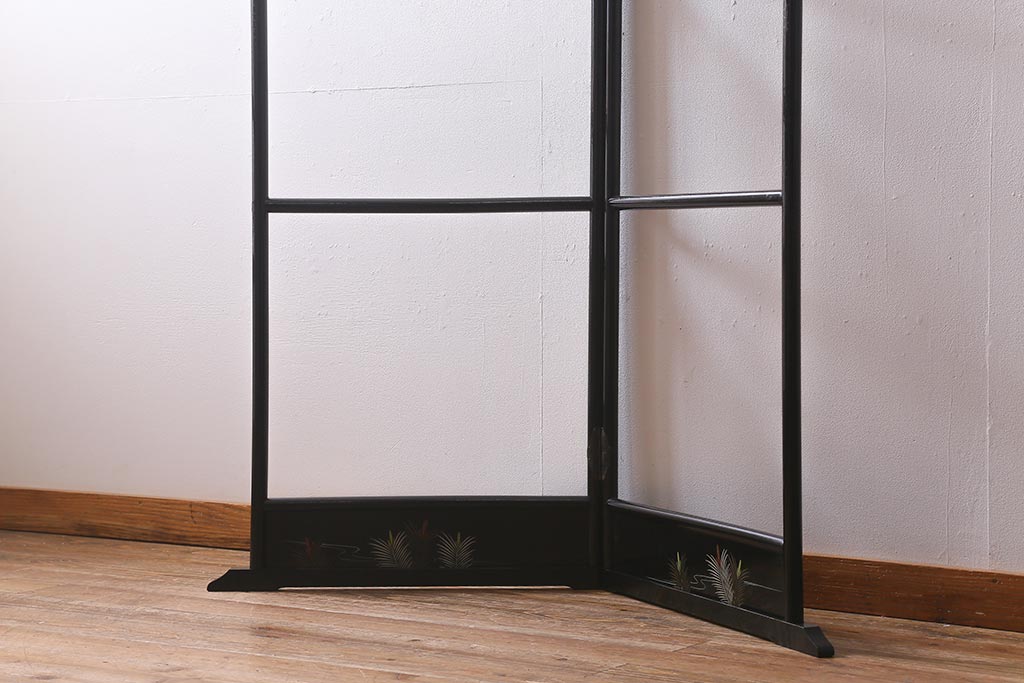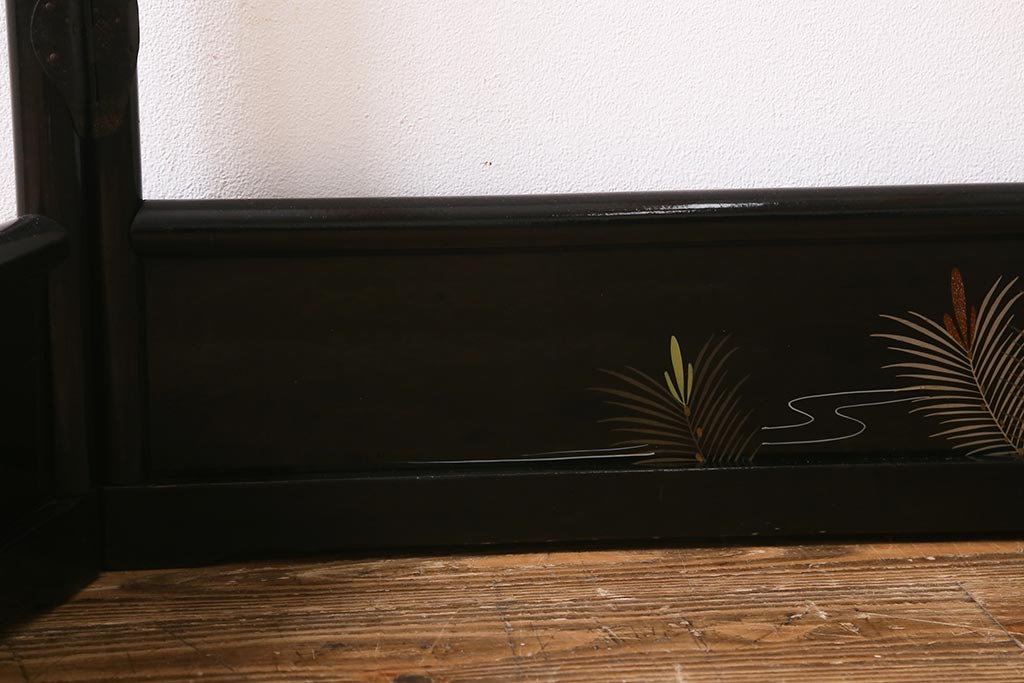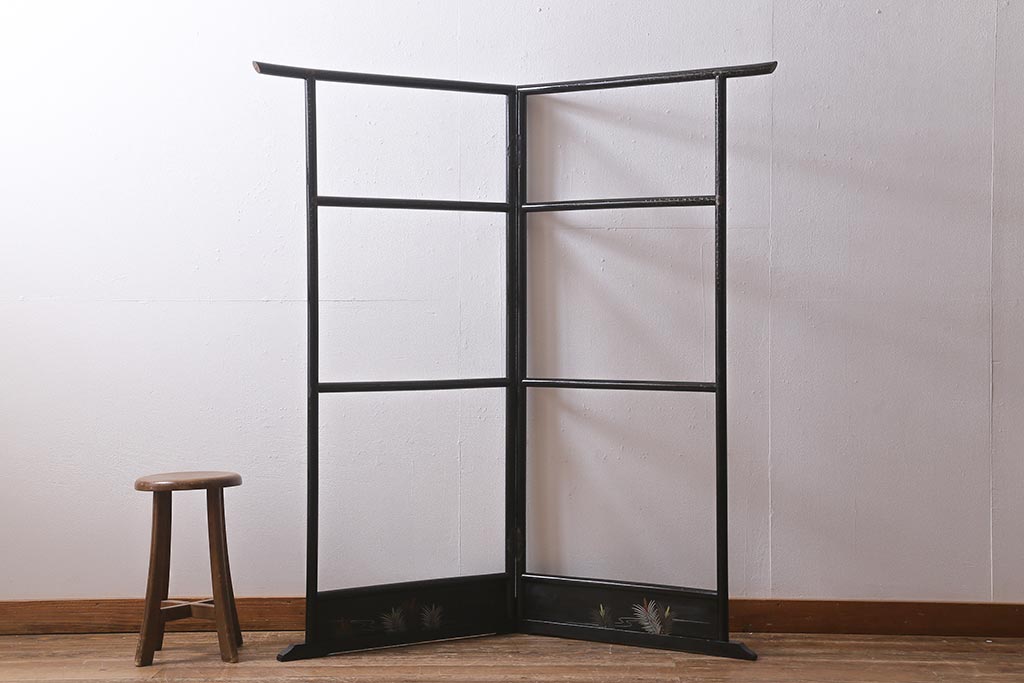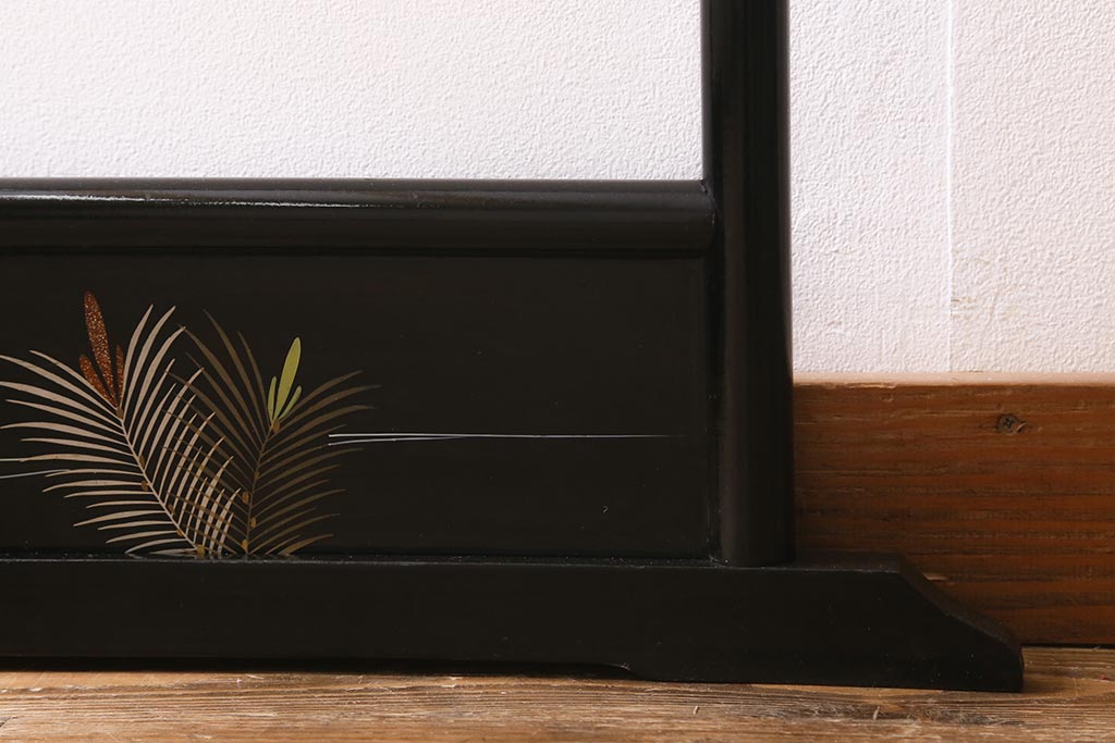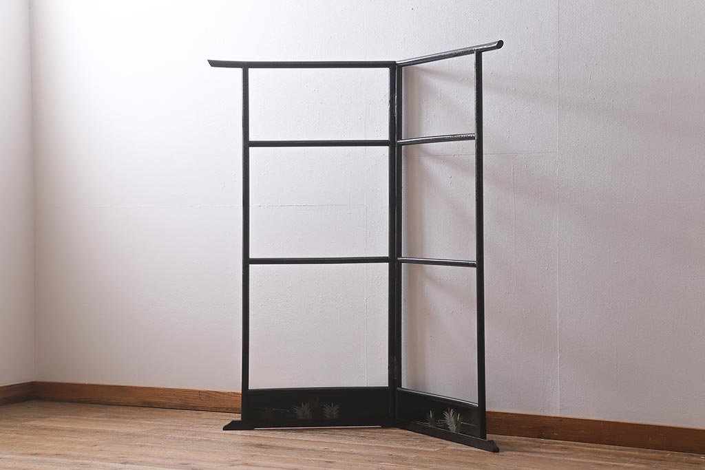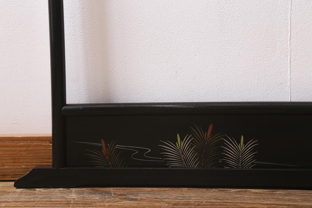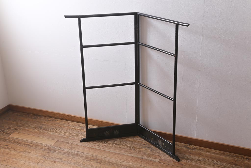 アンティーク家具 漆塗り 黒塗りがモダンなフック付きの便利な衣桁(着物掛け、ハンガーラック)(R-040923)