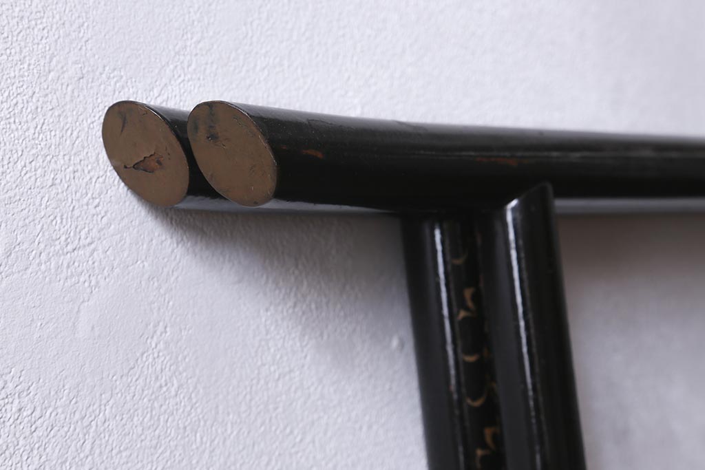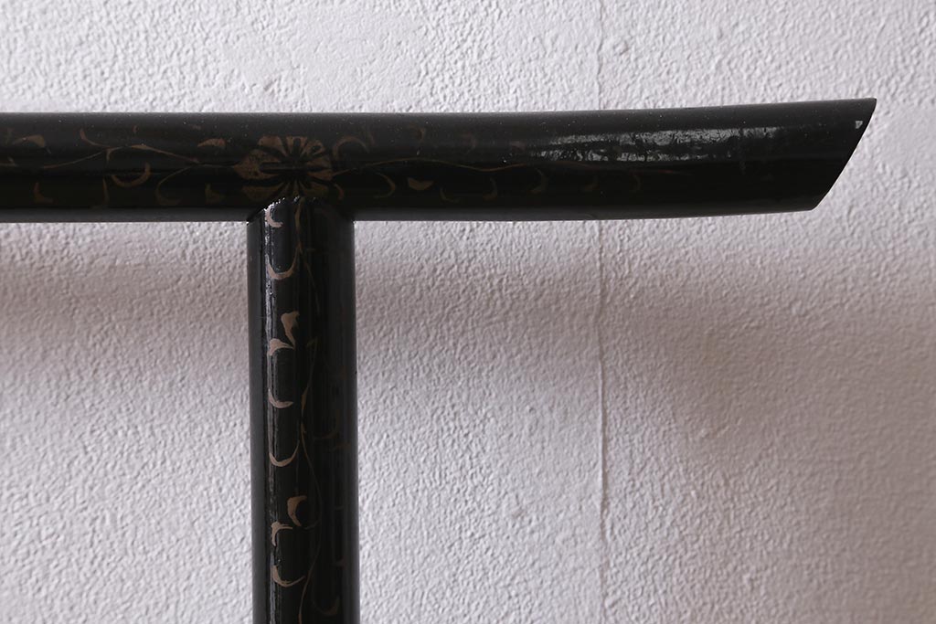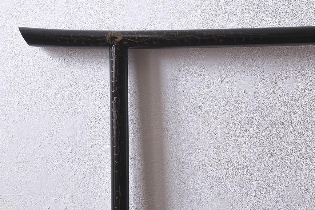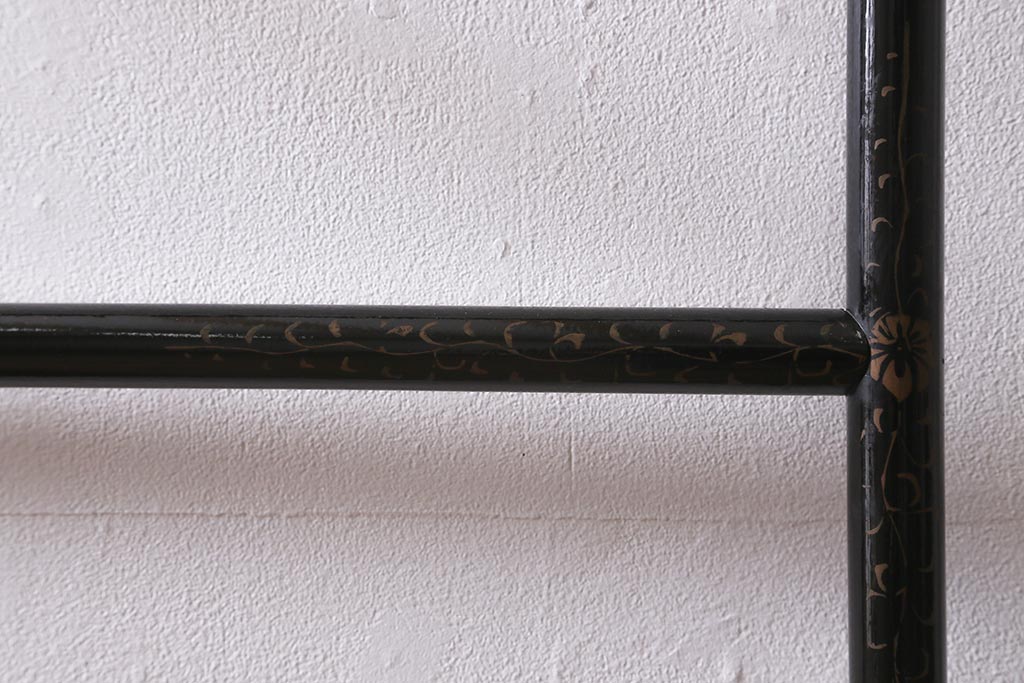 アンティーク家具 漆塗り 黒塗りがモダンなフック付きの便利な衣桁(着物掛け、ハンガーラック)(R-040923)です。