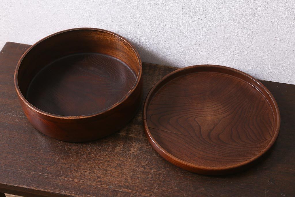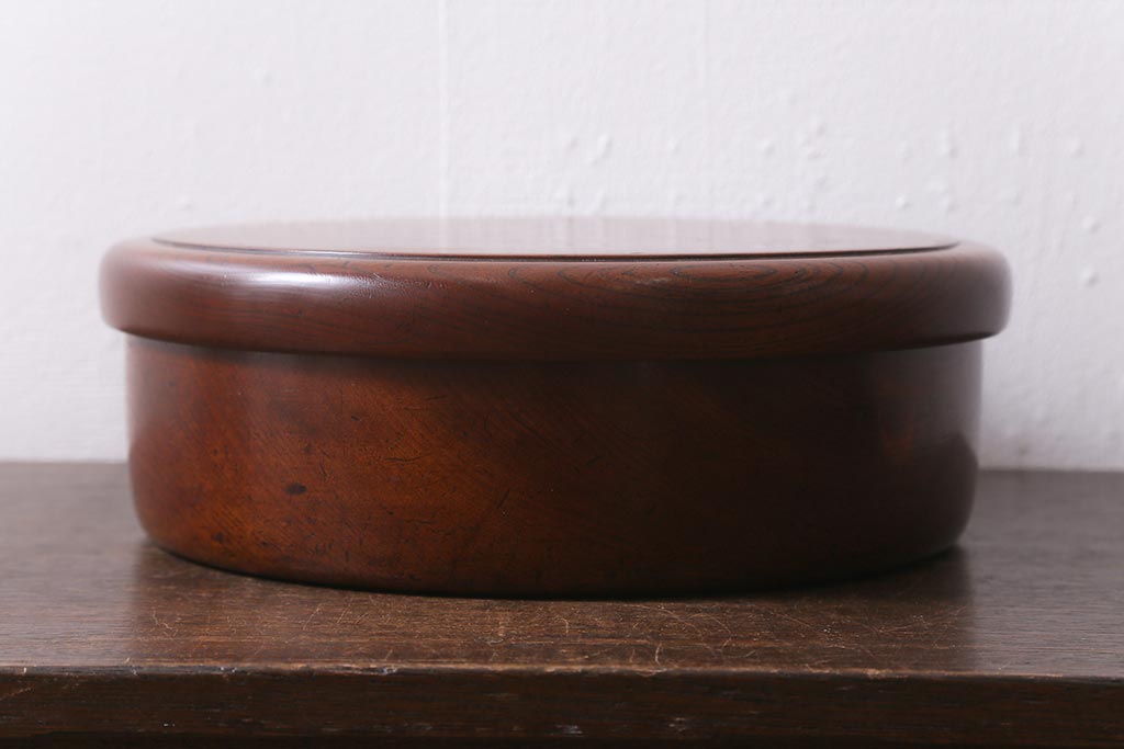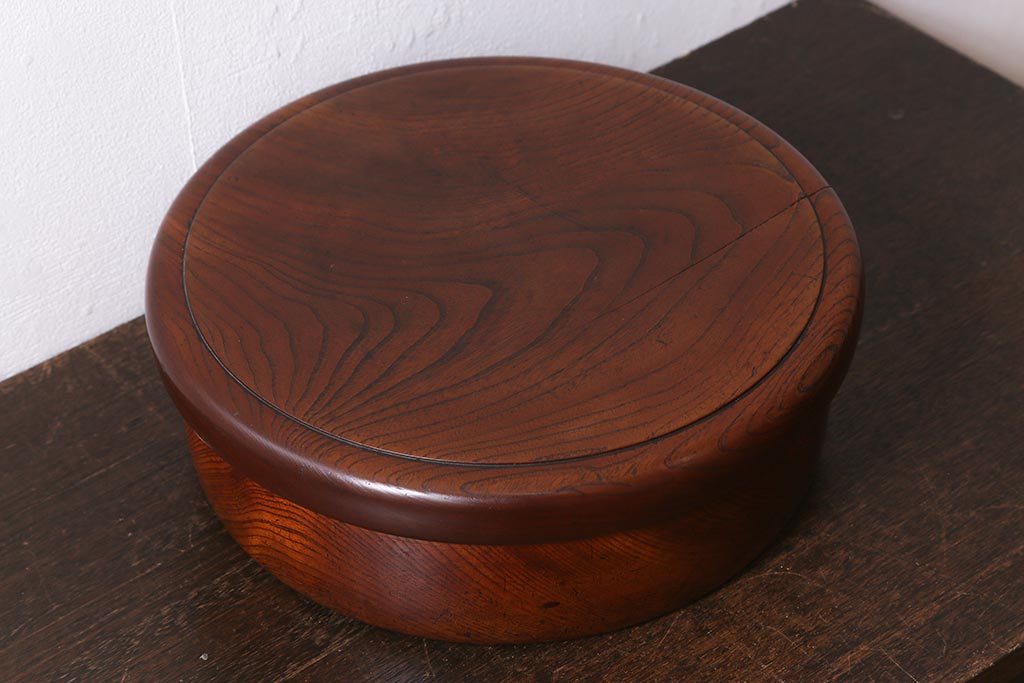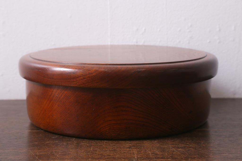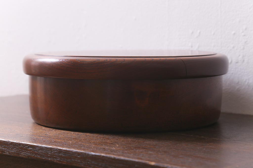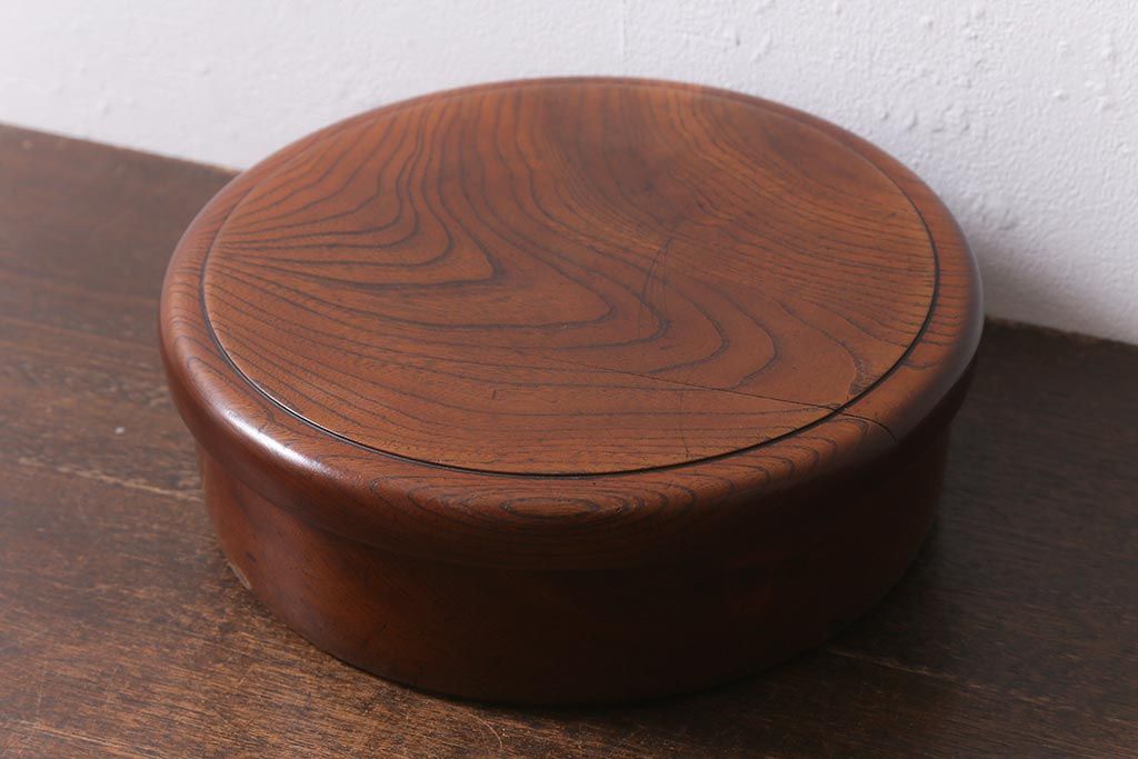 レトロ雑貨 総ケヤキ材 杢目が美しい木製の茶櫃(茶道具、小物入れ)(R-040913)