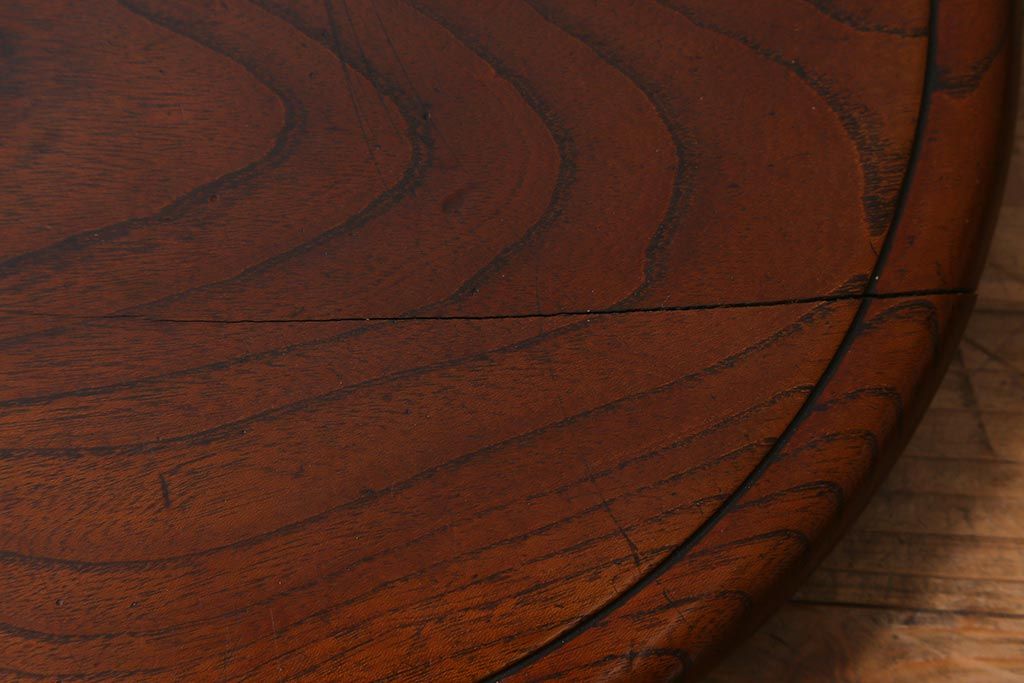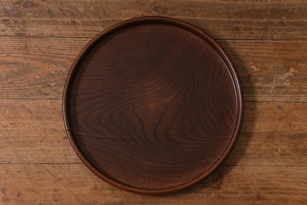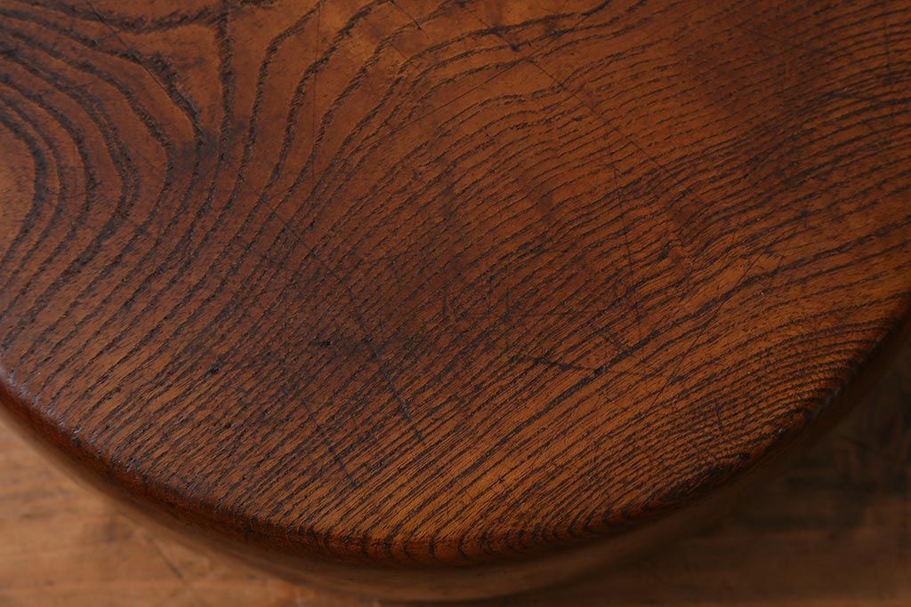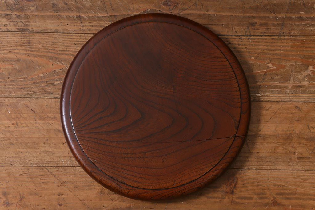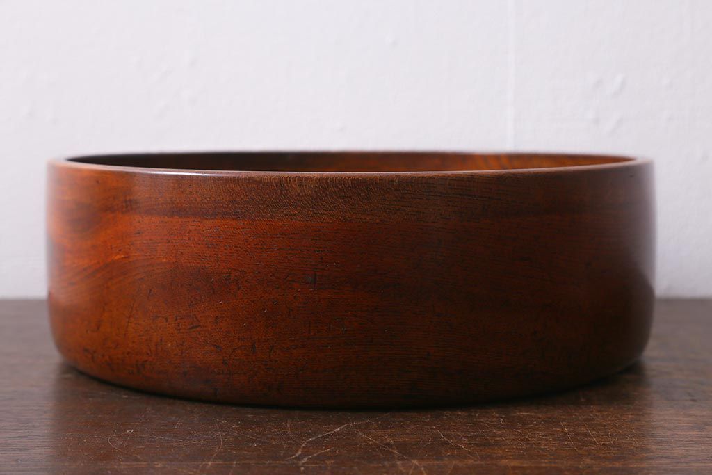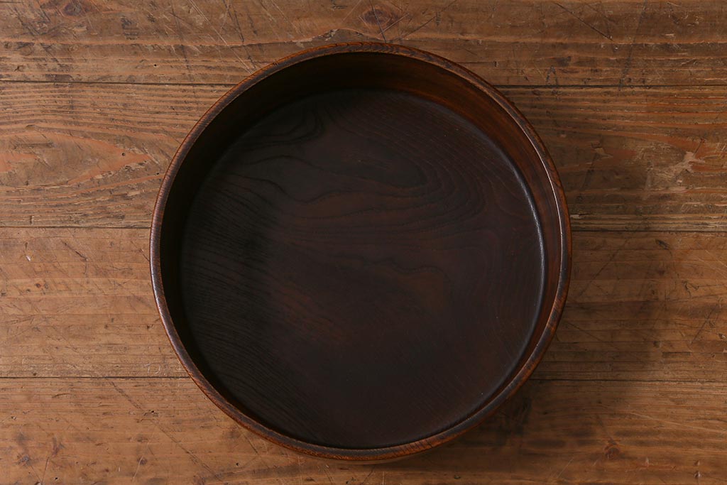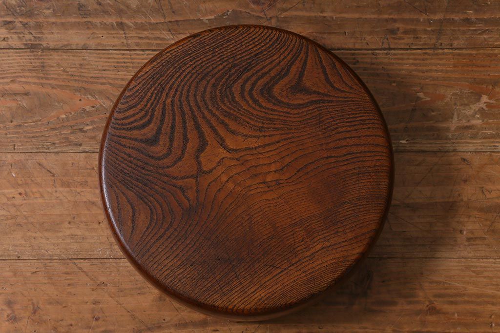 レトロ雑貨 総ケヤキ材 杢目が美しい木製の茶櫃(茶道具、小物入れ)(R-040913)