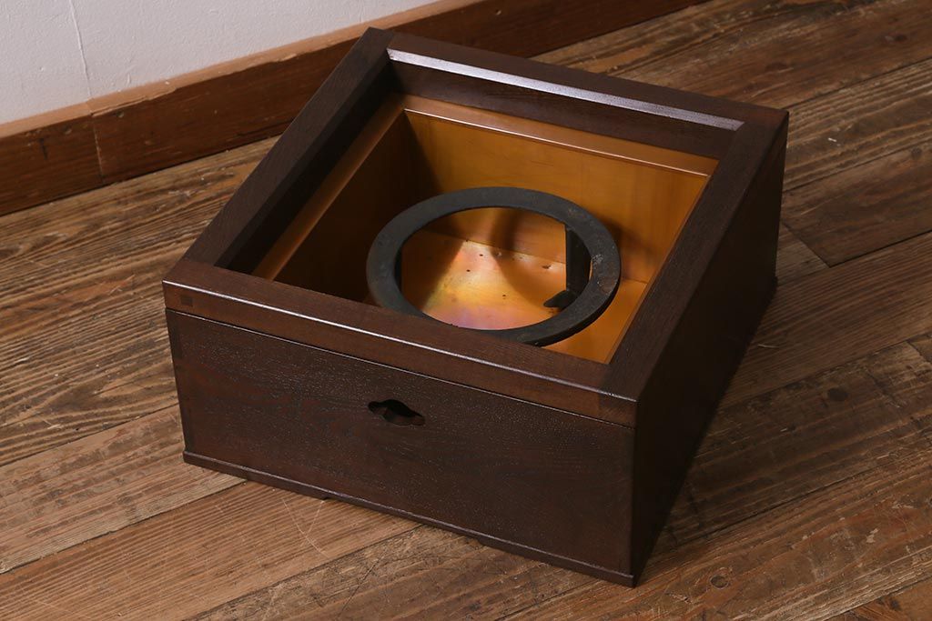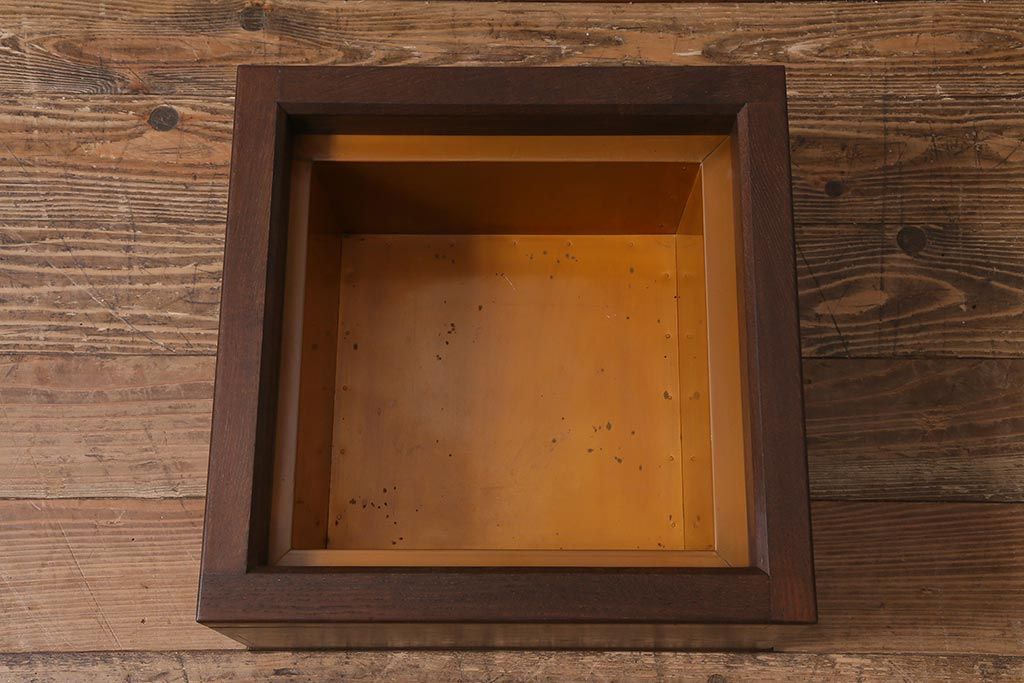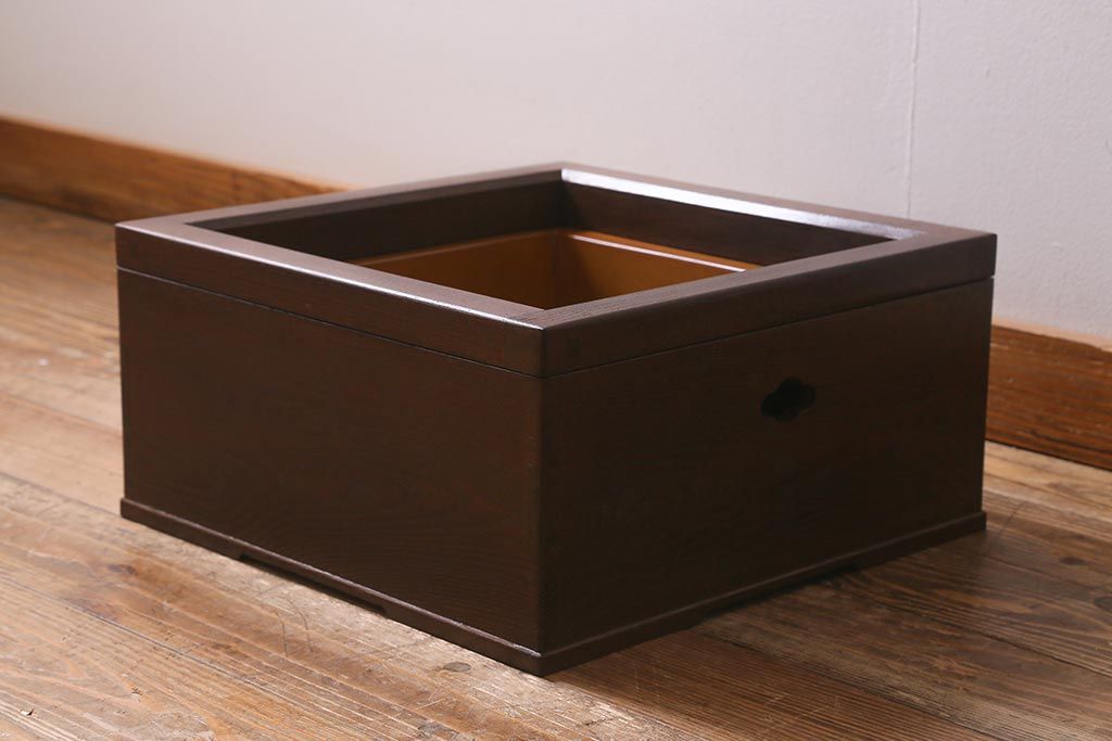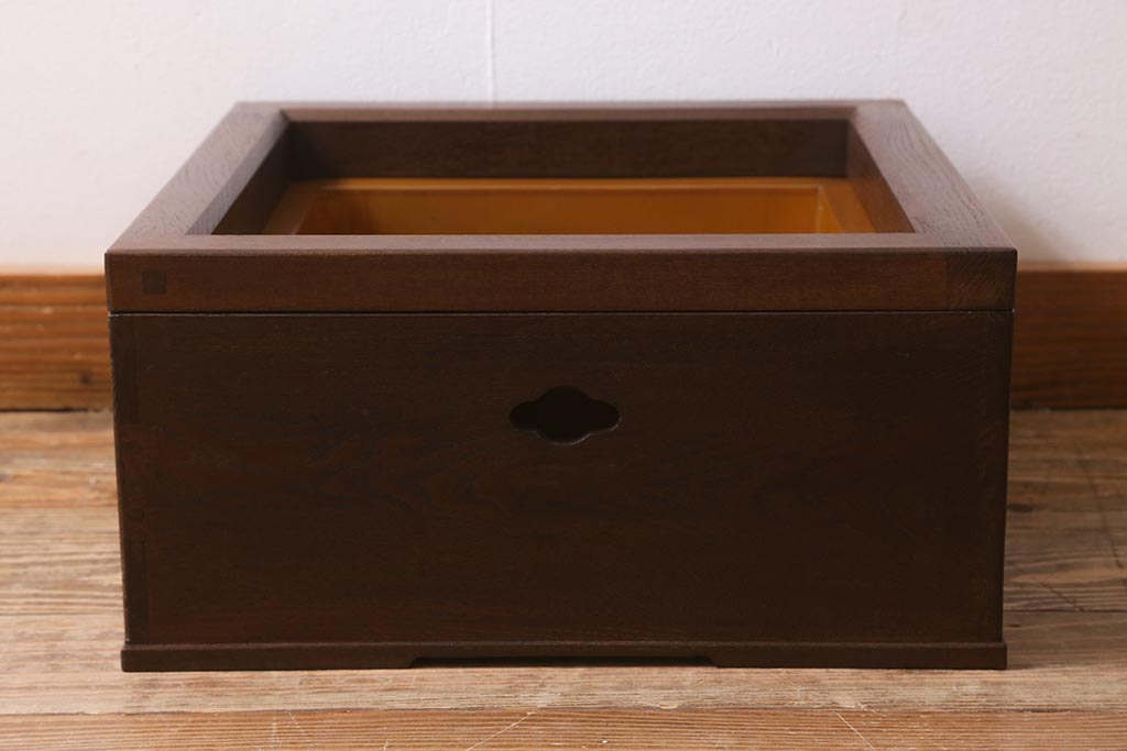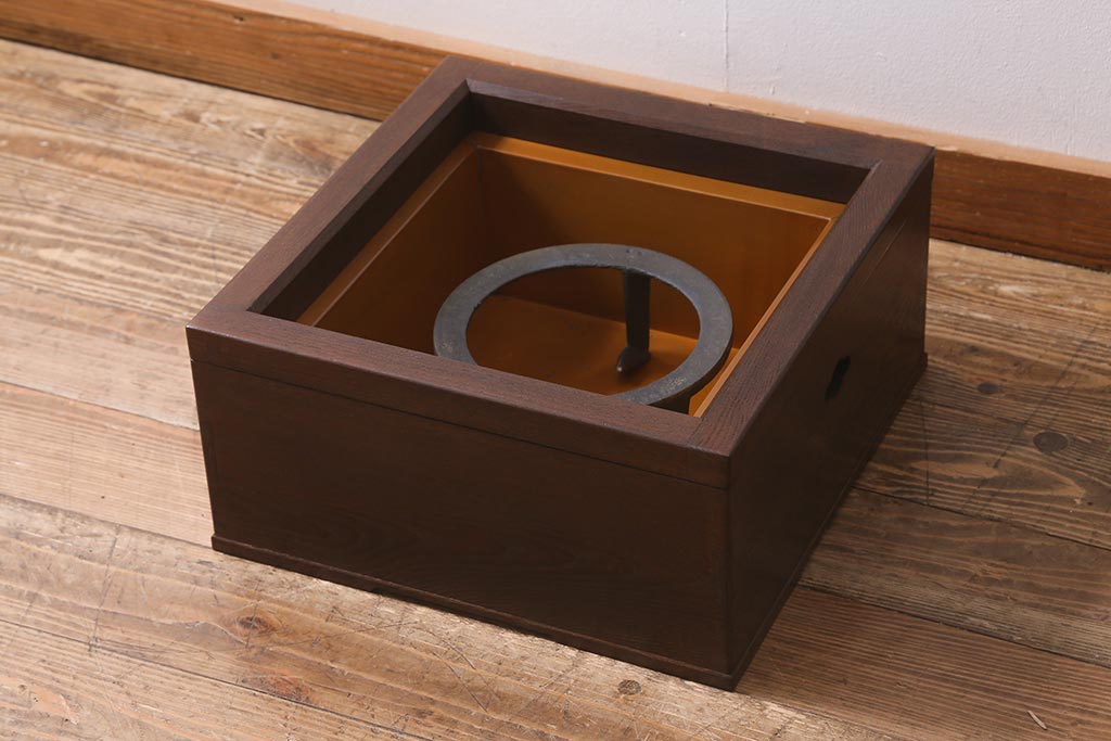 レトロ雑貨 指物家具 昭和後期 五徳付き 桑材 シンプルなデザインの木製角火鉢(箱火鉢、茶道具)(R-040907)です。