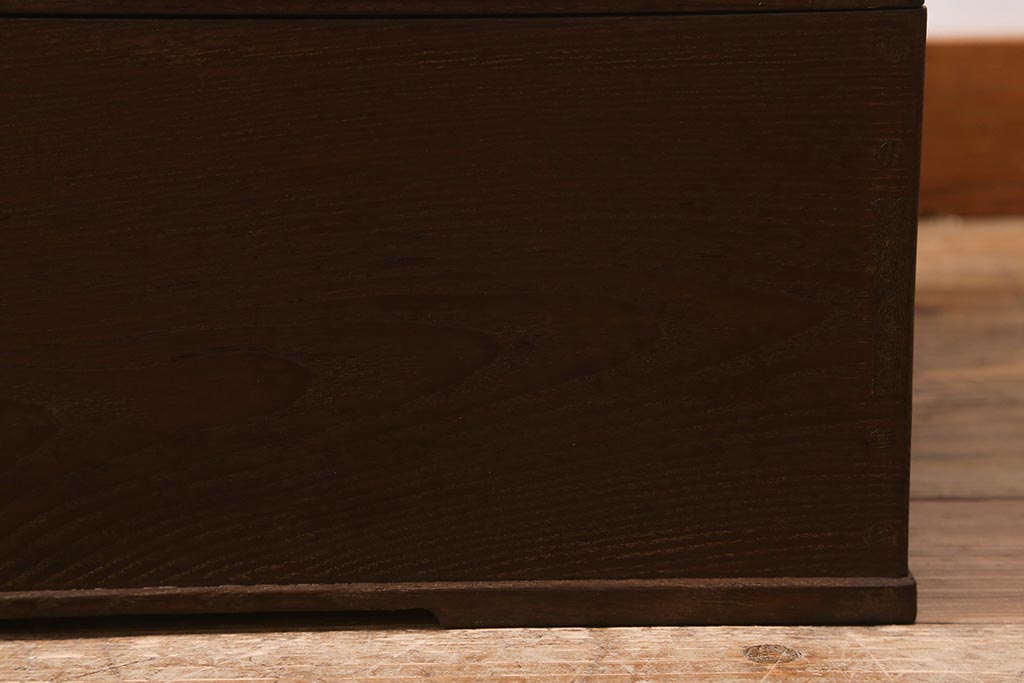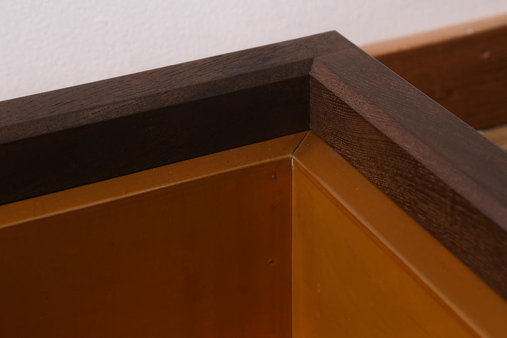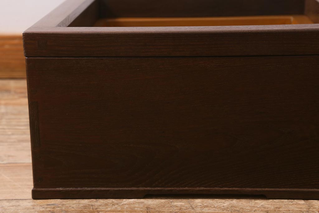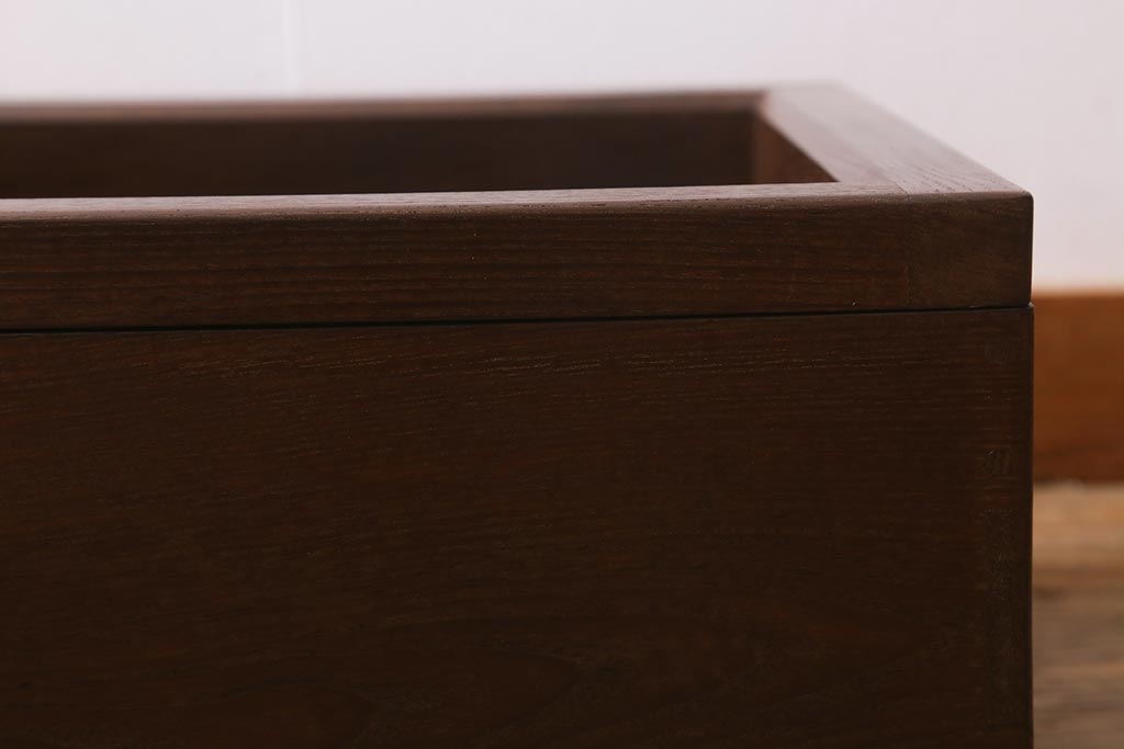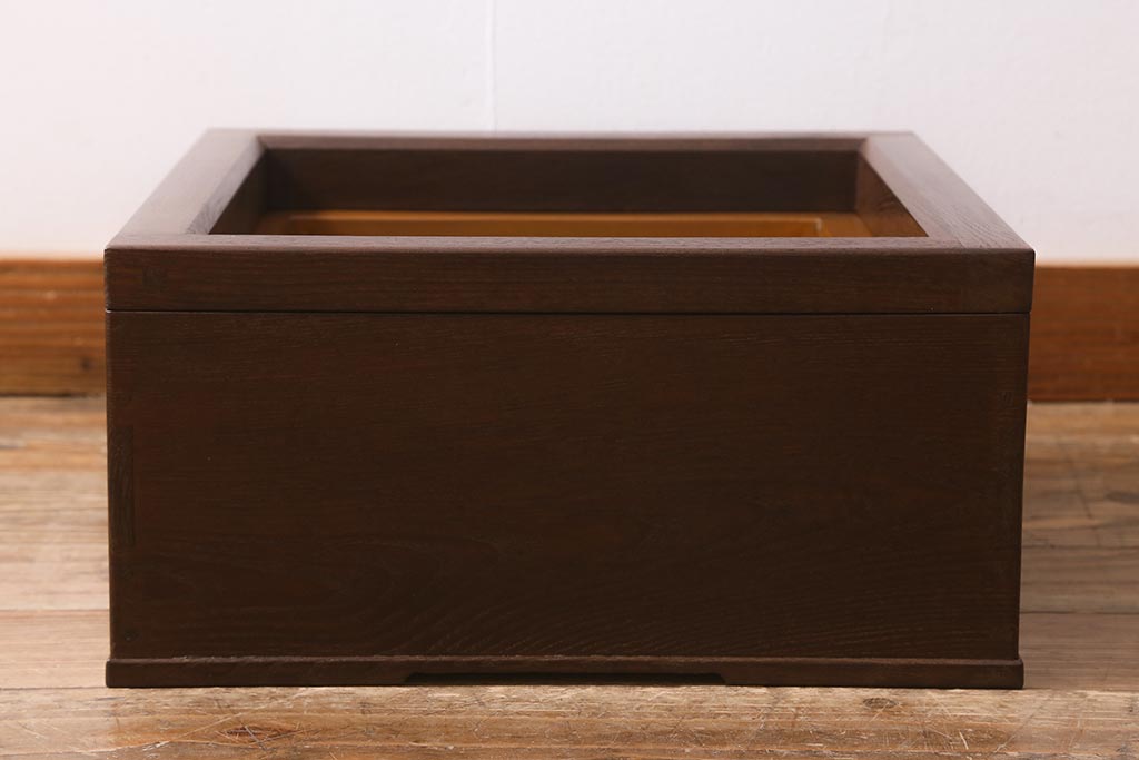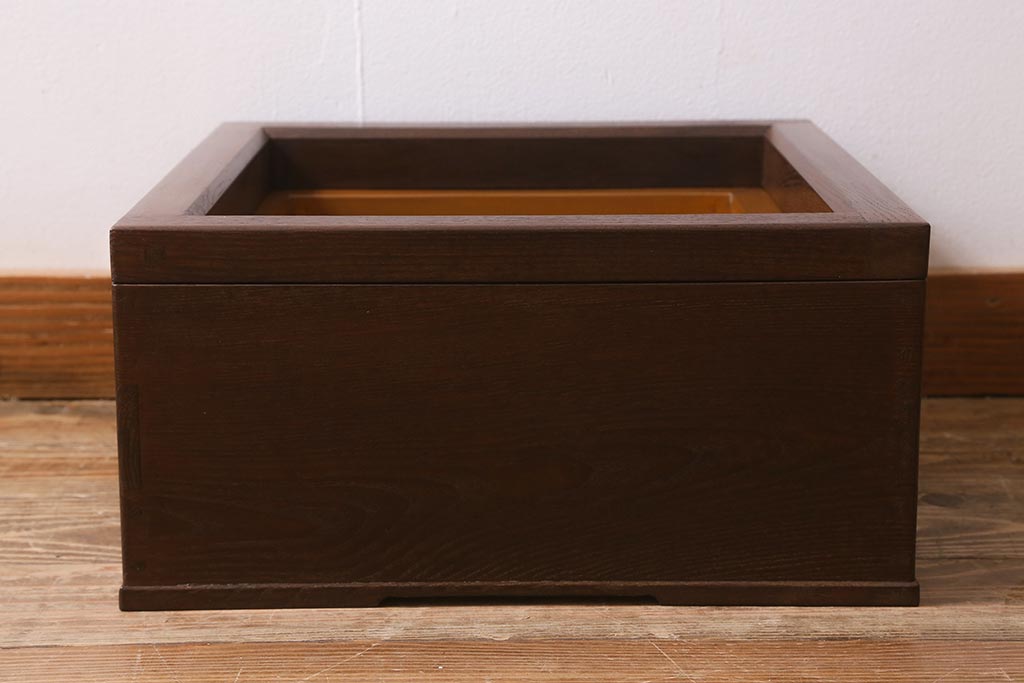 レトロ雑貨 指物家具 昭和後期 五徳付き 桑材 シンプルなデザインの木製角火鉢(箱火鉢、茶道具)(R-040907)です。