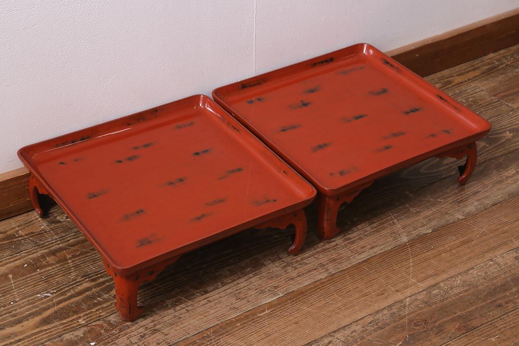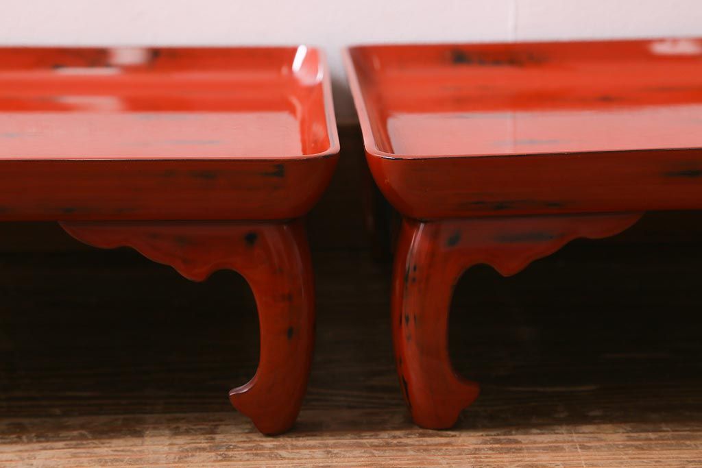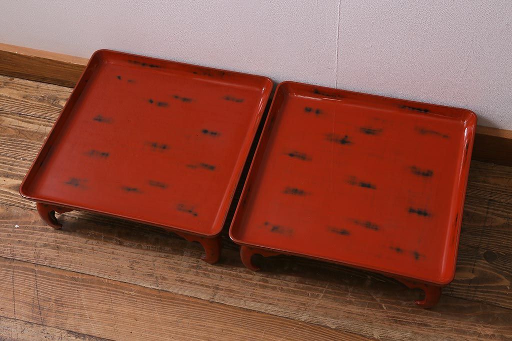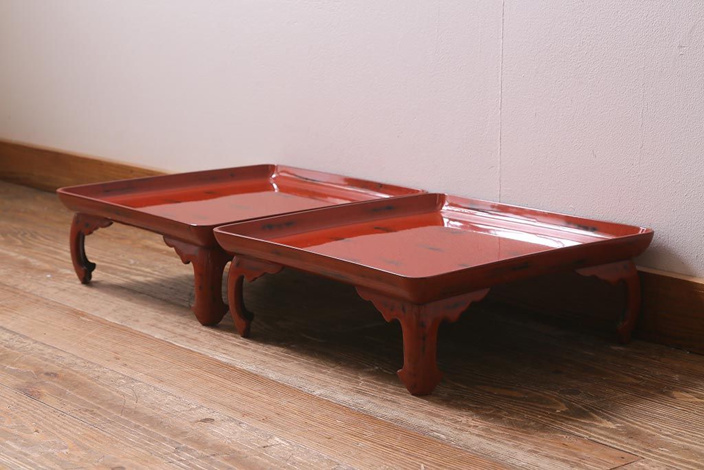アンティーク雑貨 根来塗 和空間にぴったりな味のあるお膳2客セット(木製お膳、漆器)(R-040905)