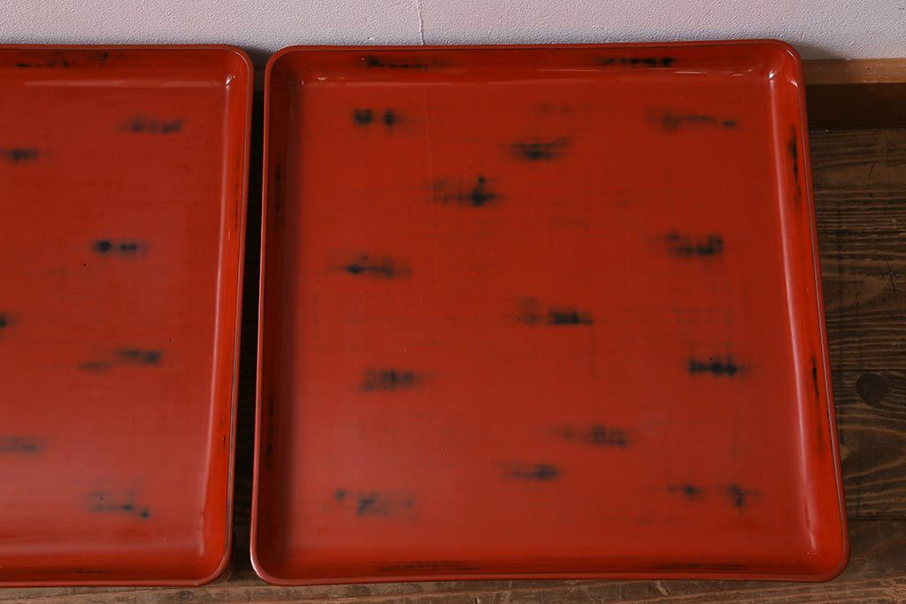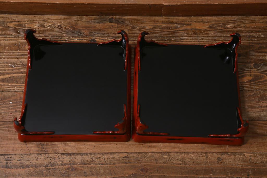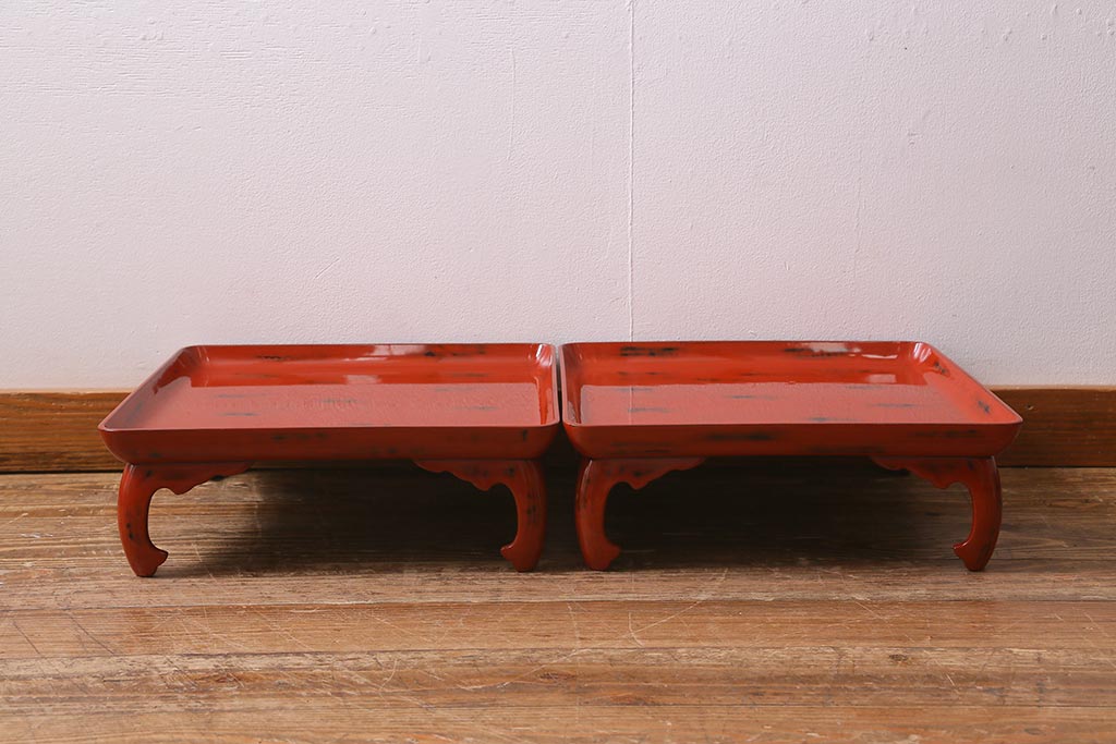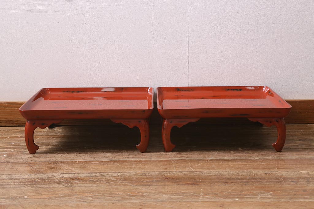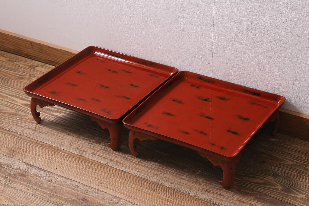アンティーク雑貨 根来塗 和空間にぴったりな味のあるお膳2客セット(木製お膳、漆器)(R-040905)