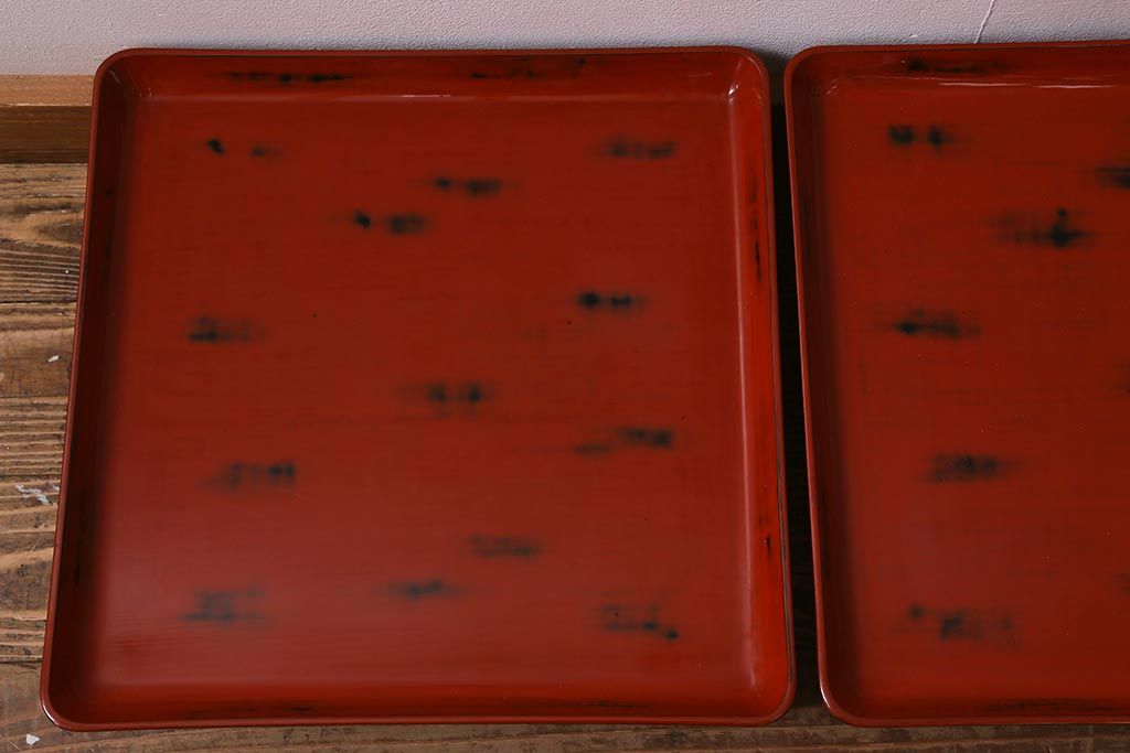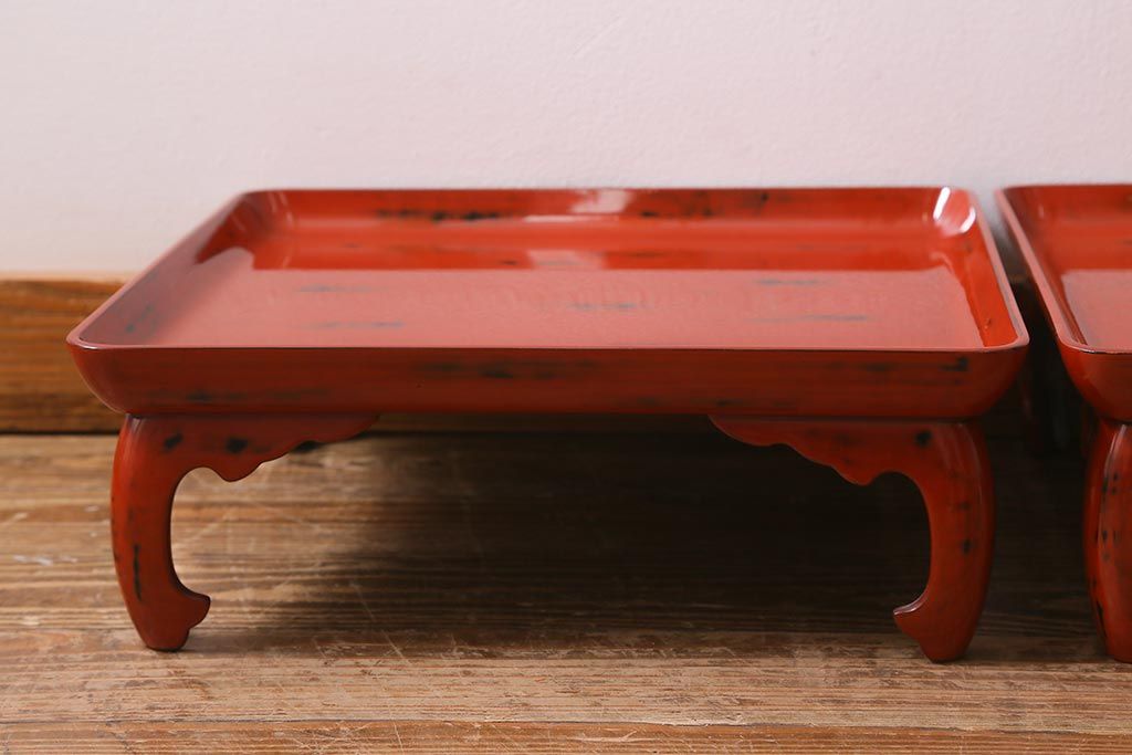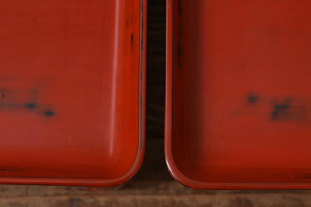 ラフジュ工房> 骨董・美術品> 骨董-漆器 > アンティーク雑貨 根来塗 和空間にぴったりな味のあるお膳2客セット(木製お膳、漆器)(R-040905)