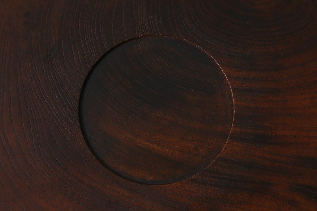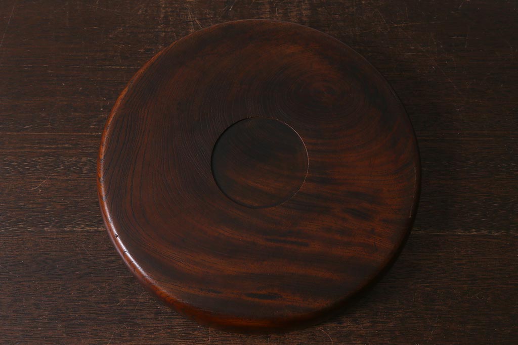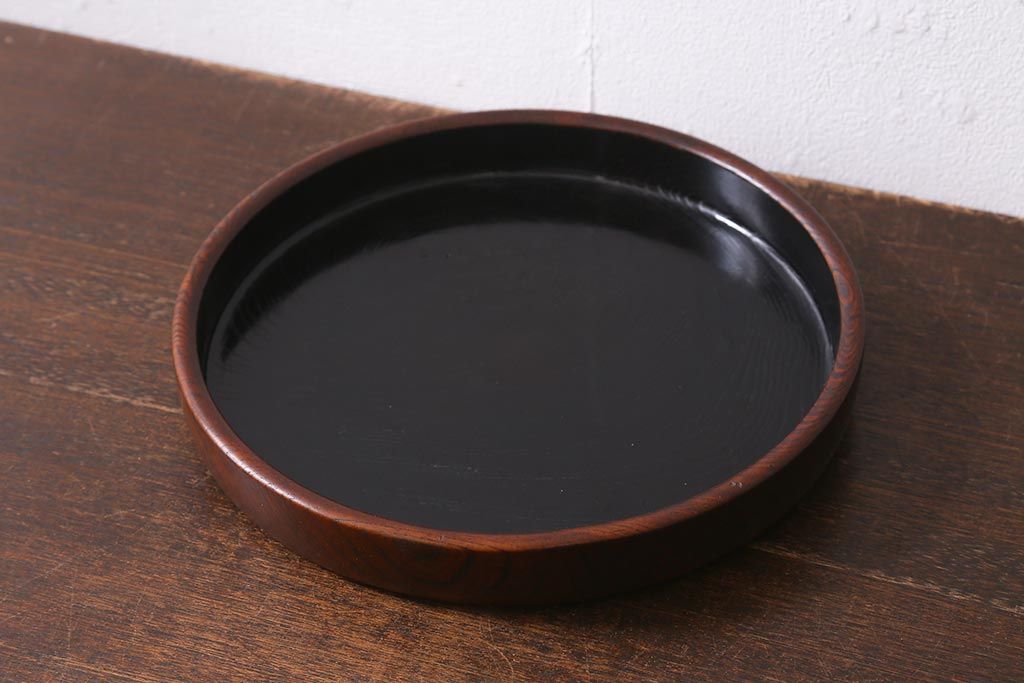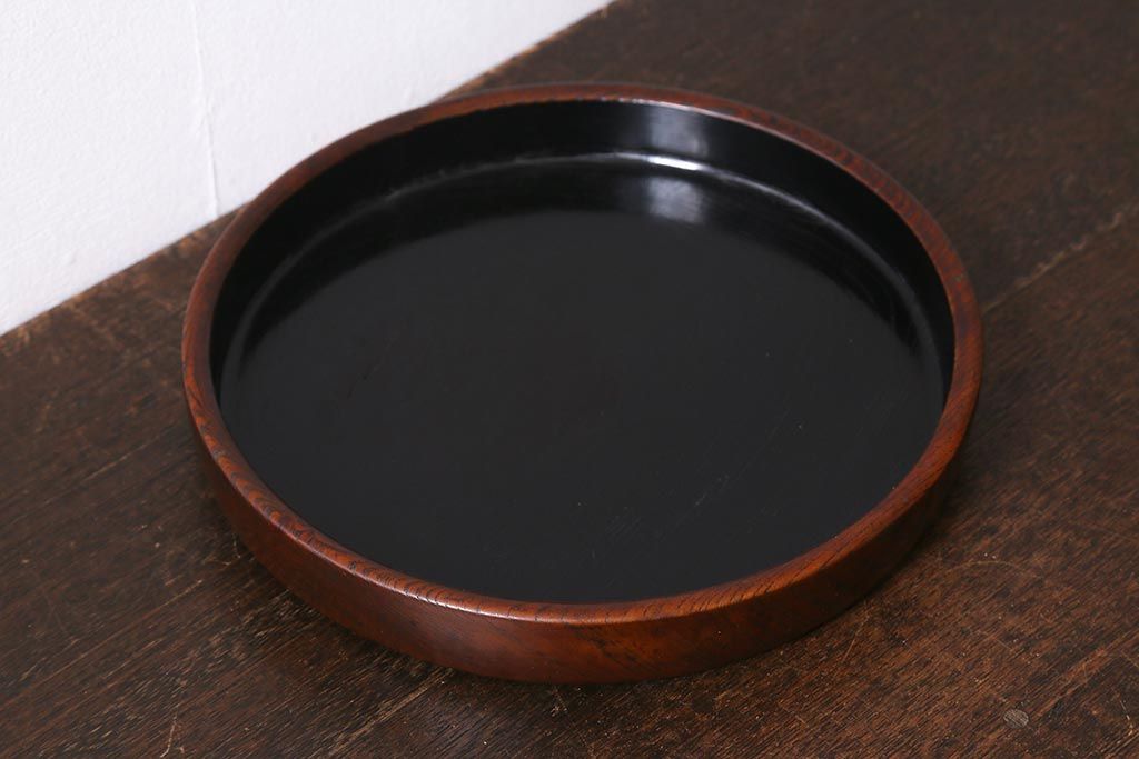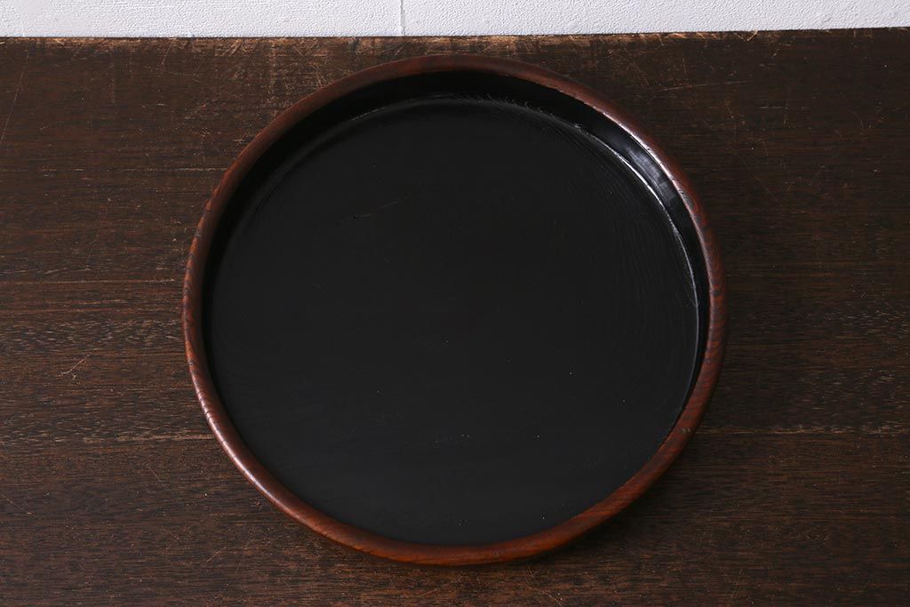ラフジュ工房> 和食器・茶道具> お盆・お膳・お重 > レトロ雑貨 漆塗り 杢目が美しい木製の丸盆(漆器)(R-040910)