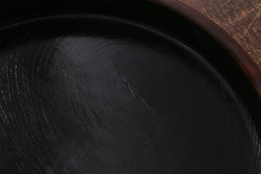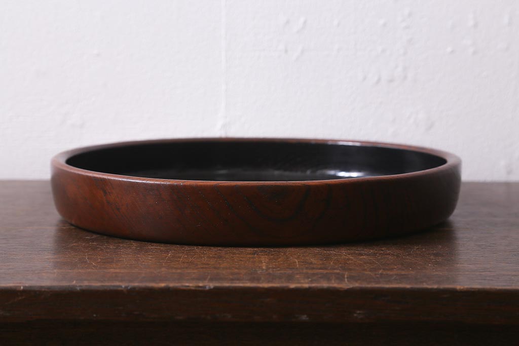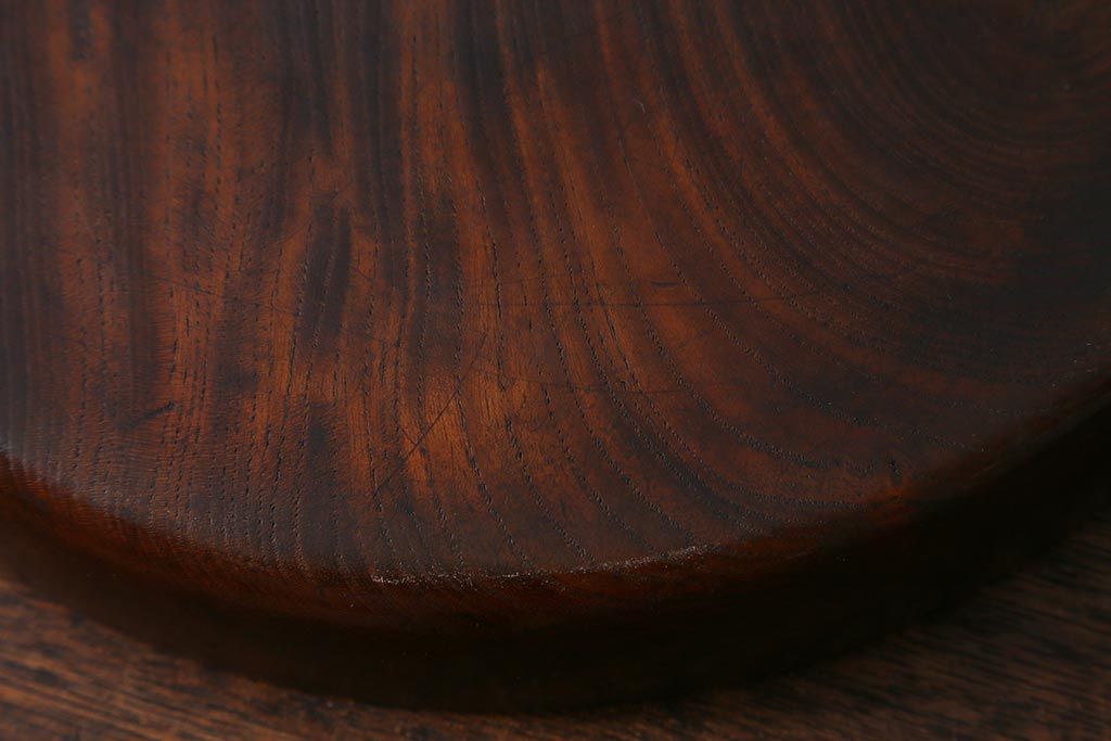 ラフジュ工房> 骨董・美術品> 骨董-漆器 > レトロ雑貨 漆塗り 杢目が美しい木製の丸盆(漆器)(R-040910)