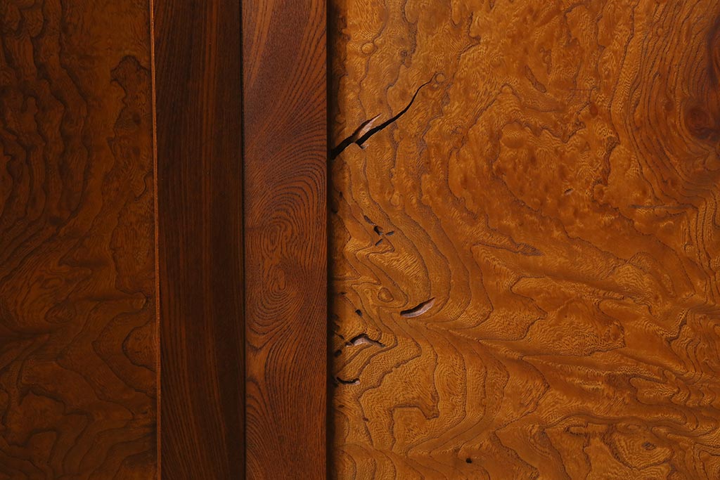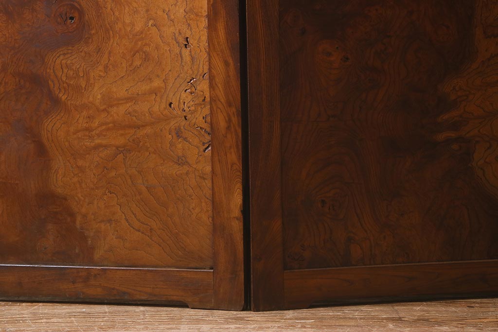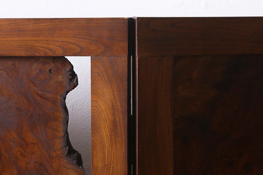 アンティーク家具 和製アンティーク 大正昭和初期 総ケヤキ材製 激レア!玉杢材を贅沢に使用した衝立(つい立て、パーテーション、仕切り)(R-040895)