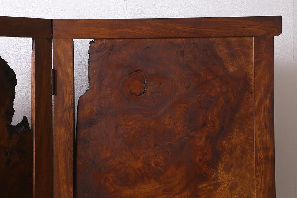 衝立・パーテーション > アンティーク家具 和製アンティーク 大正昭和初期 総ケヤキ材製 激レア!玉杢材を贅沢に使用した衝立(つい立て、パーテーション、仕切り)(R-040895)