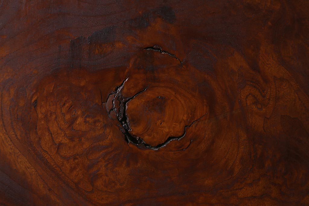 輪が幾重にも連なり渦巻くような杢目が印象的で、