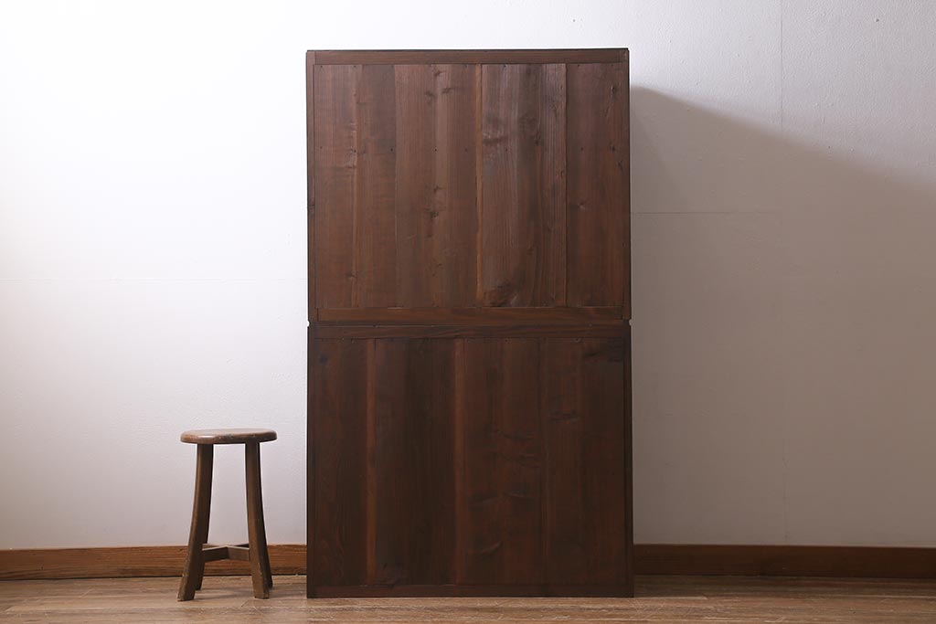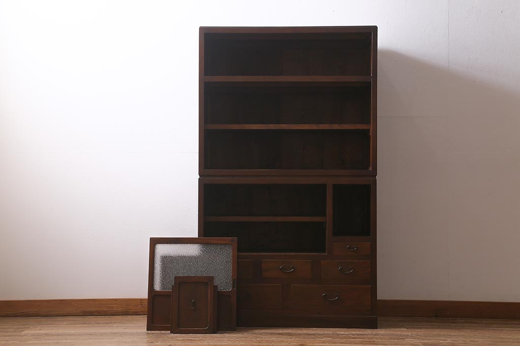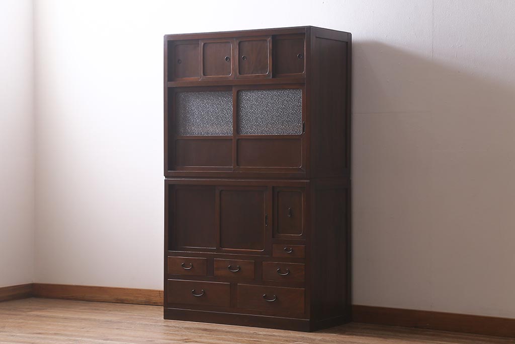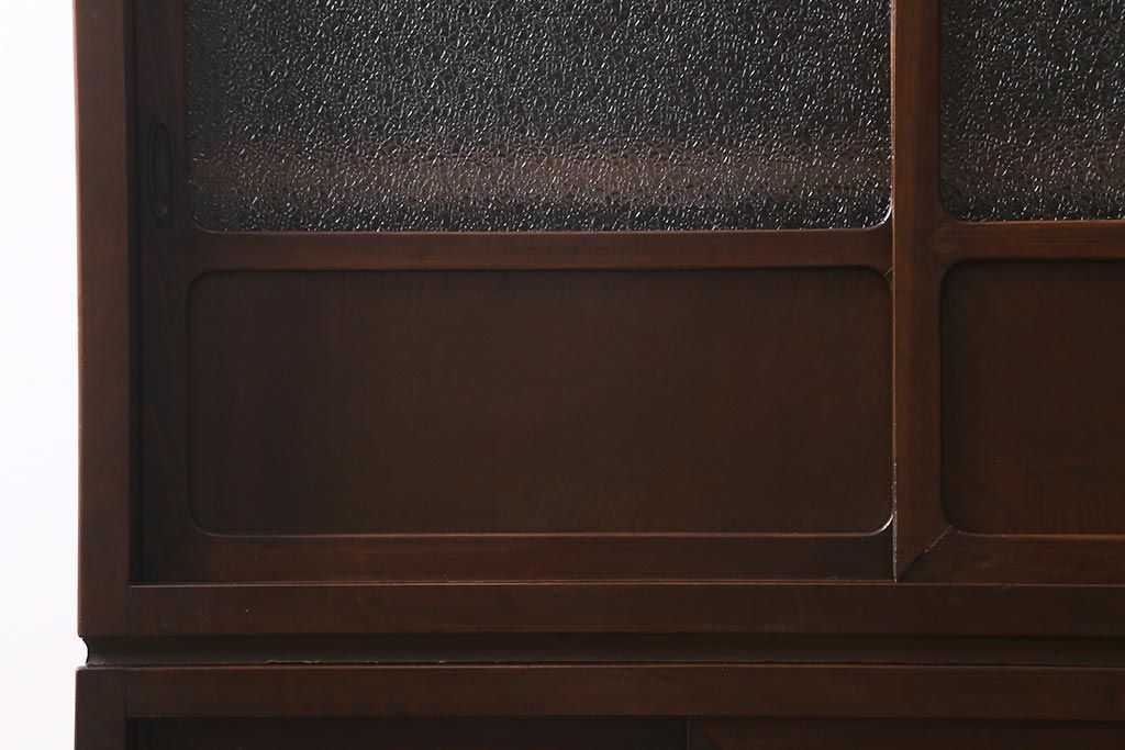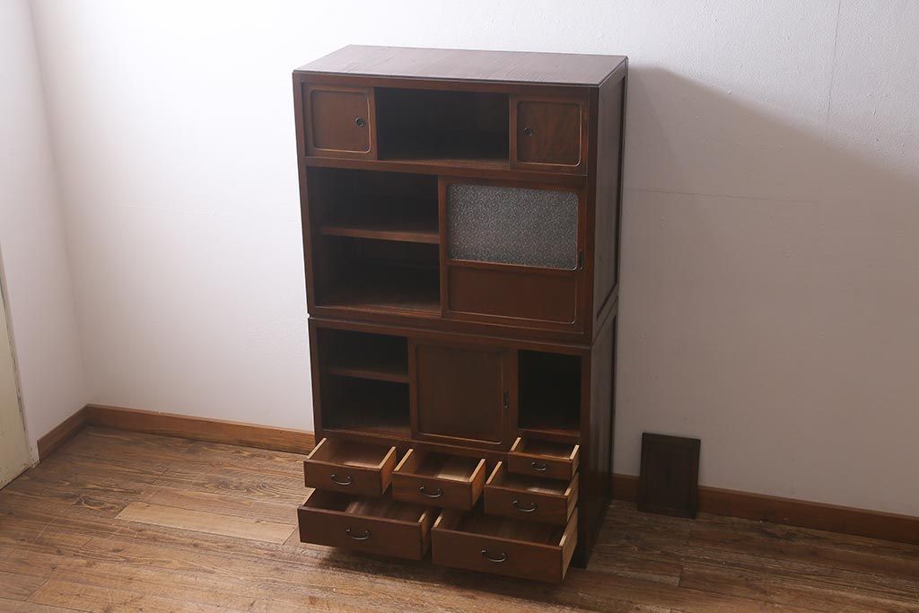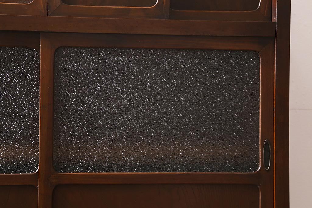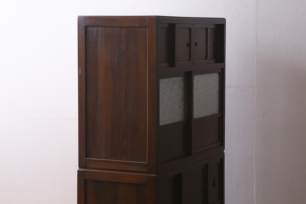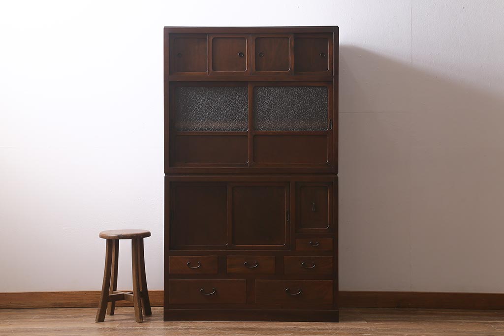 アンティーク家具 和製アンティーク 昭和初期 ダイヤガラスがレトロな雰囲気を醸し出す重ね戸棚(収納棚、引き出し、キャビネット)(R-040939)