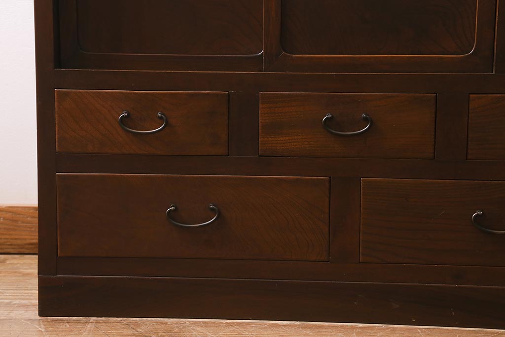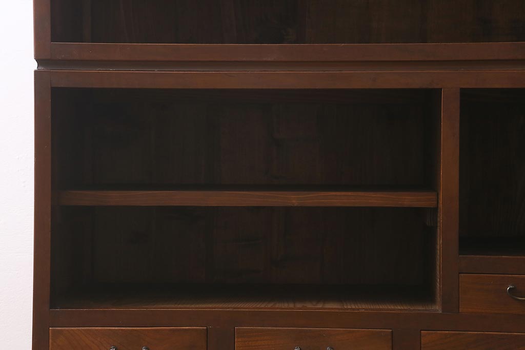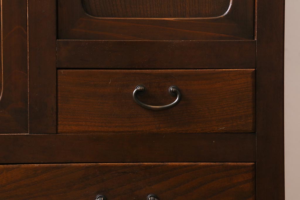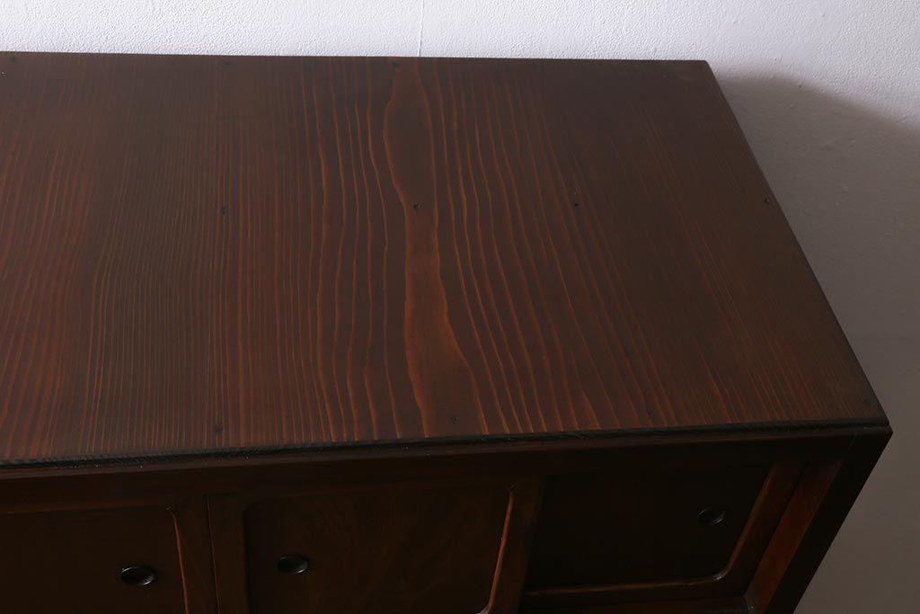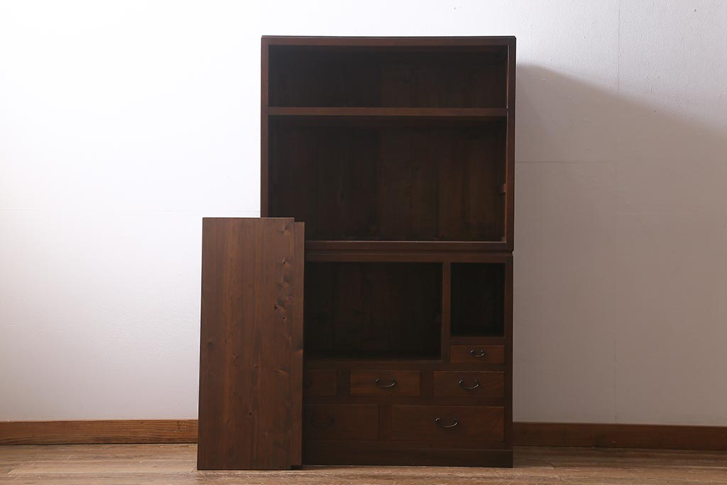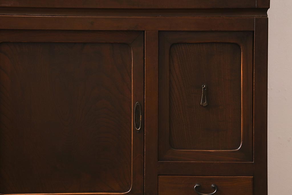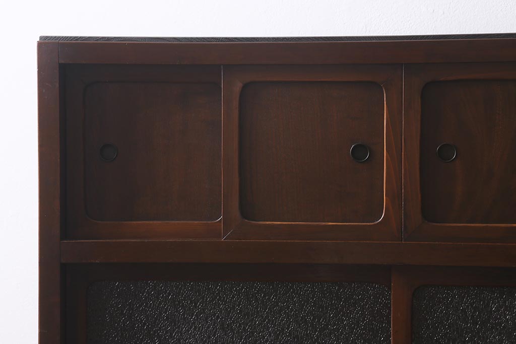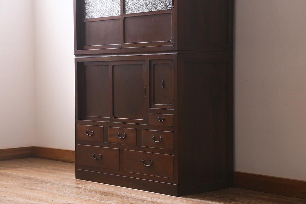 アンティーク家具 和製アンティーク 昭和初期 ダイヤガラスがレトロな雰囲気を醸し出す重ね戸棚(収納棚、引き出し、キャビネット)(R-040939)