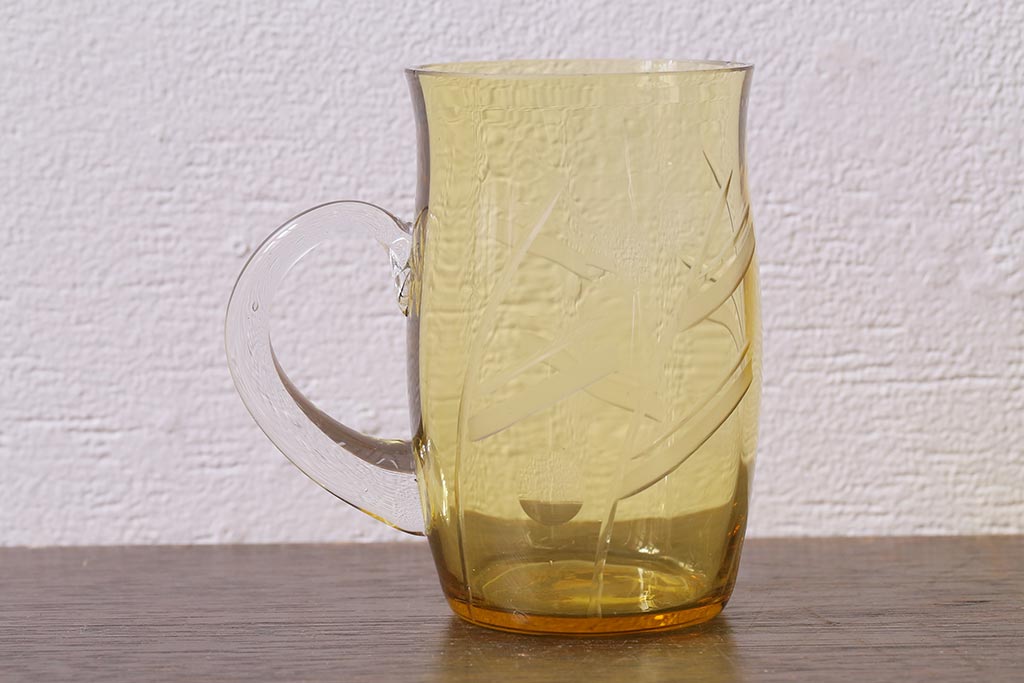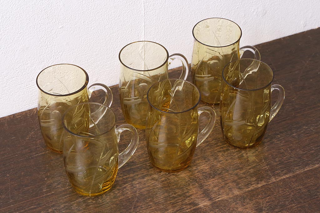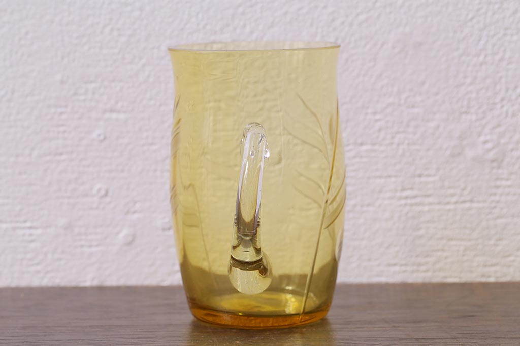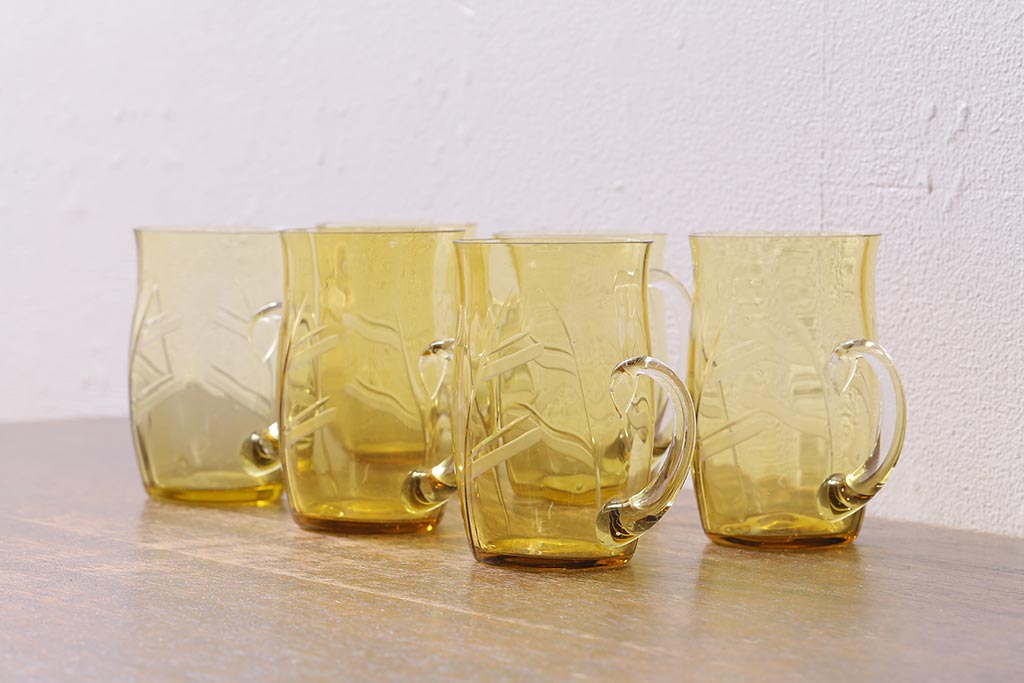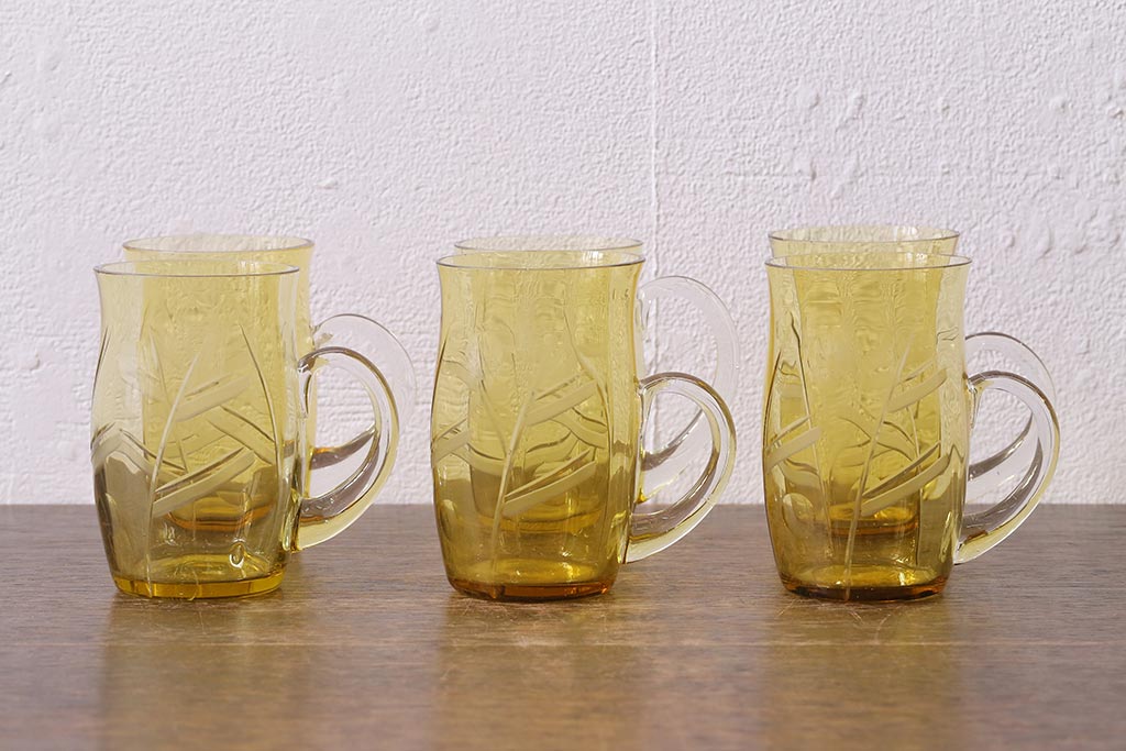 ラフジュ工房> 和食器・茶道具 > アンティーク雑貨 戦前 昭和初期 取っ手付黄色切子グラス6客セット 箱付(コップ、和ガラス)(R-040216)