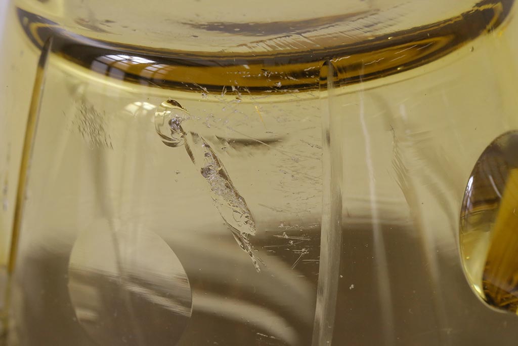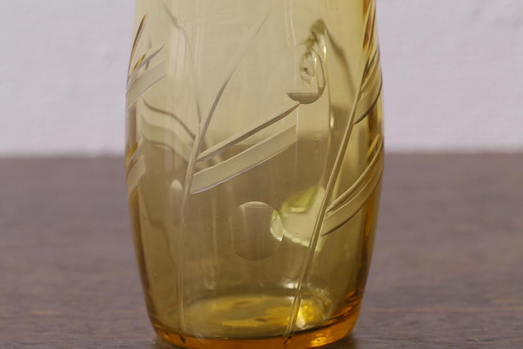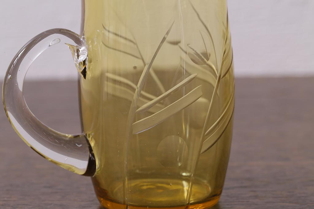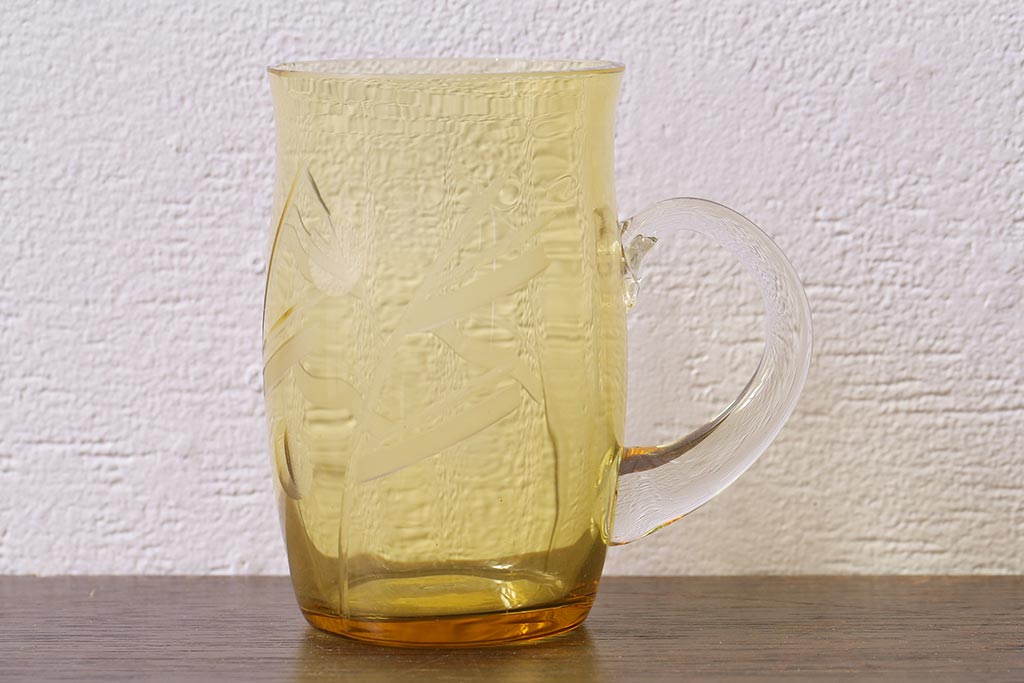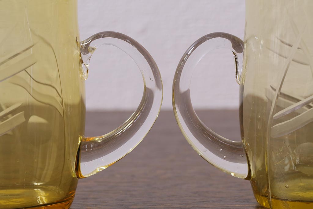 ラフジュ工房> 和食器・茶道具 > アンティーク雑貨 戦前 昭和初期 取っ手付黄色切子グラス6客セット 箱付(コップ、和ガラス)(R-040216)