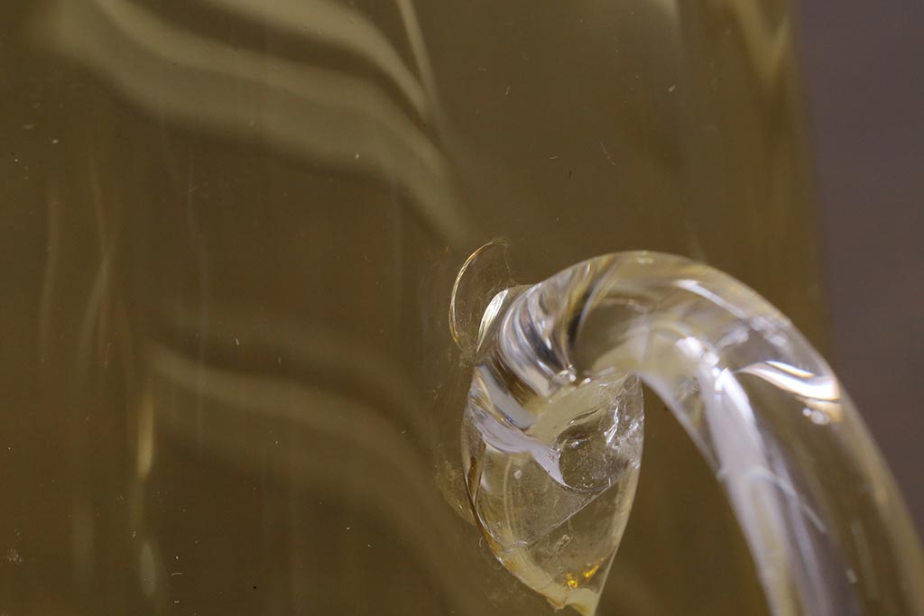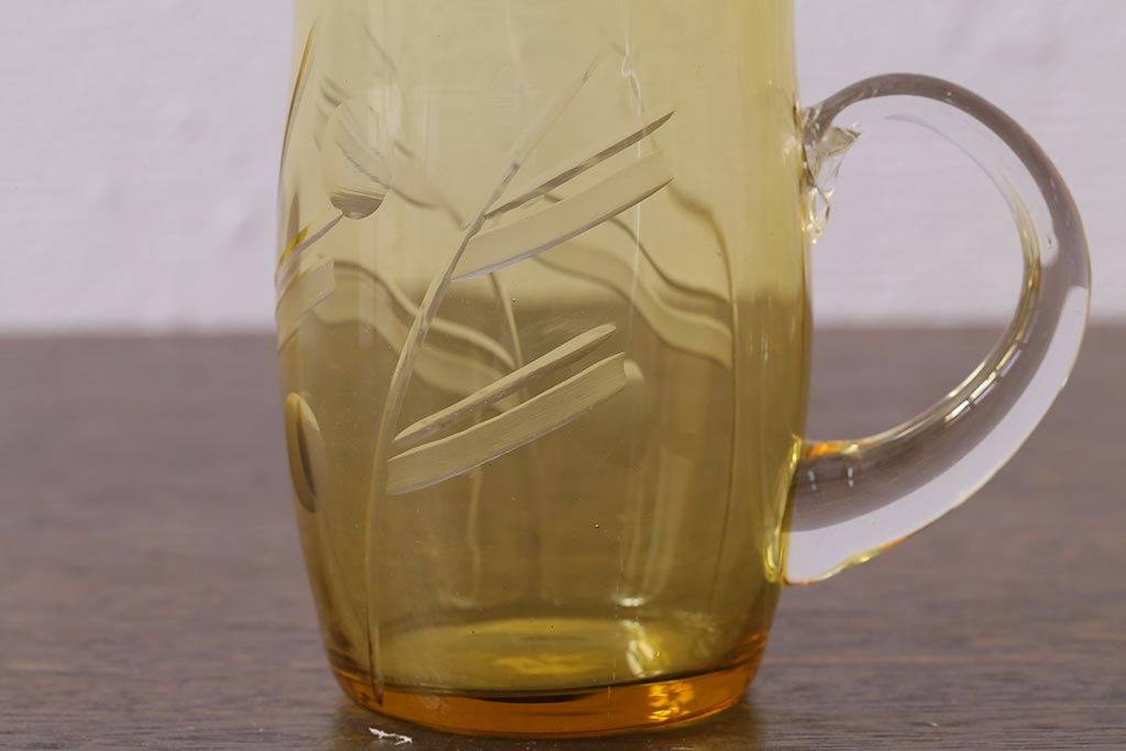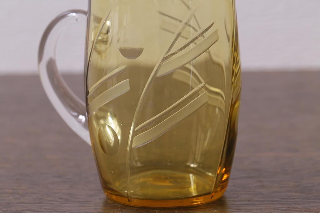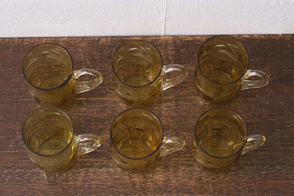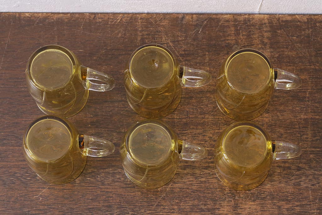 ラフジュ工房> 骨董・美術品> 骨董-ガラス食器 > アンティーク雑貨 戦前 昭和初期 取っ手付黄色切子グラス6客セット 箱付(コップ、和ガラス)(R-040216)