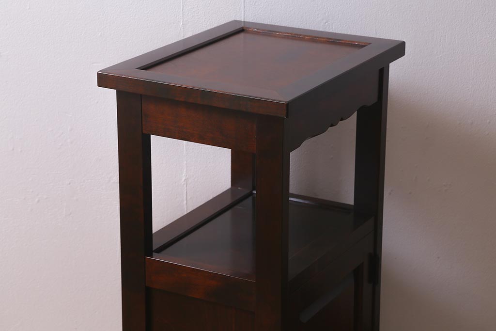 中古 北海道民芸家具 シックなお部屋にも似合う電話台(サイドテーブル、ナイトテーブル)(R-041053)