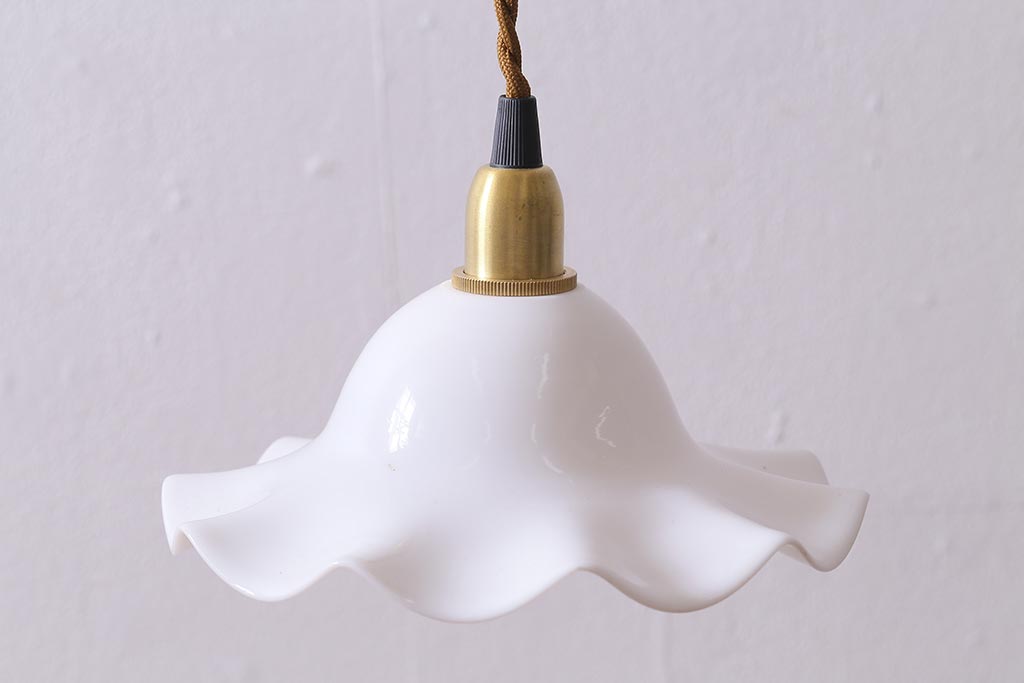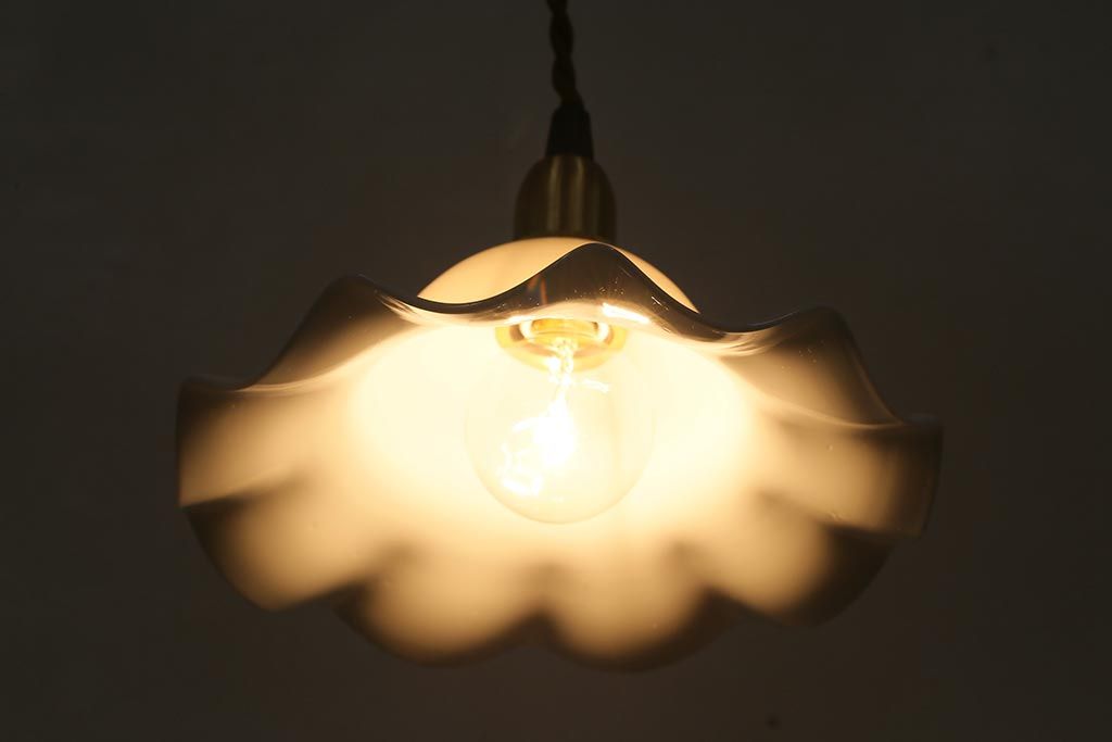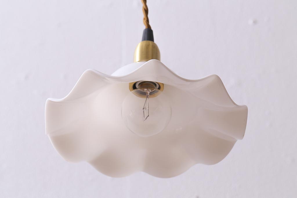 イギリスヴィンテージ照明 可愛らしいフリルシェードのペンダントライト(ランプシェード、天井照明)(R-041018)です。