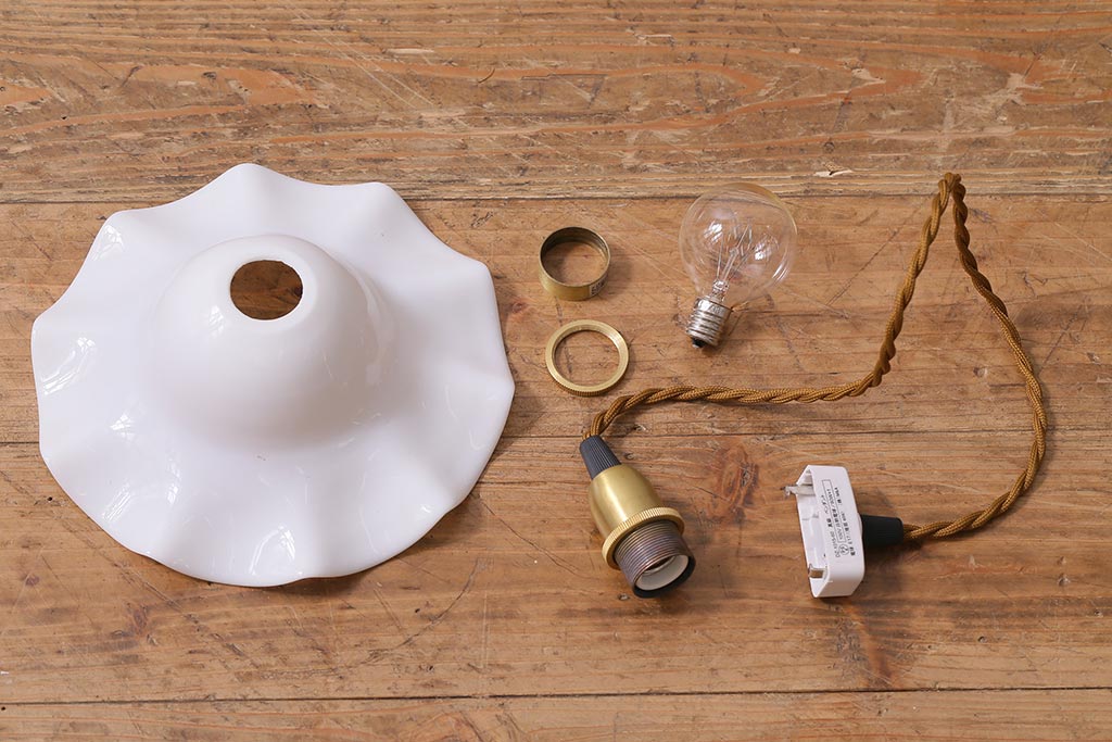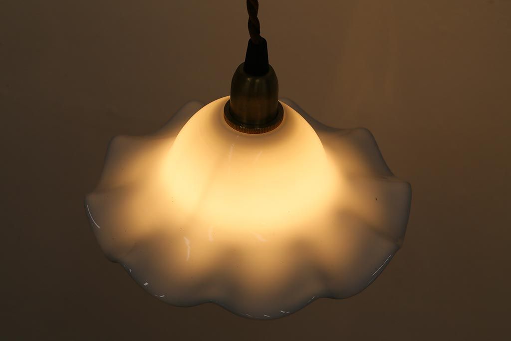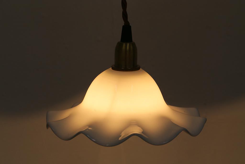 イギリスヴィンテージ照明 可愛らしいフリルシェードのペンダントライト(ランプシェード、天井照明、ビンテージ)(R-041018)