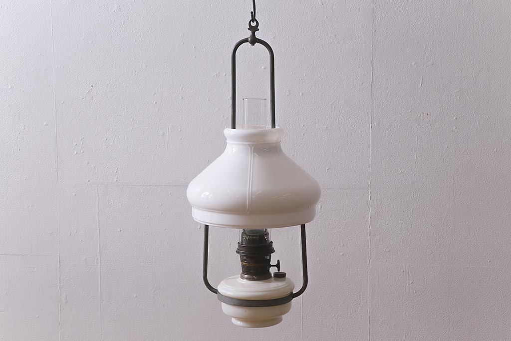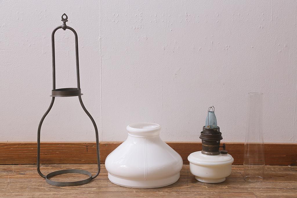 ヴィンテージ雑貨 アメリカビンテージ アラジン社 濃い白色がかわいらしいオイルランプ(マントルランプ、吊りランプ)(R-041033)