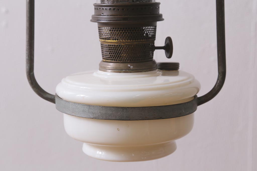 ラフジュ工房> 照明・ランプ> ランタン・オイルランプ > ヴィンテージ雑貨 アメリカビンテージ アラジン社 濃い白色がかわいらしいオイルランプ(マントルランプ、吊りランプ)(R-041033)