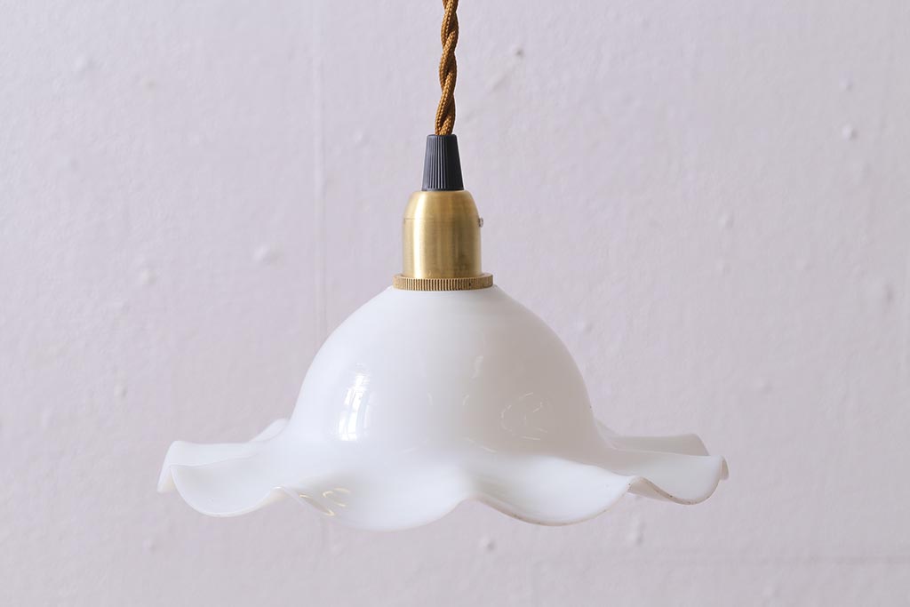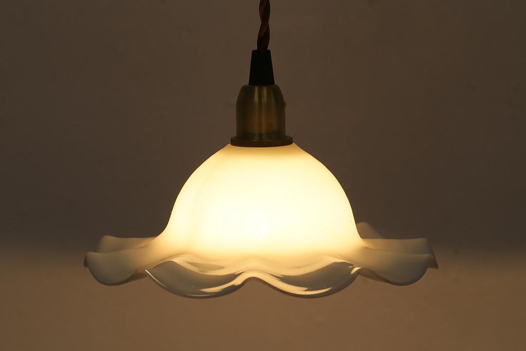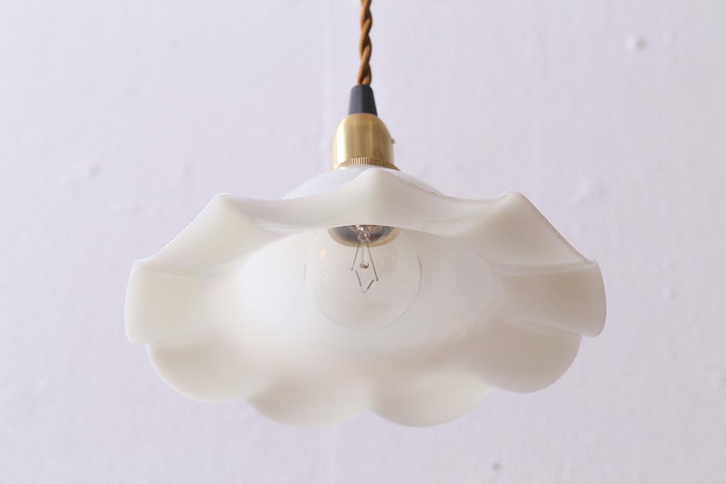 イギリスヴィンテージ照明 可愛らしいフリルシェードのペンダントライト(ランプシェード、天井照明)(R-041020)です。