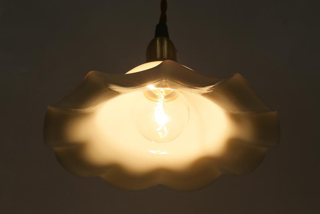 イギリスヴィンテージ照明 可愛らしいフリルシェードのペンダントライト(ランプシェード、天井照明、ビンテージ)(R-041020)