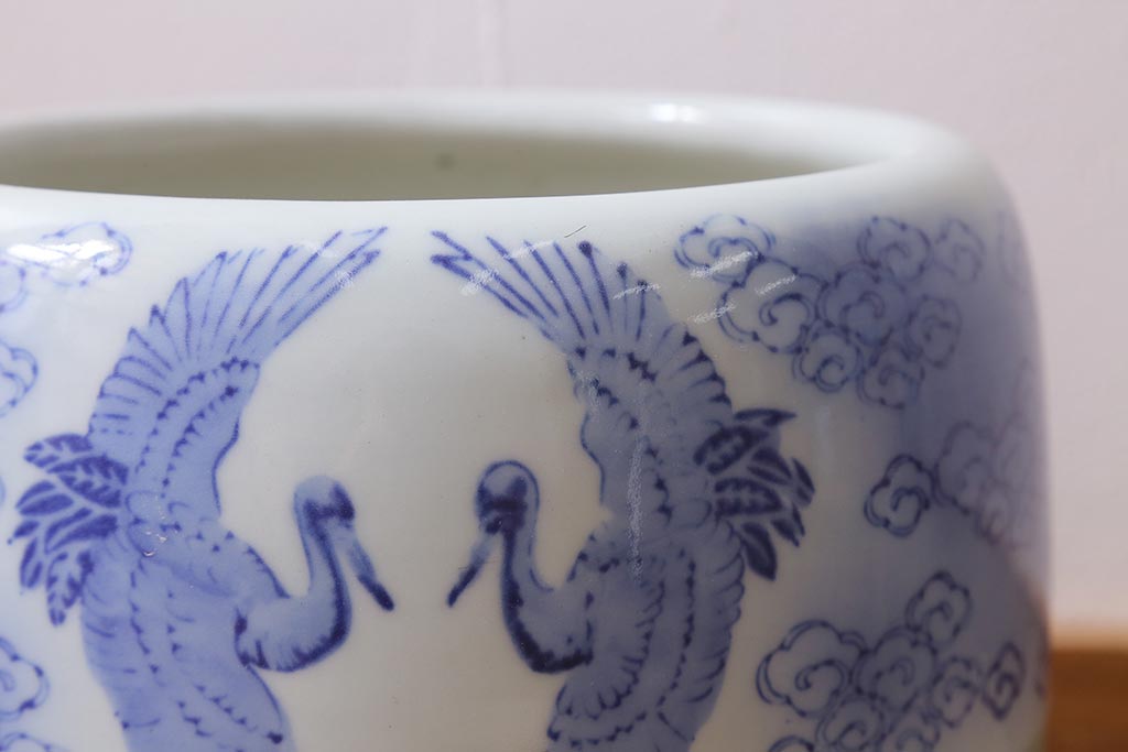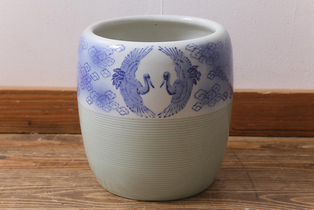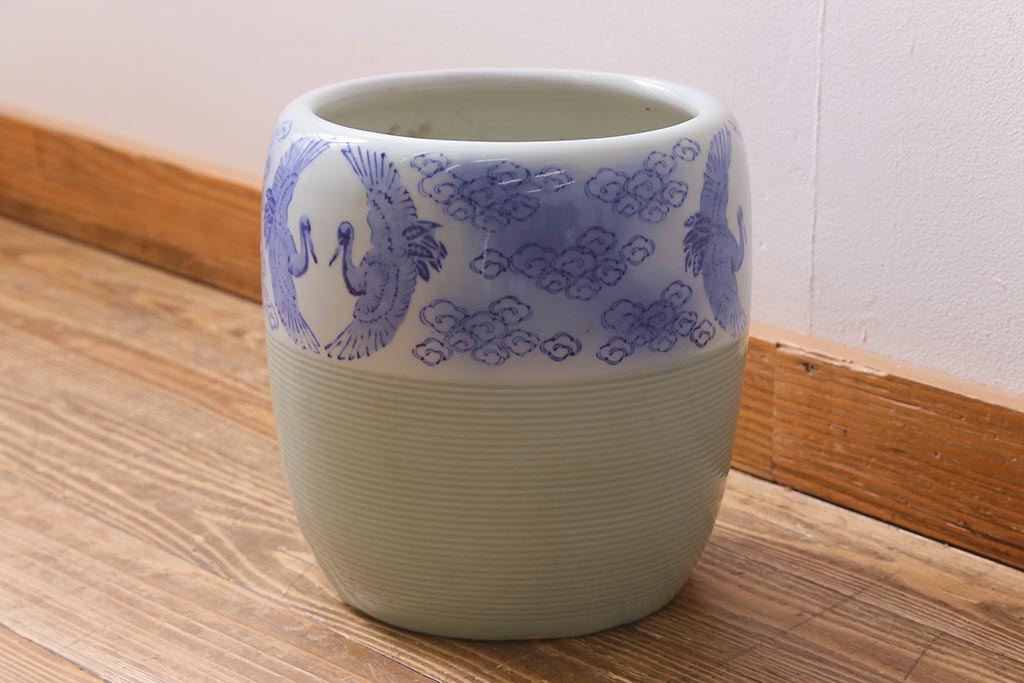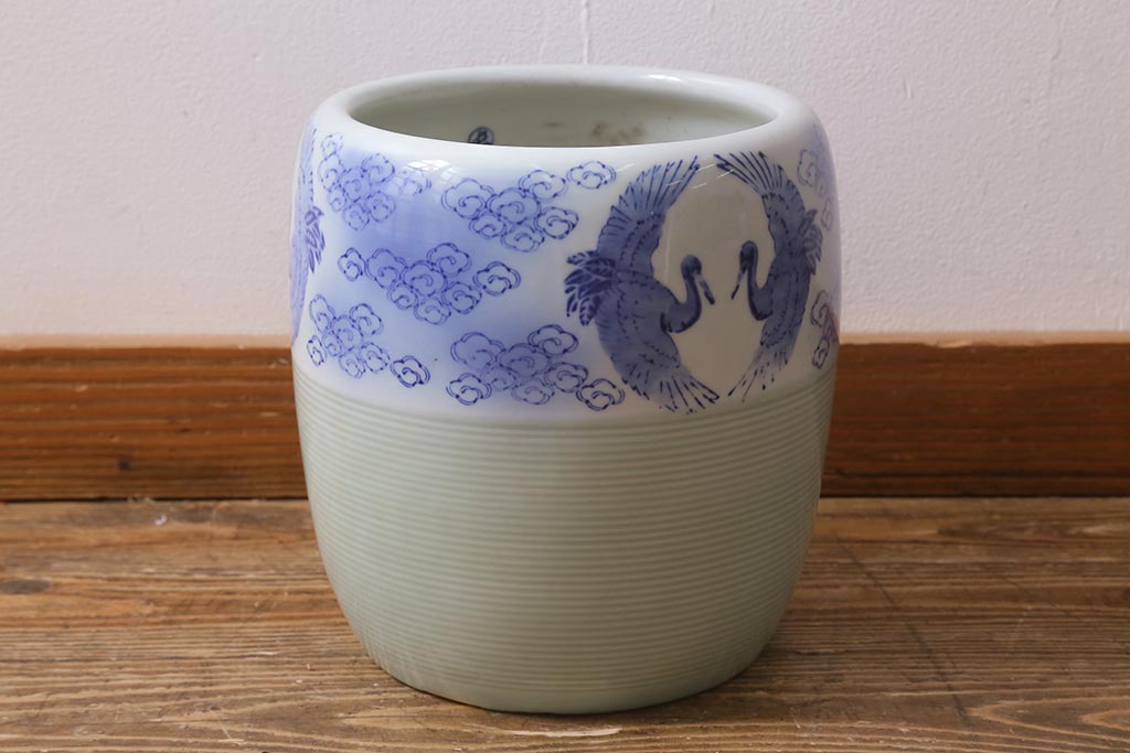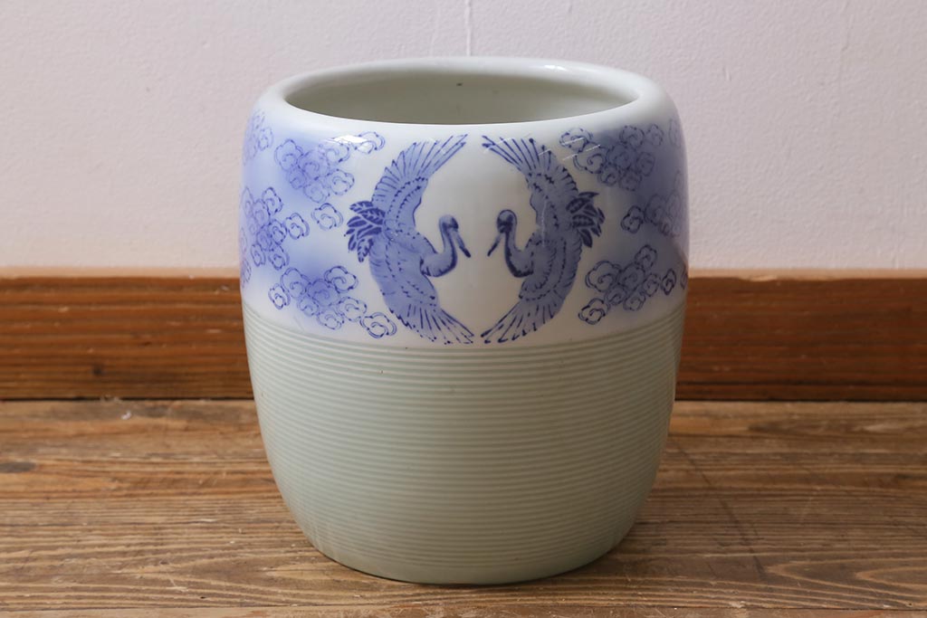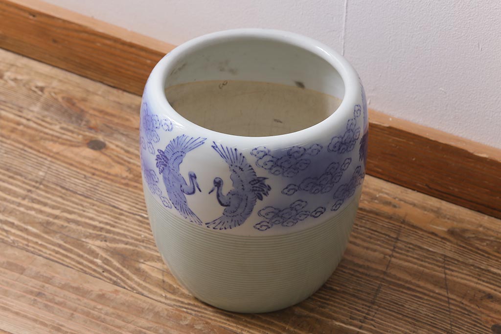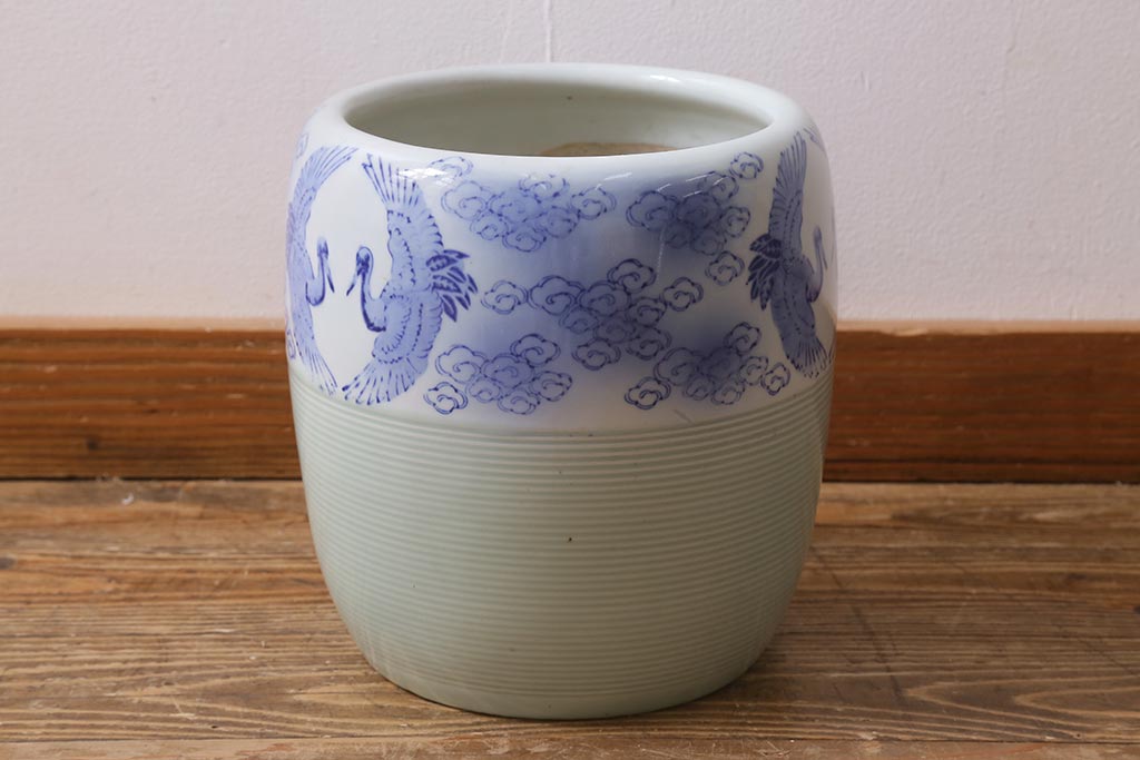 アンティーク雑貨 和製アンティーク 鶴の図 淡い色味が優しげな瀬戸火鉢(鉢カバー)(R-040998)