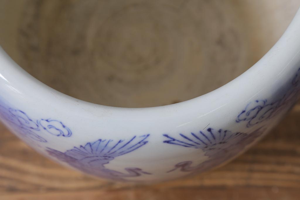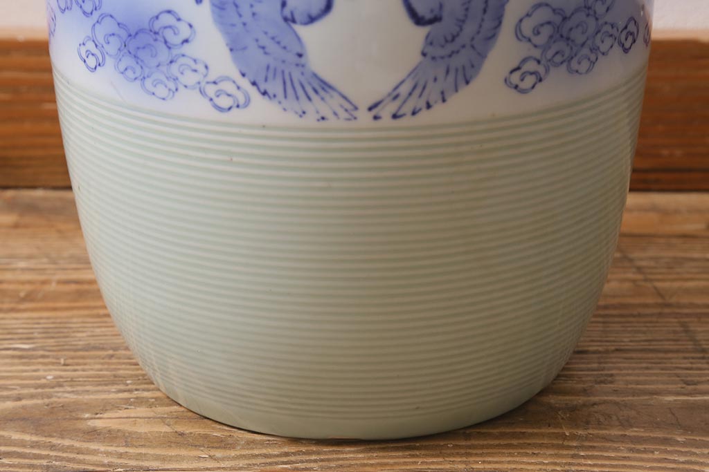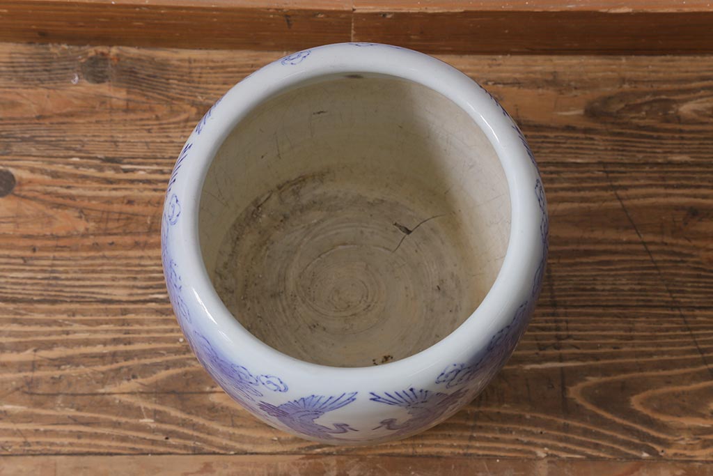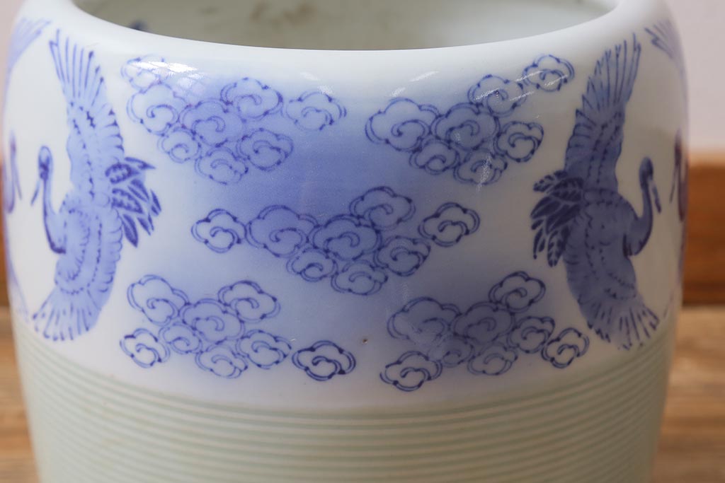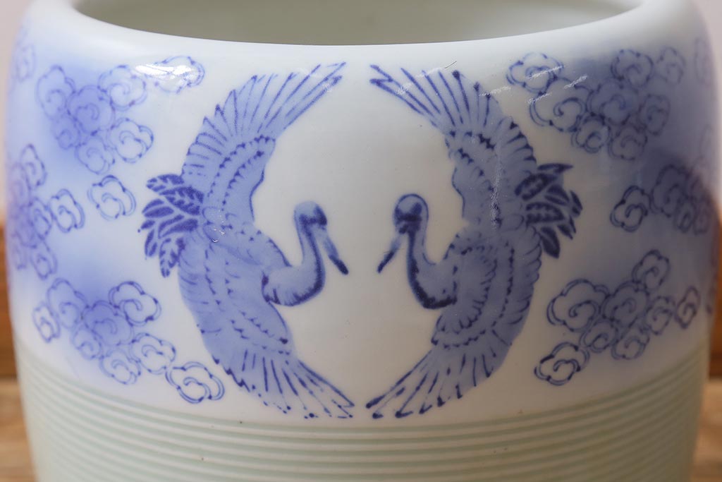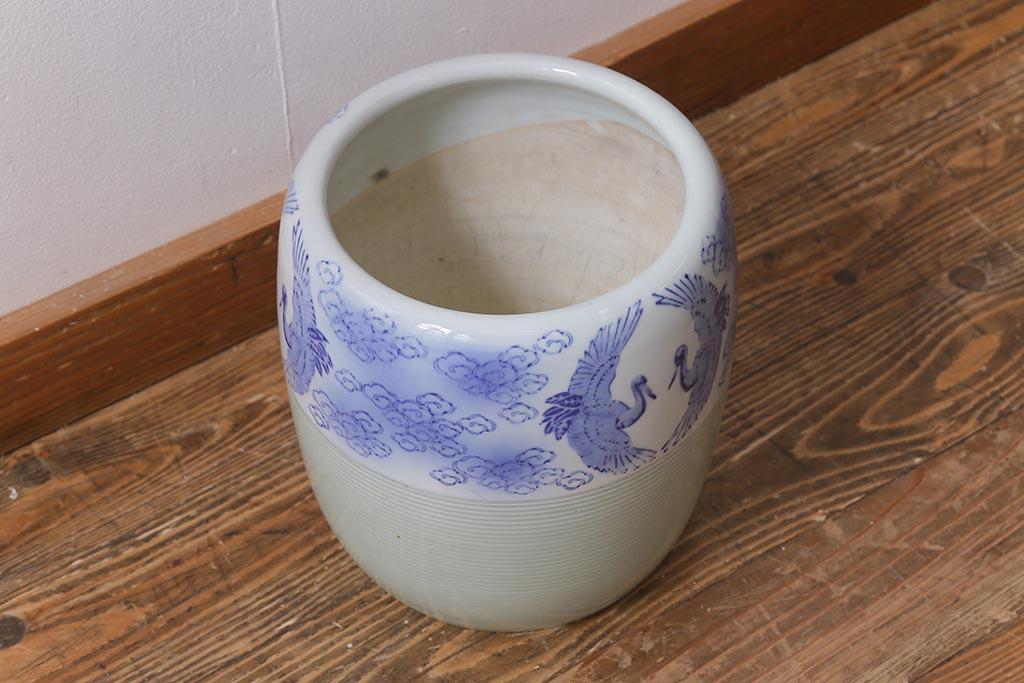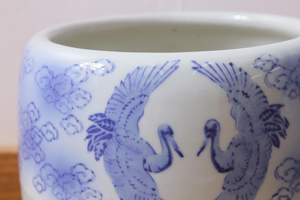 アンティーク雑貨 和製アンティーク 鶴の図 淡い色味が優しげな瀬戸火鉢(鉢カバー)(R-040998)
