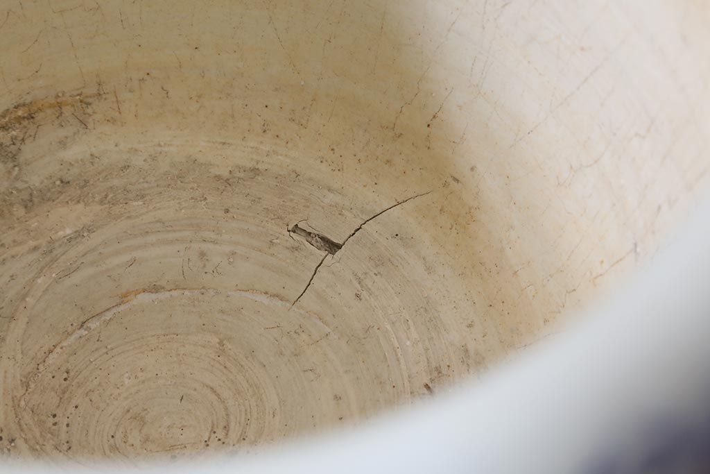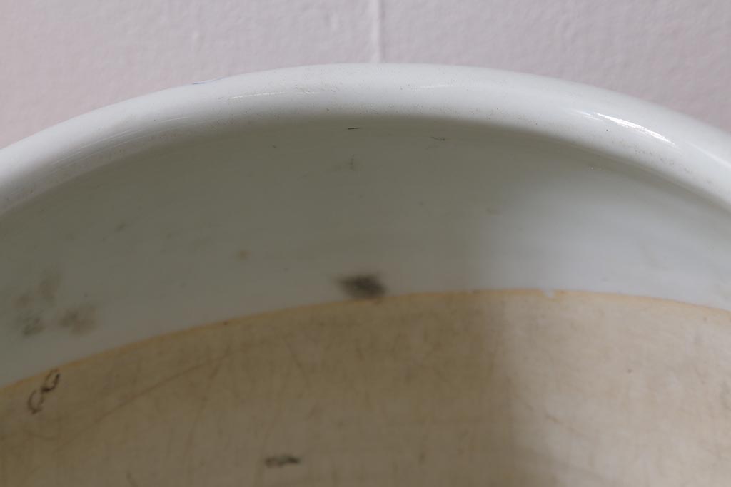 火鉢> 瀬戸火鉢 > アンティーク雑貨 和製アンティーク 鶴の図 淡い色味が優しげな瀬戸火鉢(鉢カバー)(R-040998)