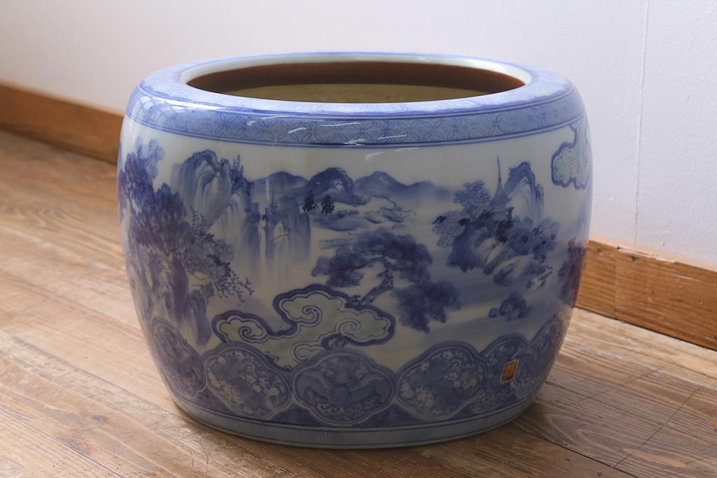 アンティーク雑貨 昭和初期 山水図 風情溢れる瀬戸火鉢(鉢カバー)(R-041001)です。