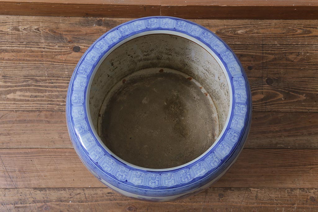 アンティーク雑貨 昭和初期 山水図 風情溢れる瀬戸火鉢(鉢カバー)(R-041001)