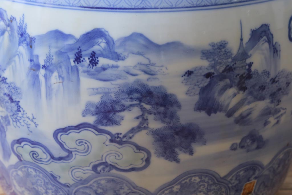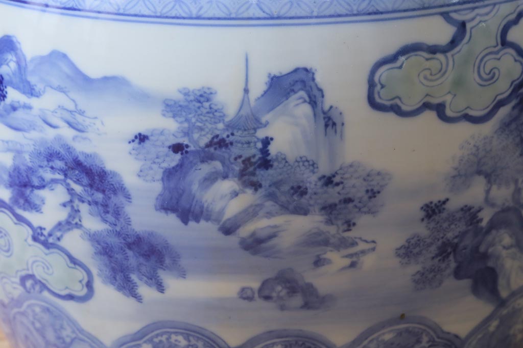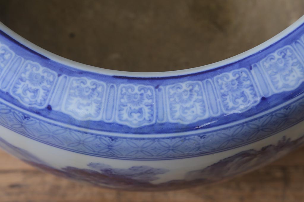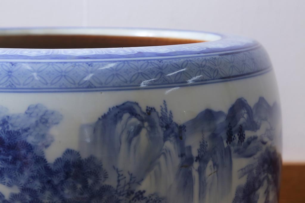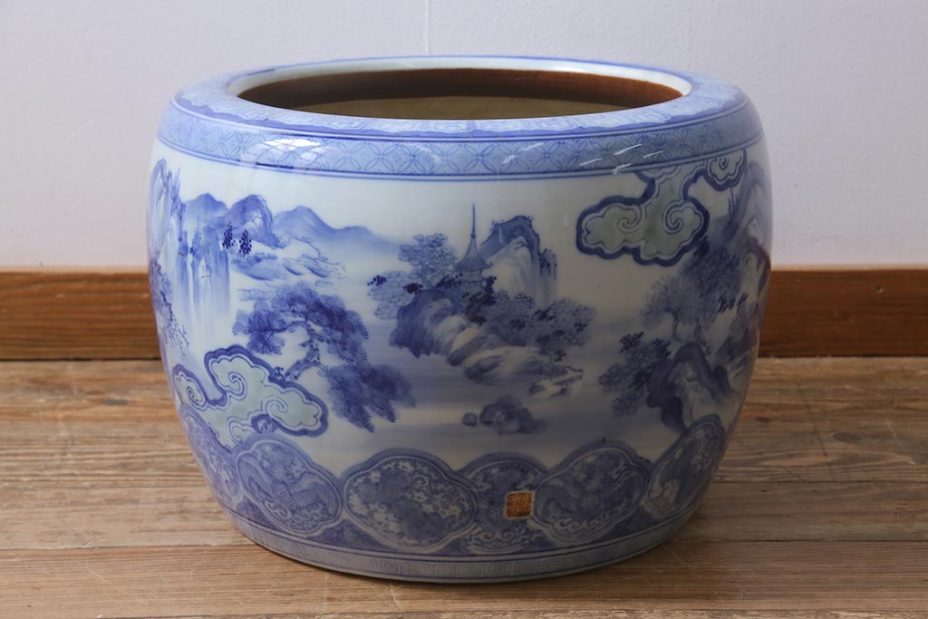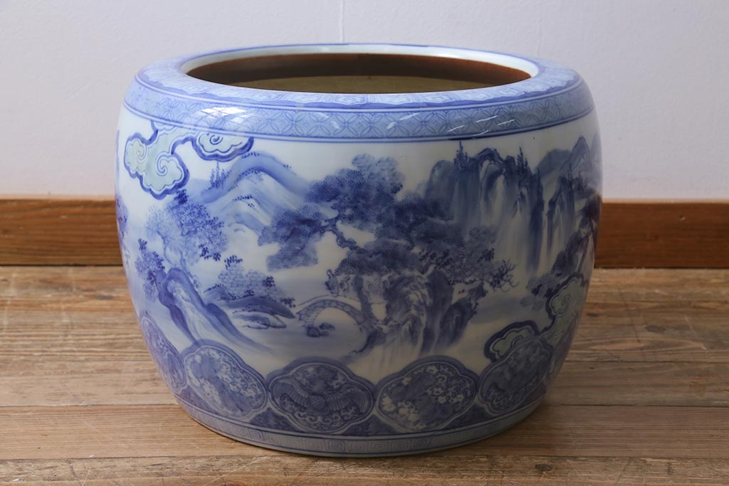 火鉢> 瀬戸火鉢 > アンティーク雑貨 昭和初期 山水図 風情溢れる瀬戸火鉢(鉢カバー)(R-041001)