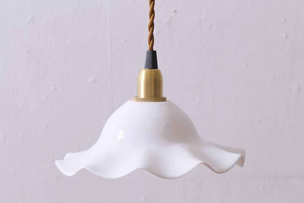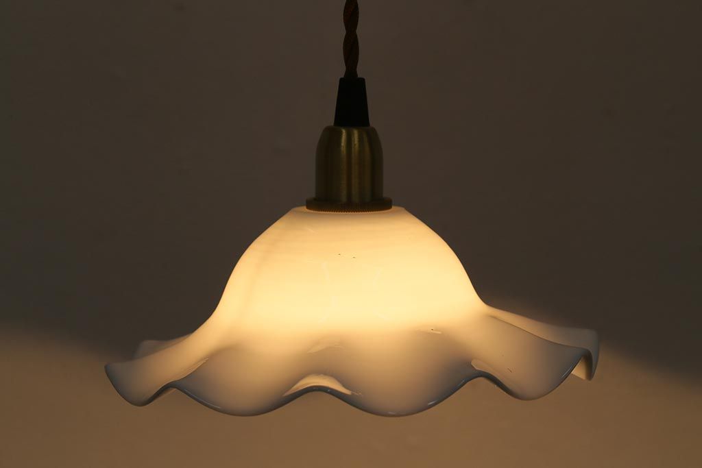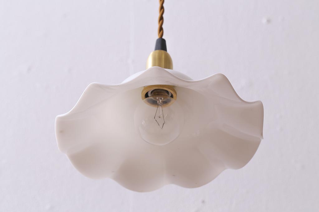 イギリスヴィンテージ照明 可愛らしいフリルシェードのペンダントライト(ランプシェード、天井照明)(R-041021)です。