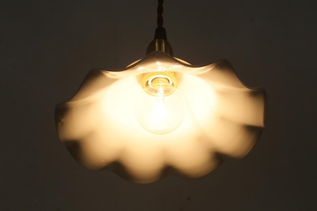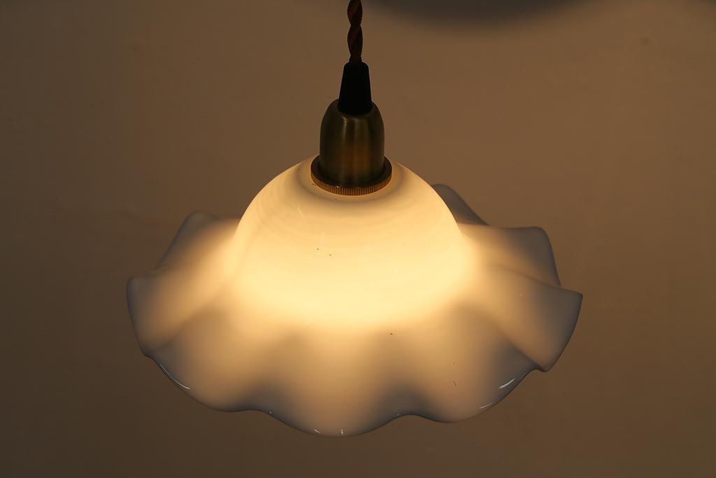 イギリスヴィンテージ照明 可愛らしいフリルシェードのペンダントライト(ランプシェード、天井照明、ビンテージ)(R-041021)