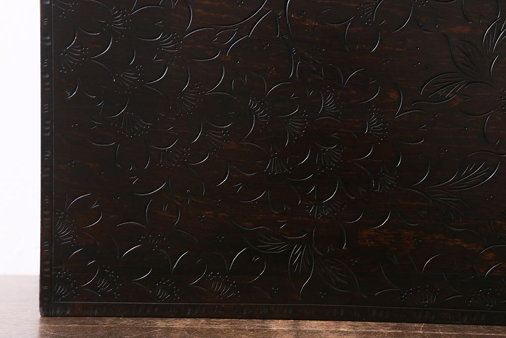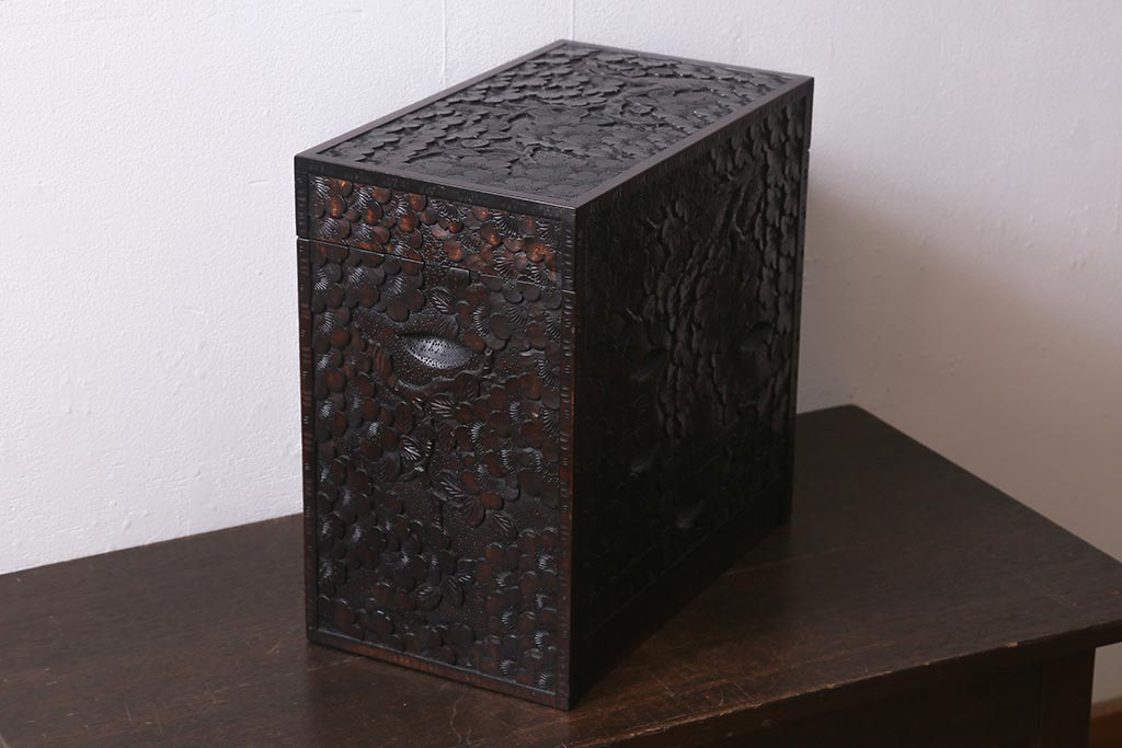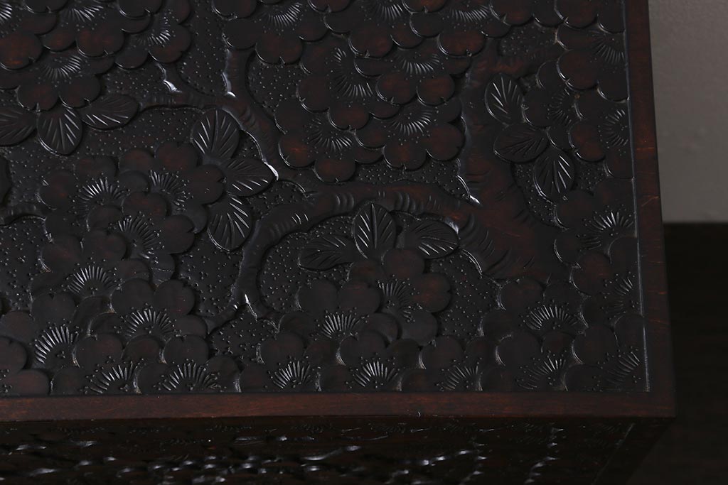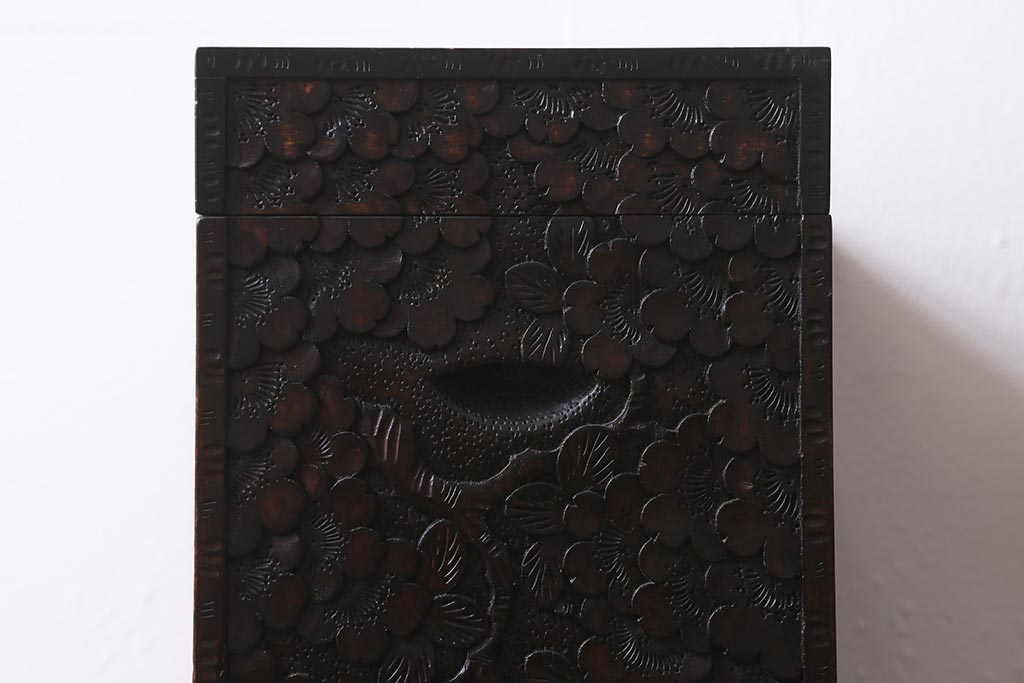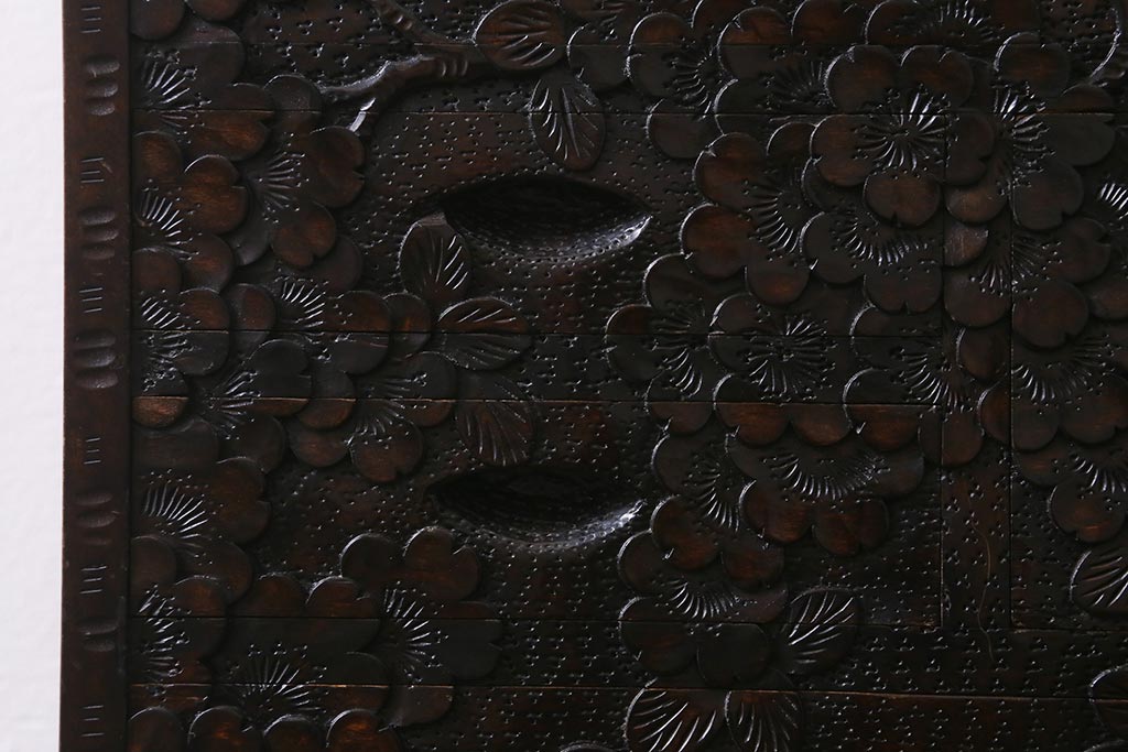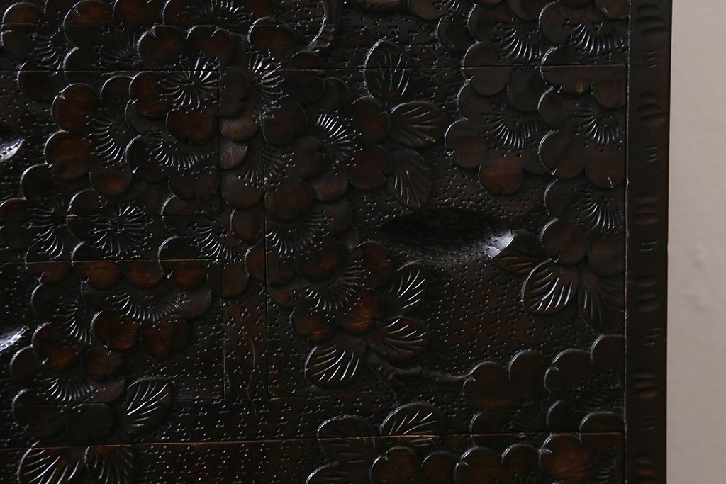 民芸家具 > 中古 伝統工芸 軽井沢彫り 満開に咲き誇る桜の彫りが華やかなトレー付き小引き出し(小物収納、引き出し)(R-041061)