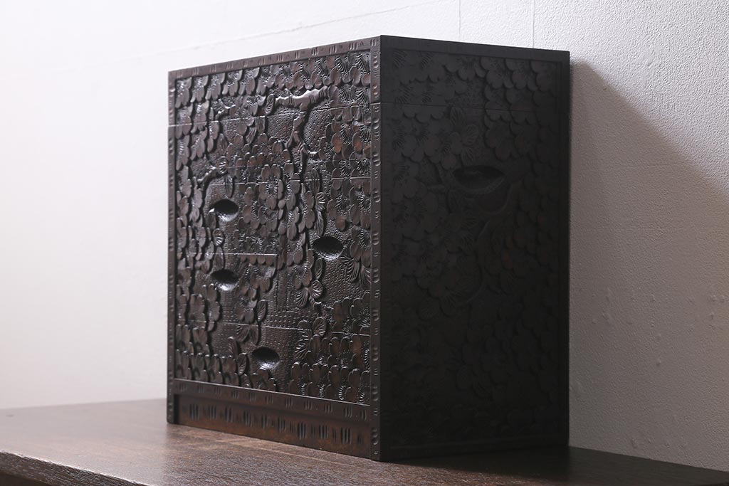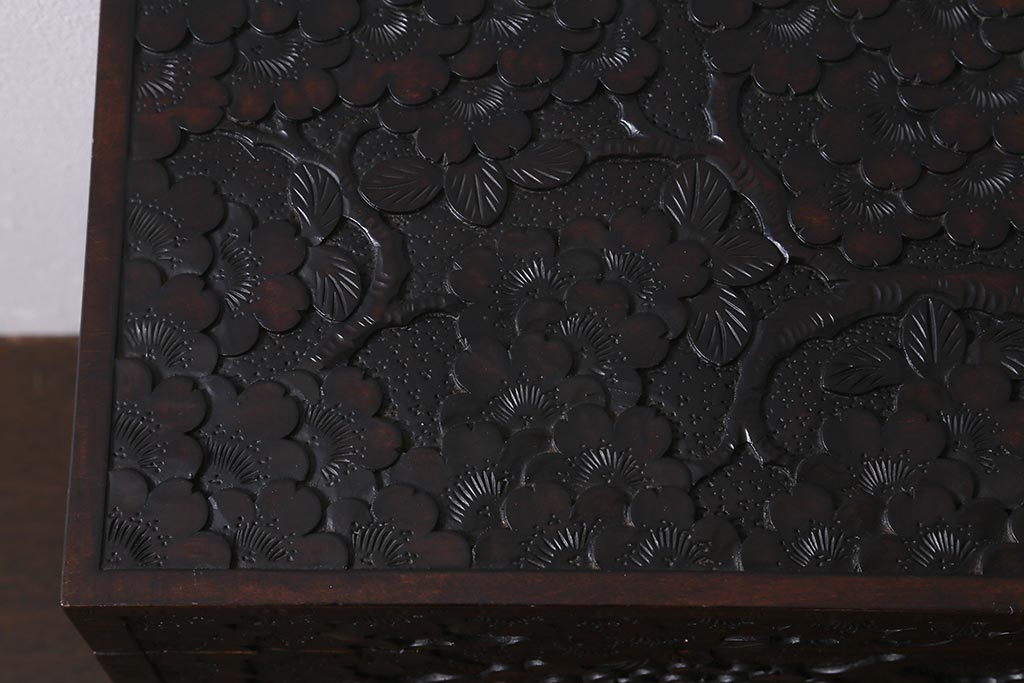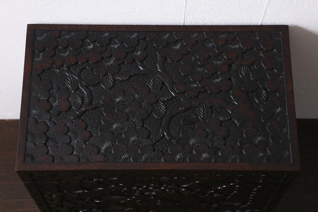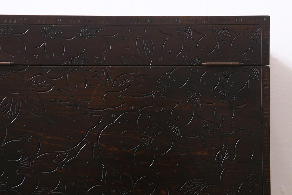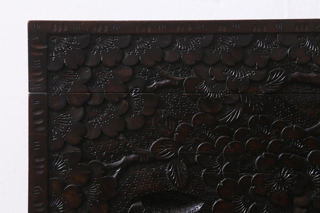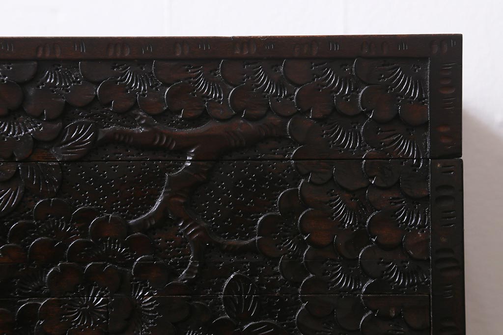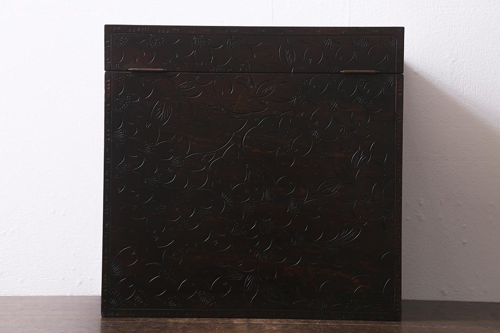 民芸家具 > 中古 伝統工芸 軽井沢彫り 満開に咲き誇る桜の彫りが華やかなトレー付き小引き出し(小物収納、引き出し)(R-041061)